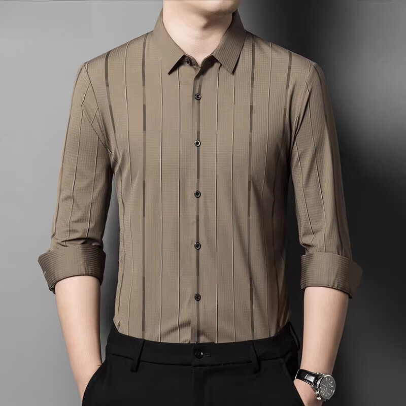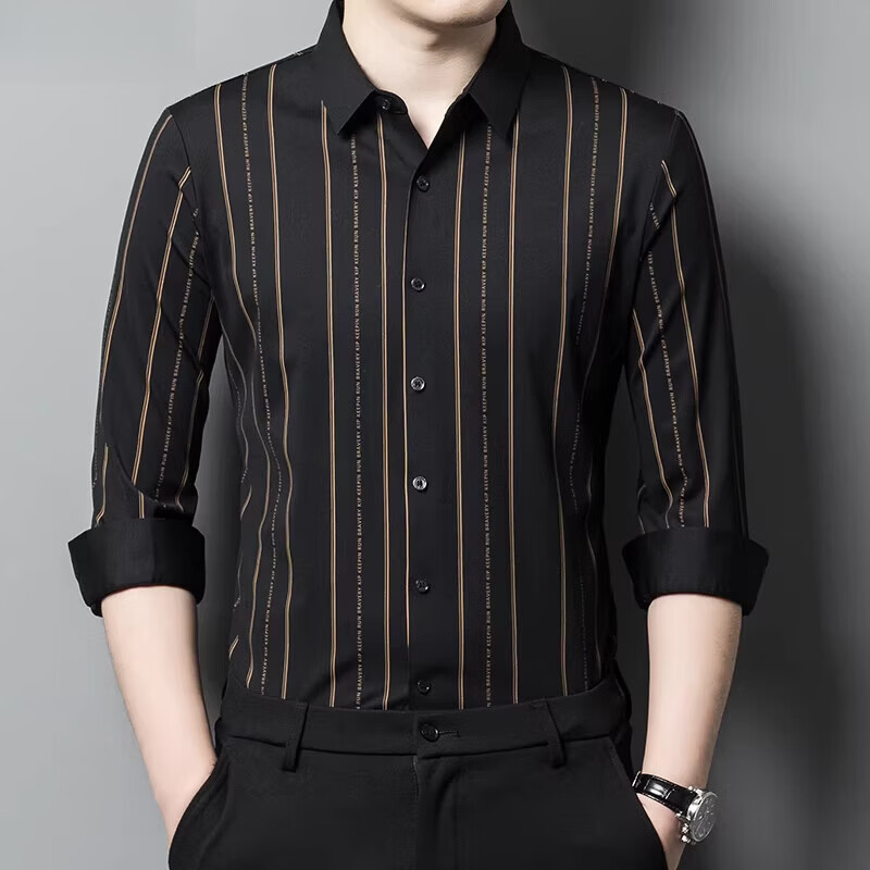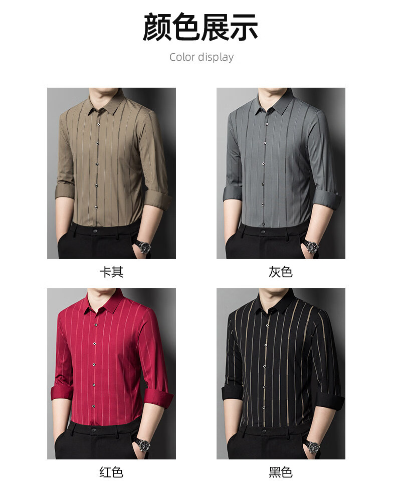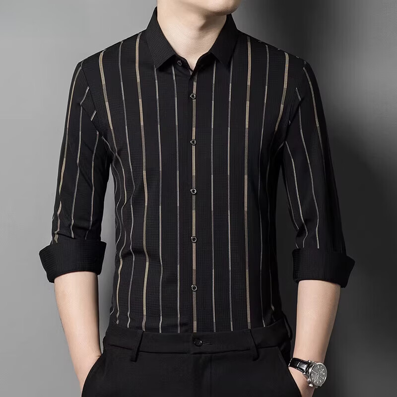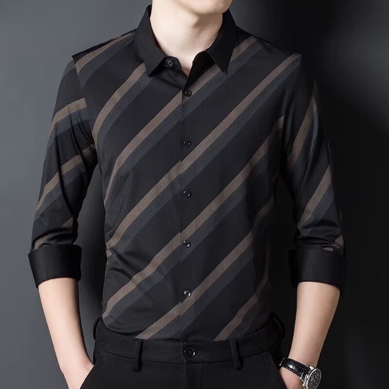 Jiumuwang 2026 new seamless shirt men's thin long-sleeved shirt spring and autumn casual striped slim fit versatile men's clothing black 207 M 165