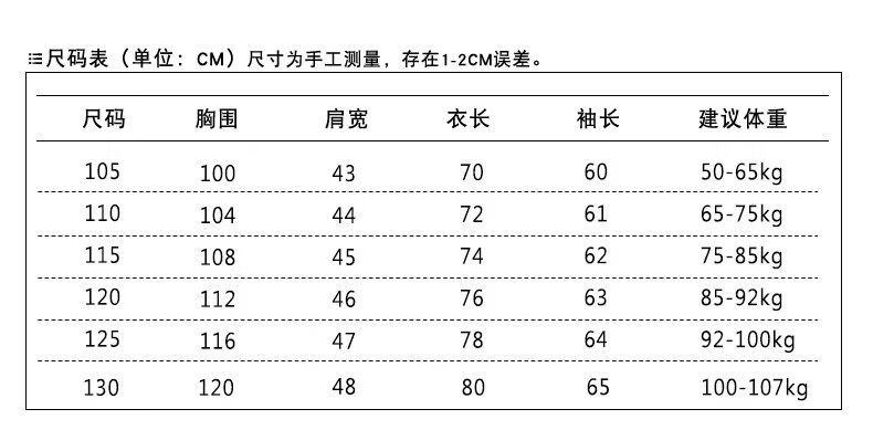 China (cm) 165 / 88-90 170 / 96-98 175 / 108-110 180 / 118-122 185 / 126-130