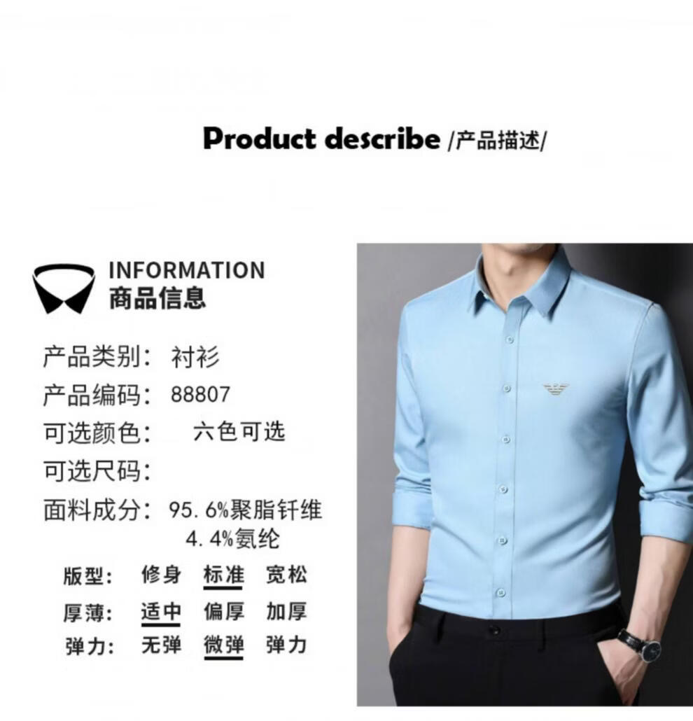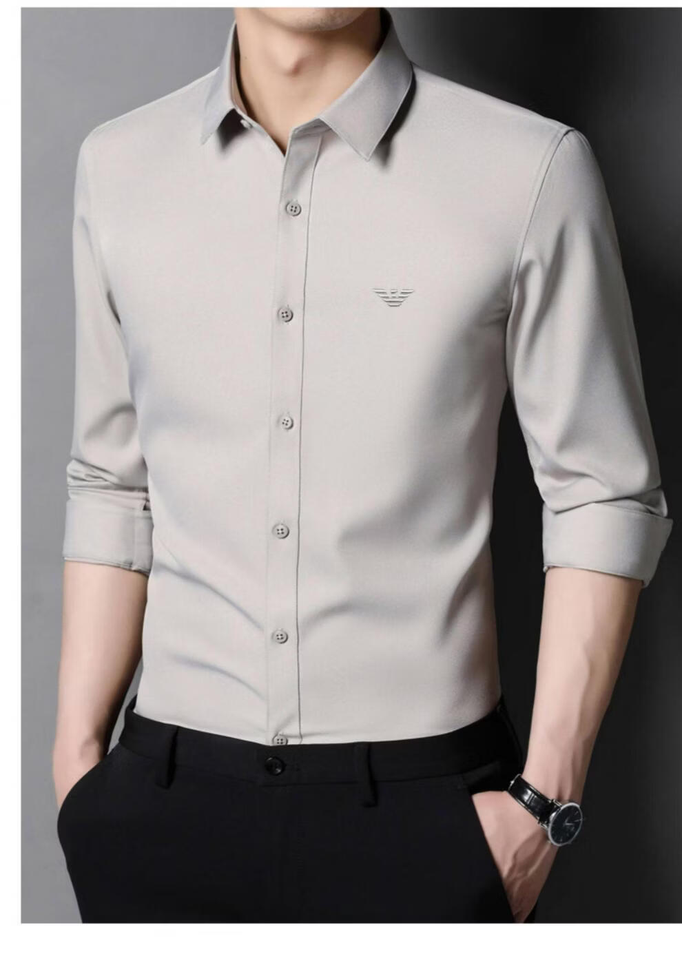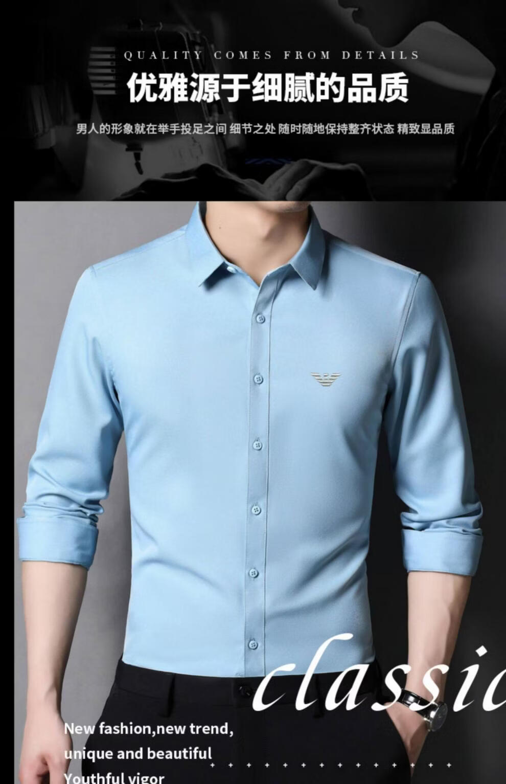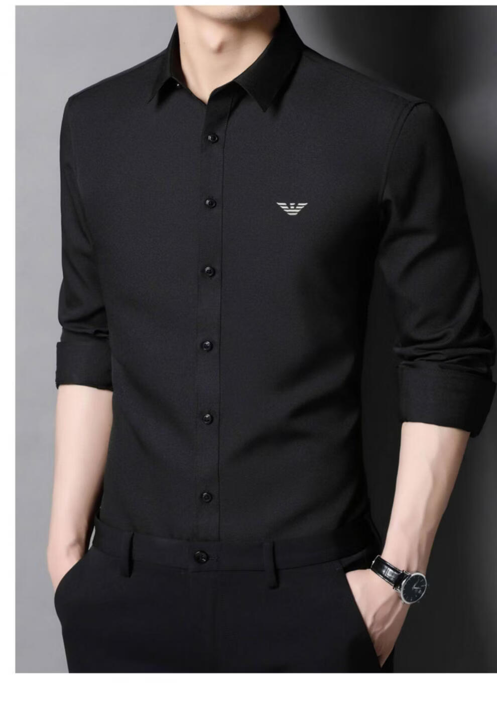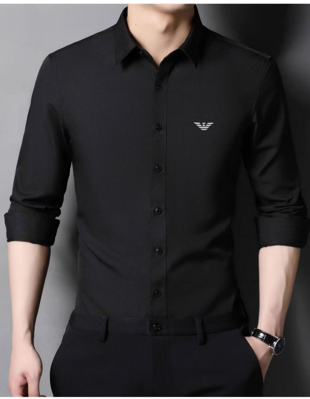 Armani (ARMANI) Italian long-sleeved shirt men's spring and autumn Korean style trendy drape inch shirt business casual men's shirt AG/DN88807 black L 175/92A