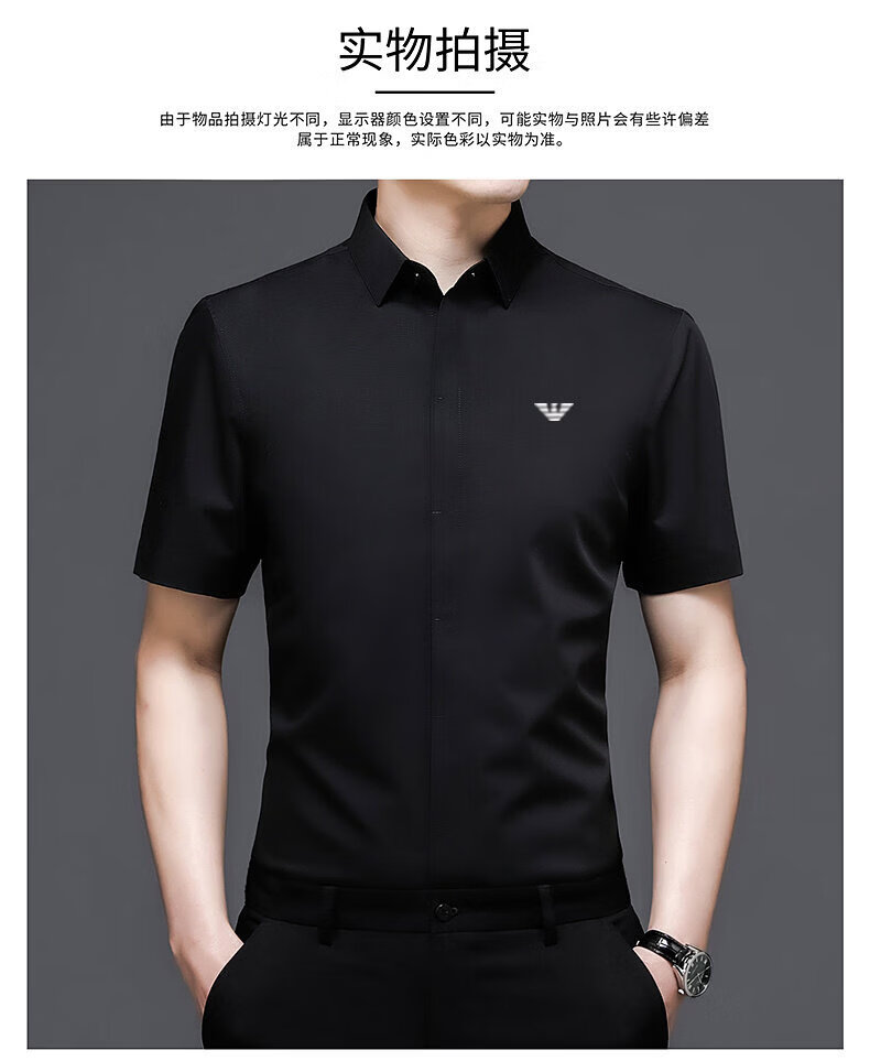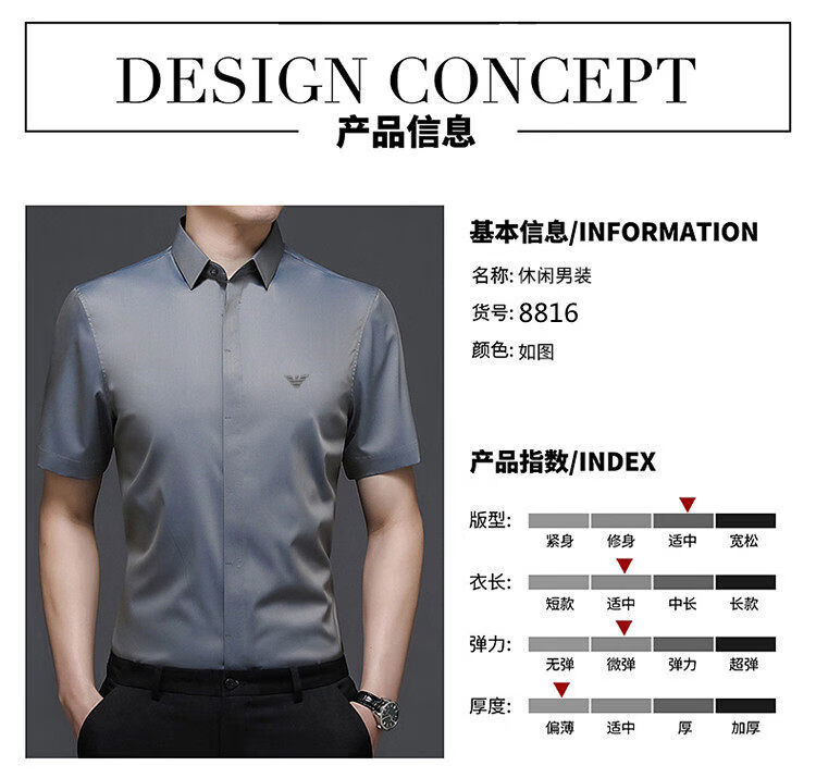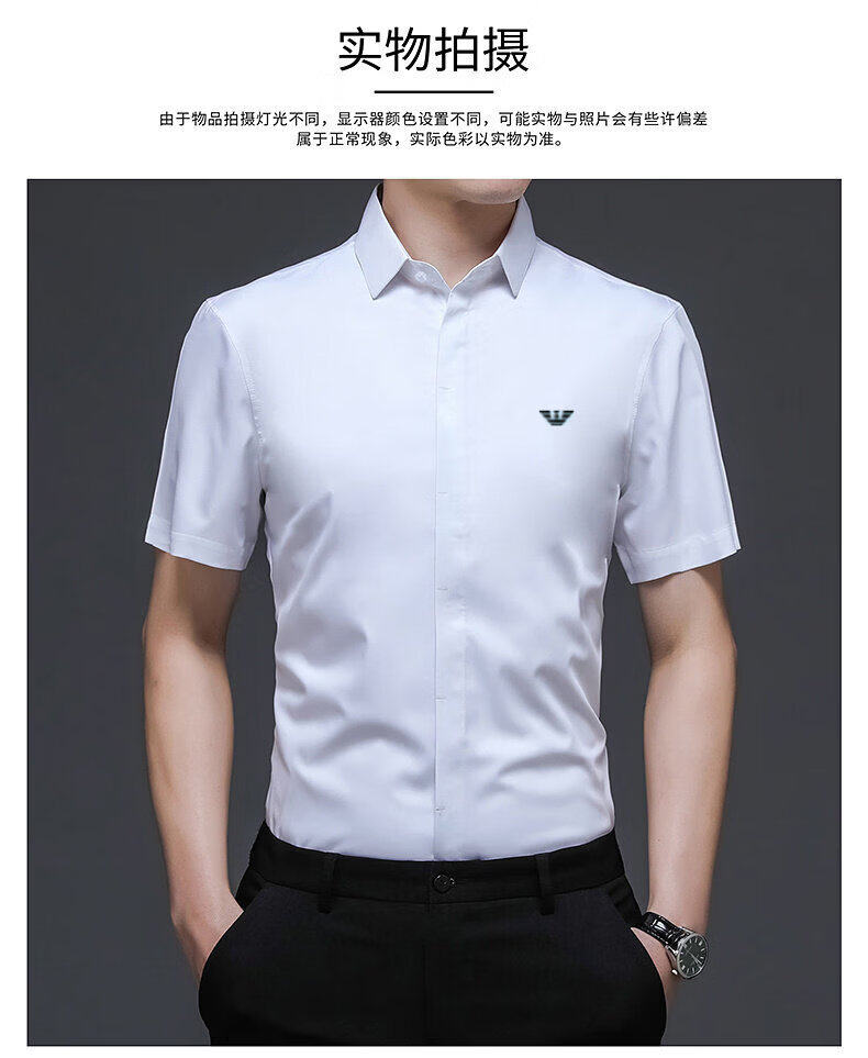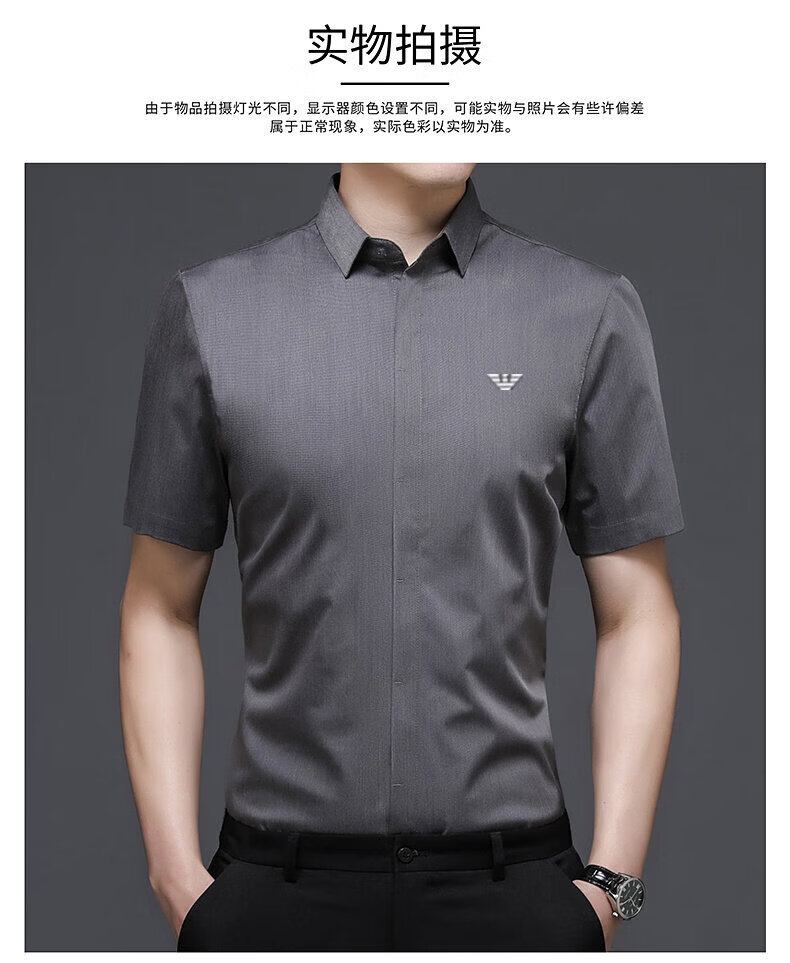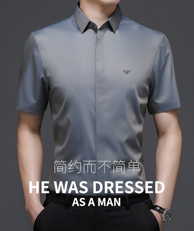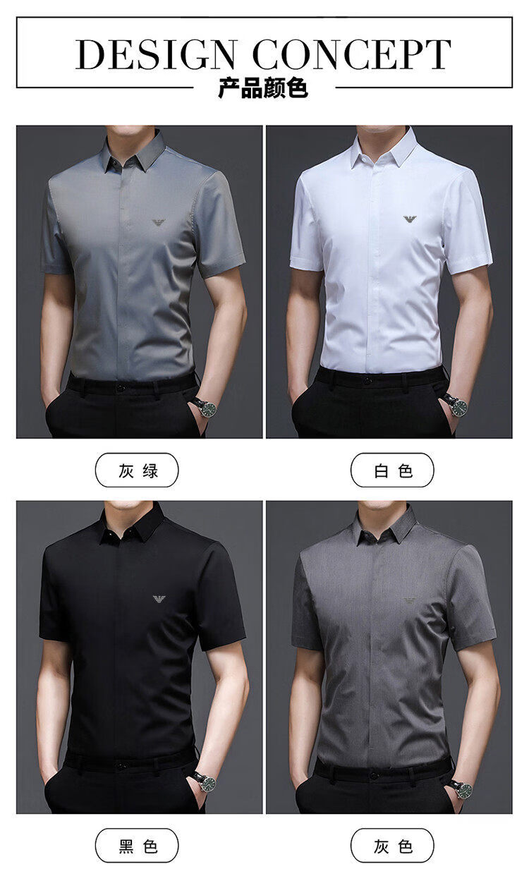 Armani (ARMANI) Italian men's short-sleeved shirt summer ice silk half-sleeved shirt without ironing high-end business men's white shirt AG-8816 gray green 4XL 190 (200Jin Jin is equal to less than 0.5 kg)