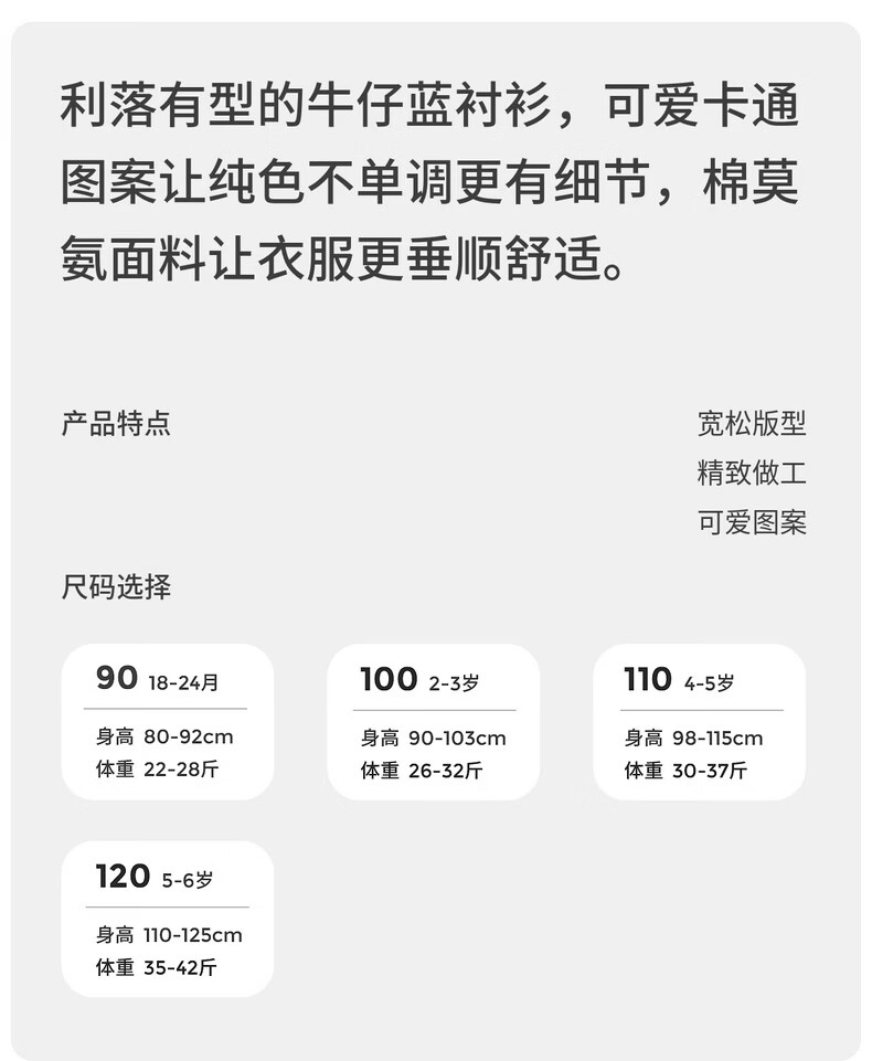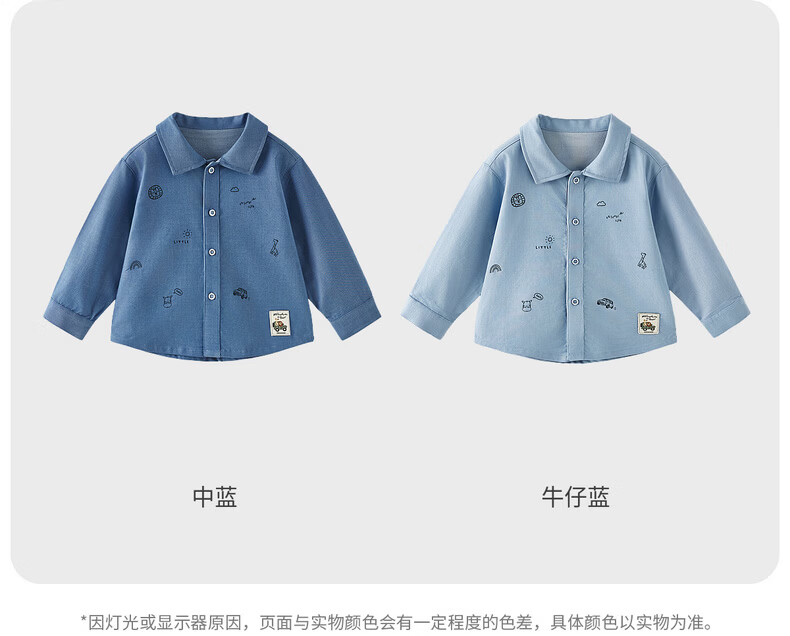 Tongtai (TONGTAI) baby boy shirt spring and autumn modal cotton boys' tops children's outing long-sleeved shirt jacket children's clothing denim blue 110