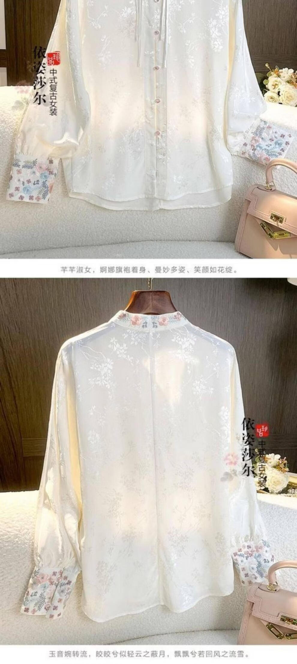Hengyuanxiang New Chinese Style White Embroidered Antique Shirt Women 2026 Spring and Autumn New Zen Button Tang Suit Hanfu Top White-9001 3XL Recommended 135-150Jin Jin is equal to 0.5 kg