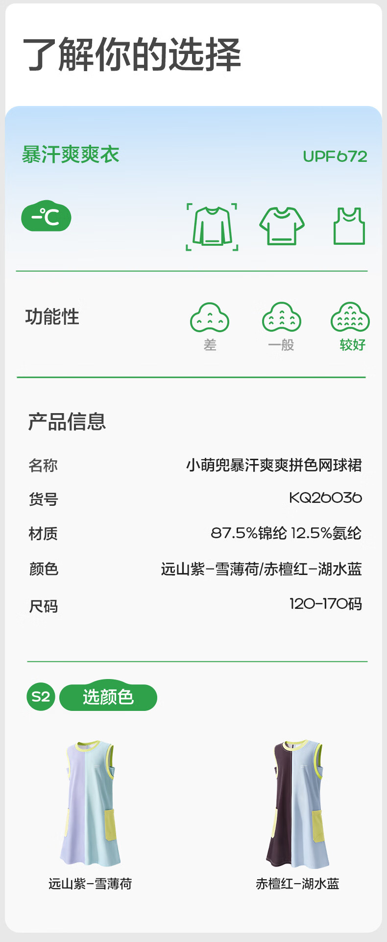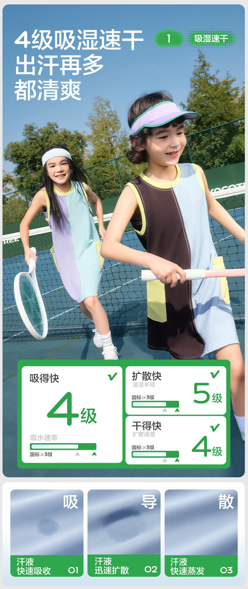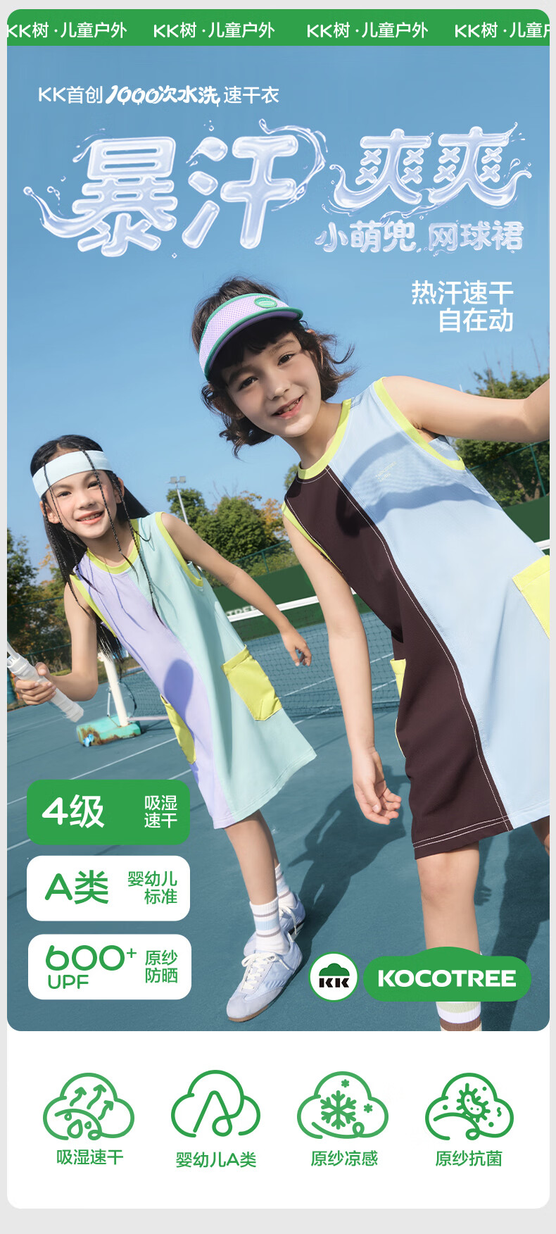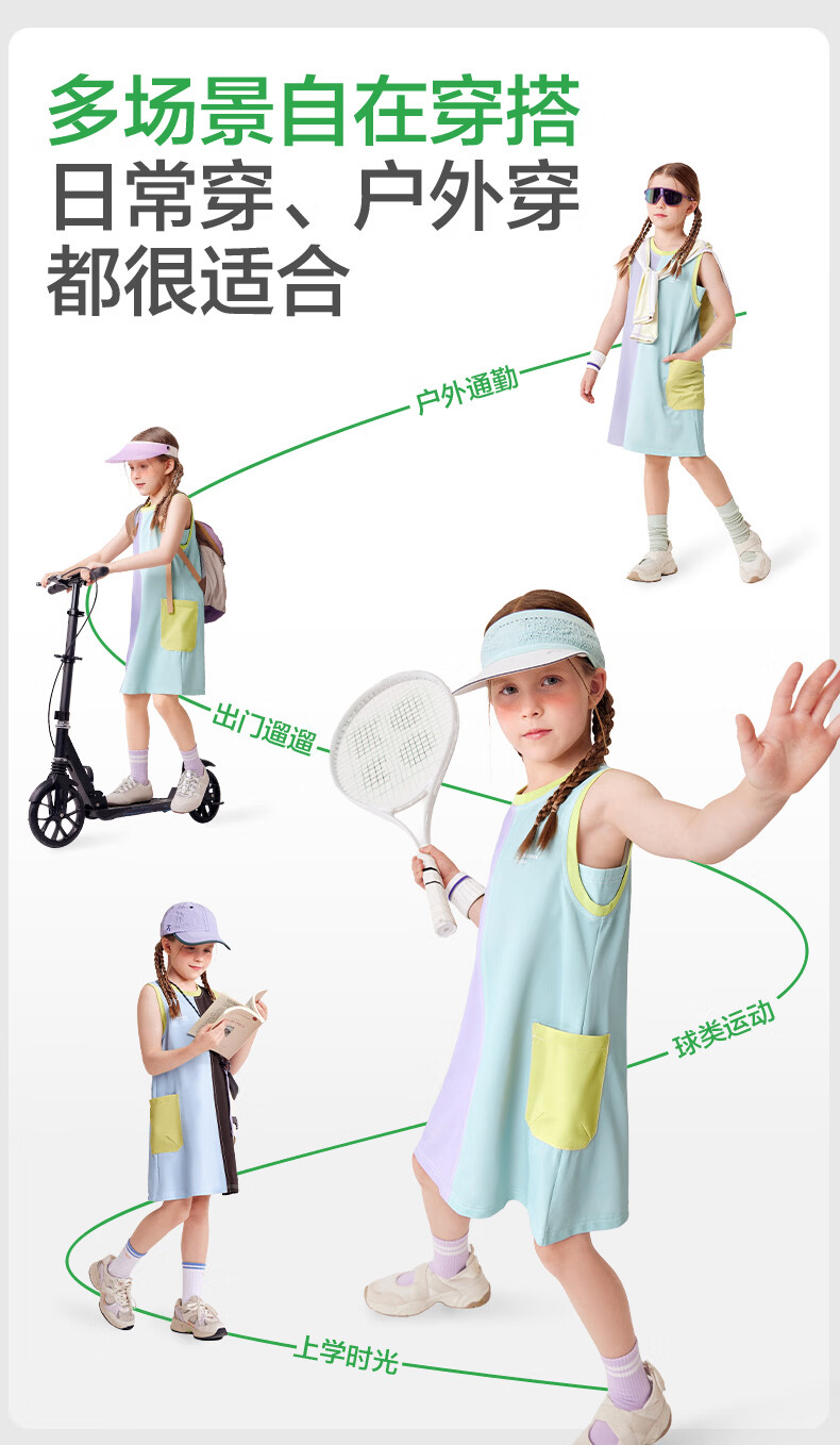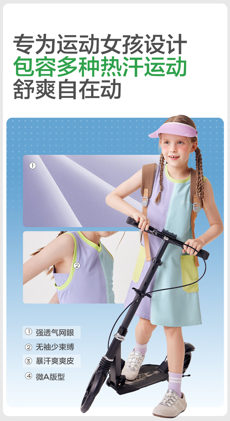 KocotreeKK tree children's skirt quick-drying sun protection girls sports breathable tennis dress summer thin sleeveless tank top distant mountain purple-snow mint 120