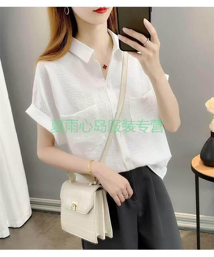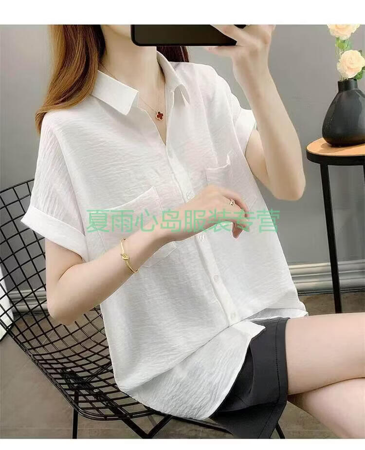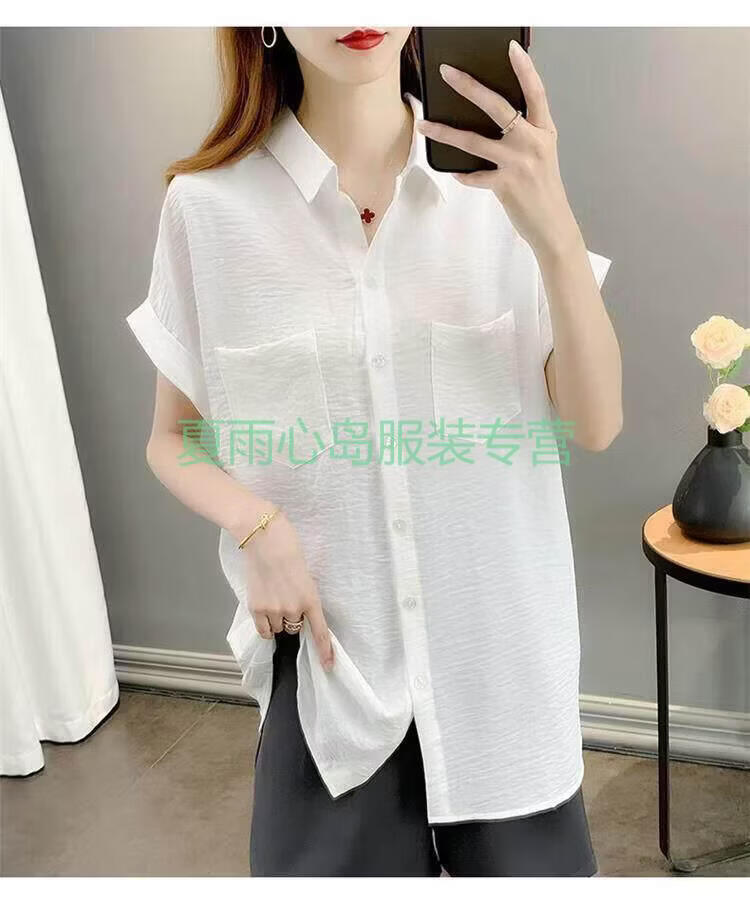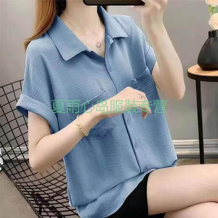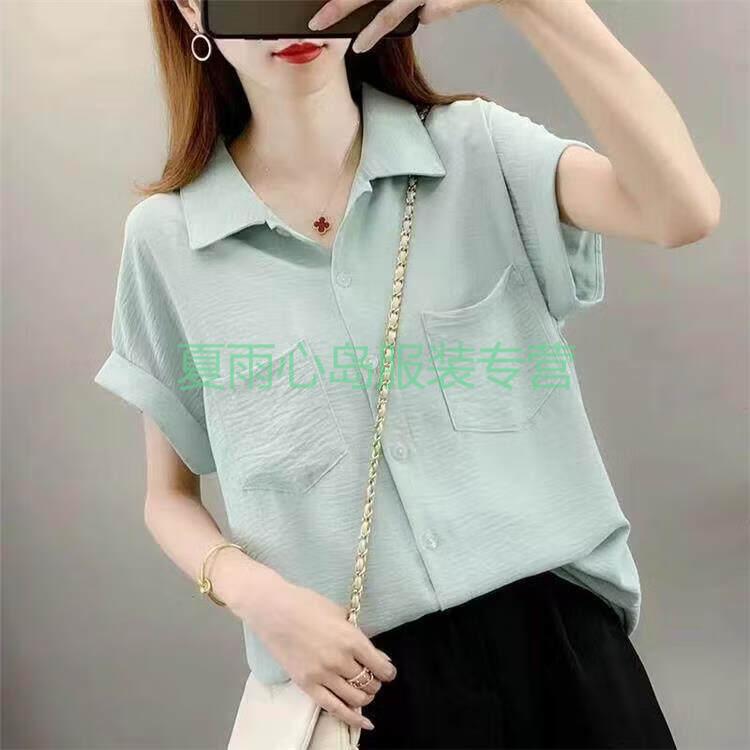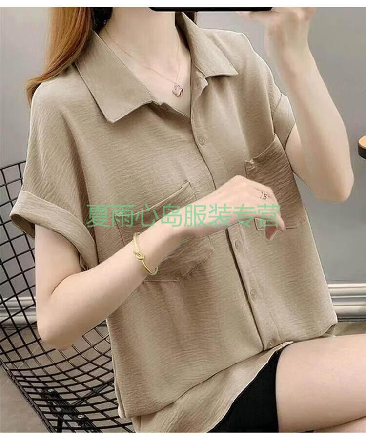 Woodpecker 2026 New Trendy Loose High-end Chiffon Shirt Tops Women Summer Thin Shirt Short Sleeve Fashion Large Size Graphic Khaki XL 100-120Jin Jin is equal to 0.5 kg