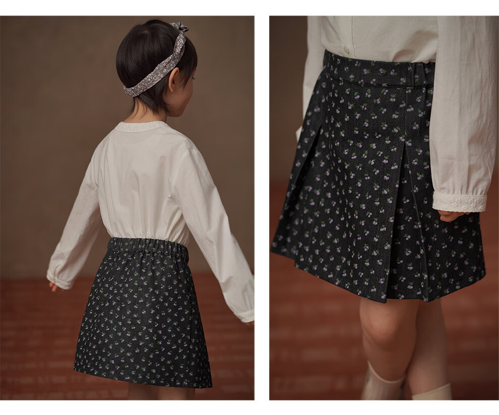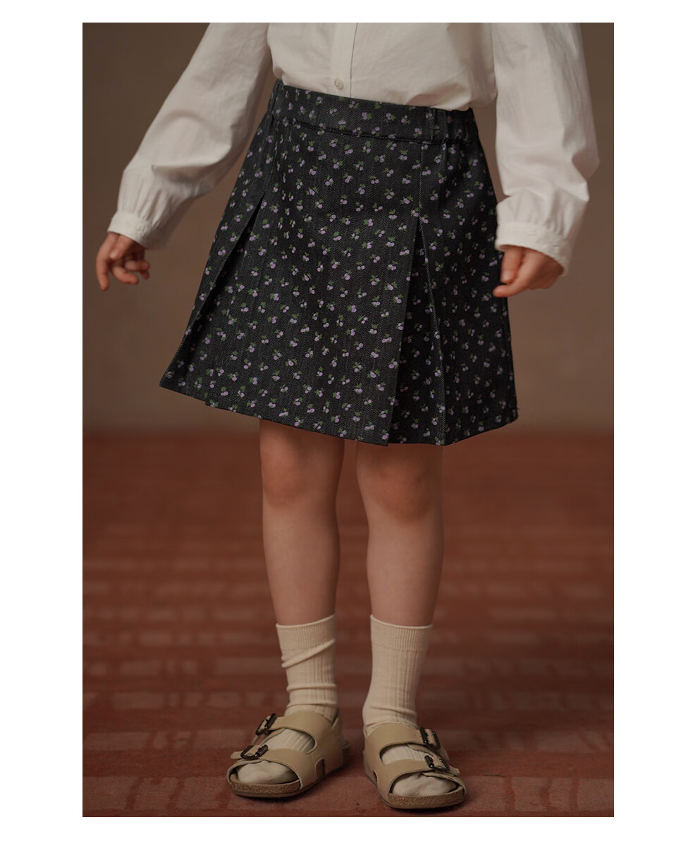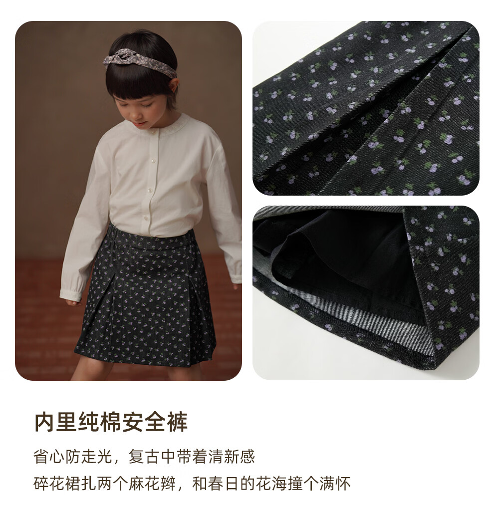 Haqi Children's Clothing 2026 Spring and Autumn Children's Pleated Skirt Retro Floral Twill Denim Skirt Girls A-Line Skirt Girls Floral 150
