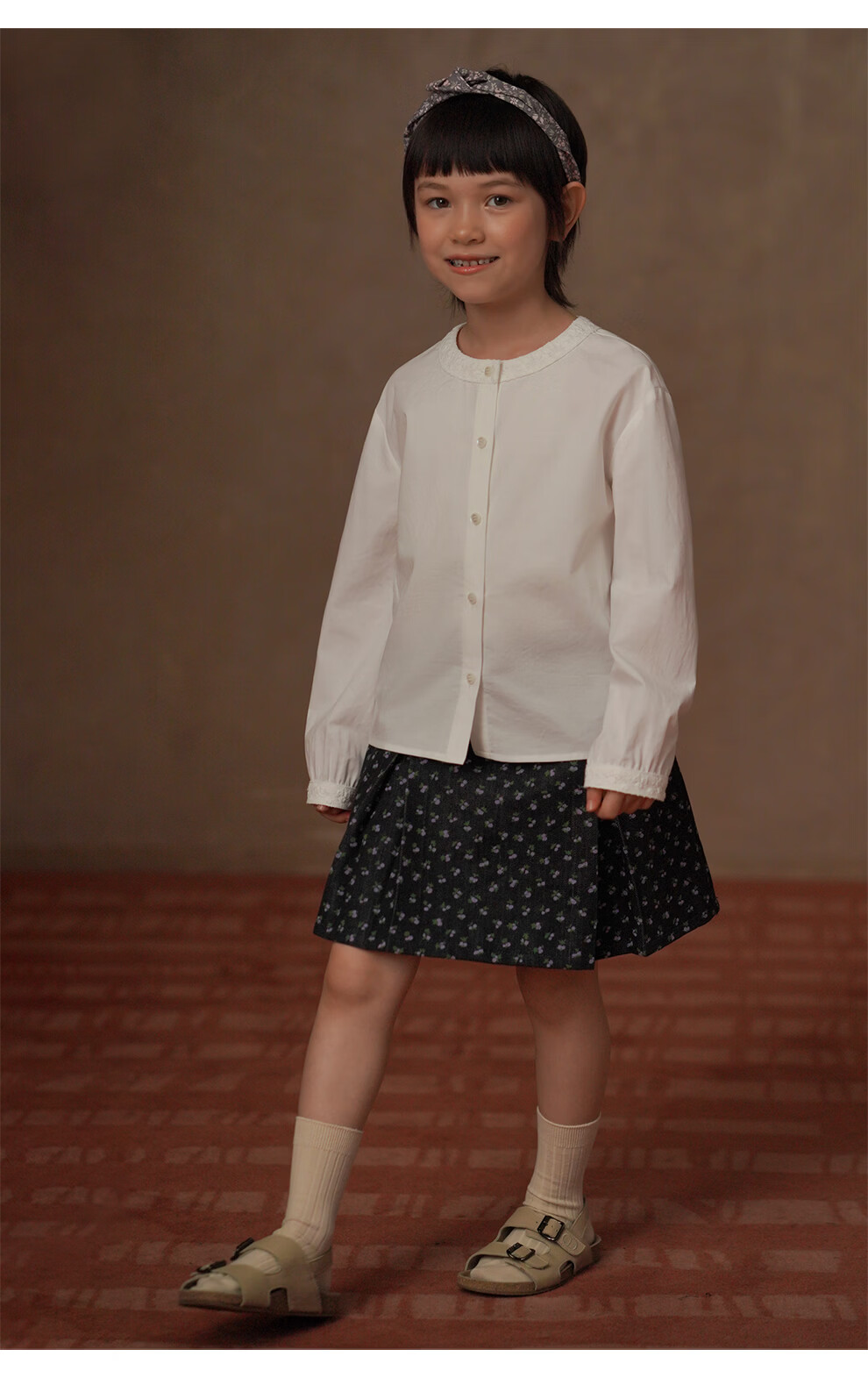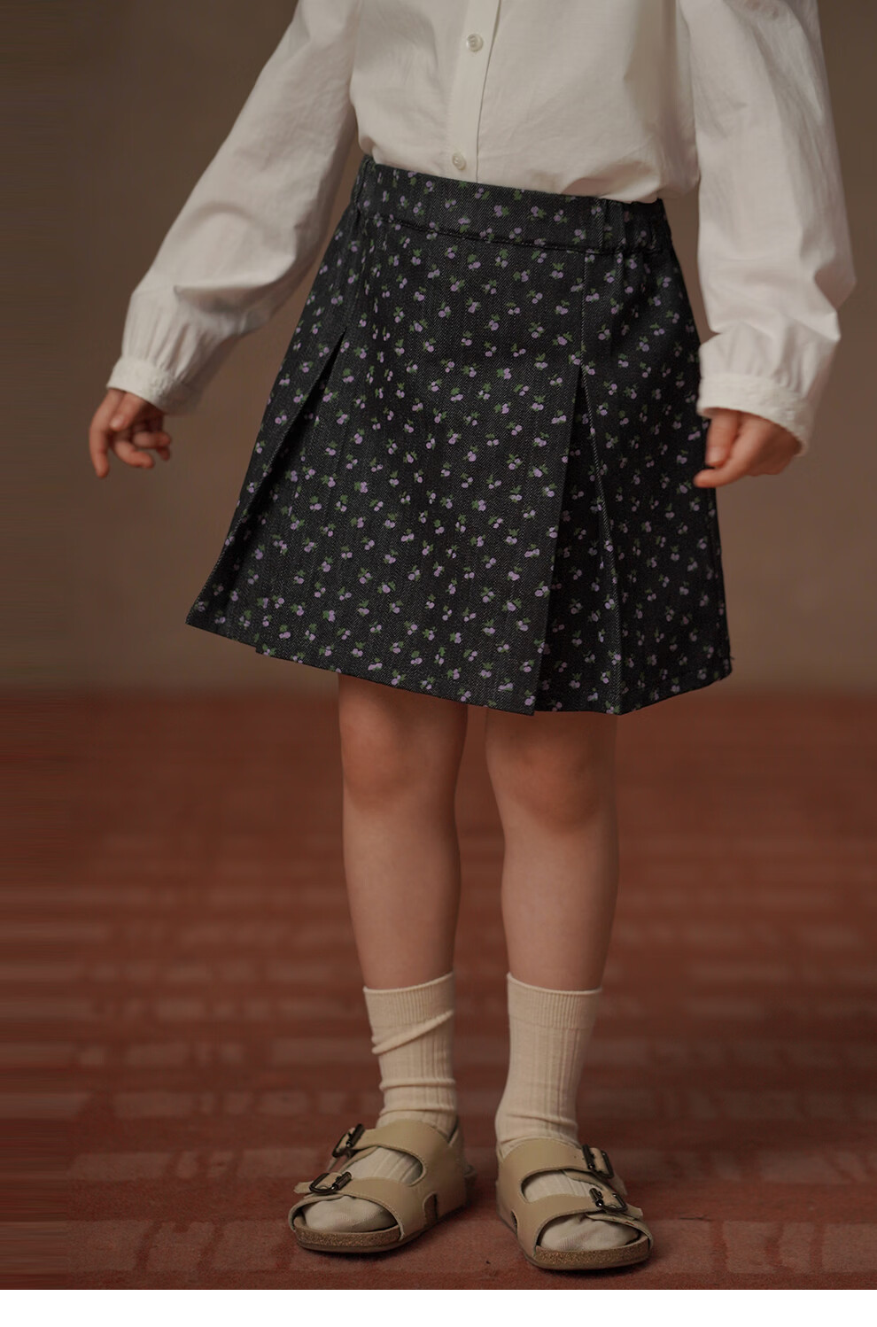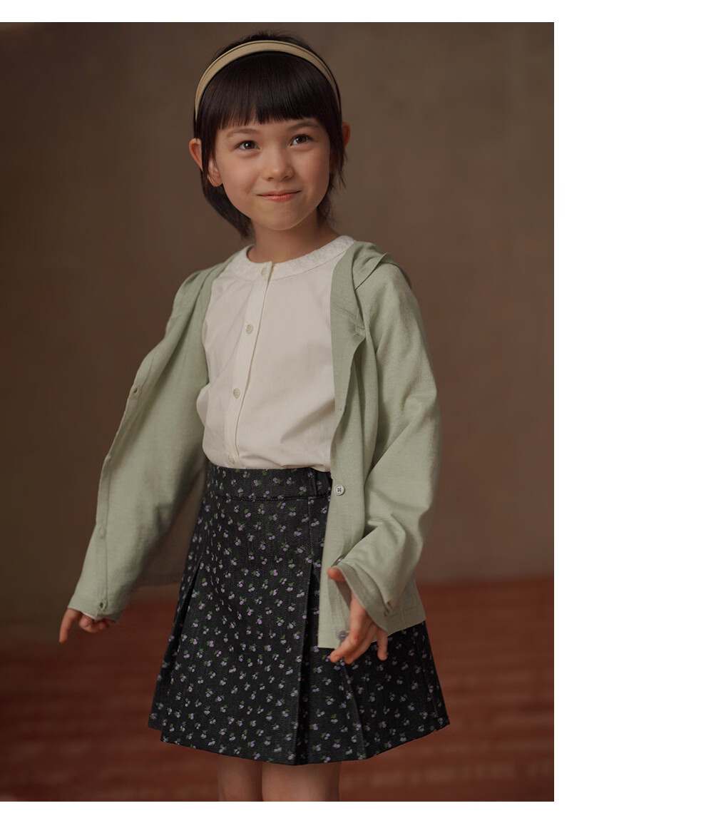 Haqi Children's Clothing 2026 Spring and Autumn Children's Pleated Skirt Retro Floral Twill Denim Skirt Girls A-Line Skirt Girls Floral 150