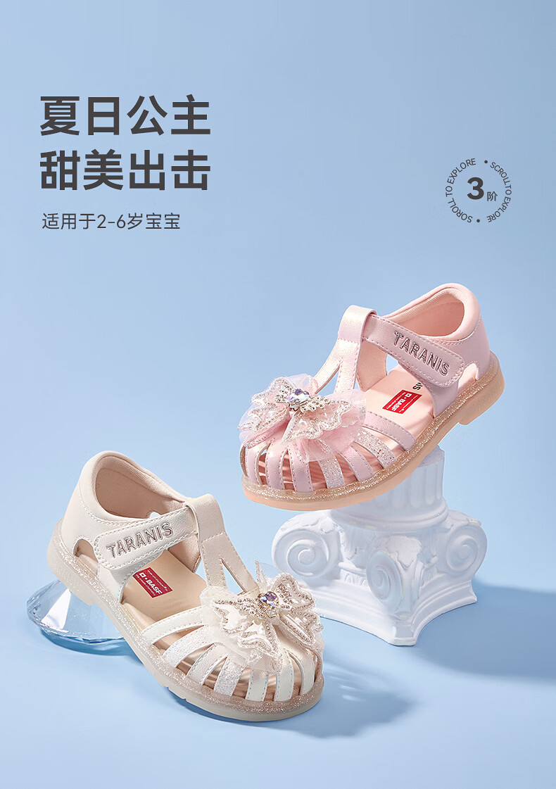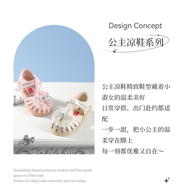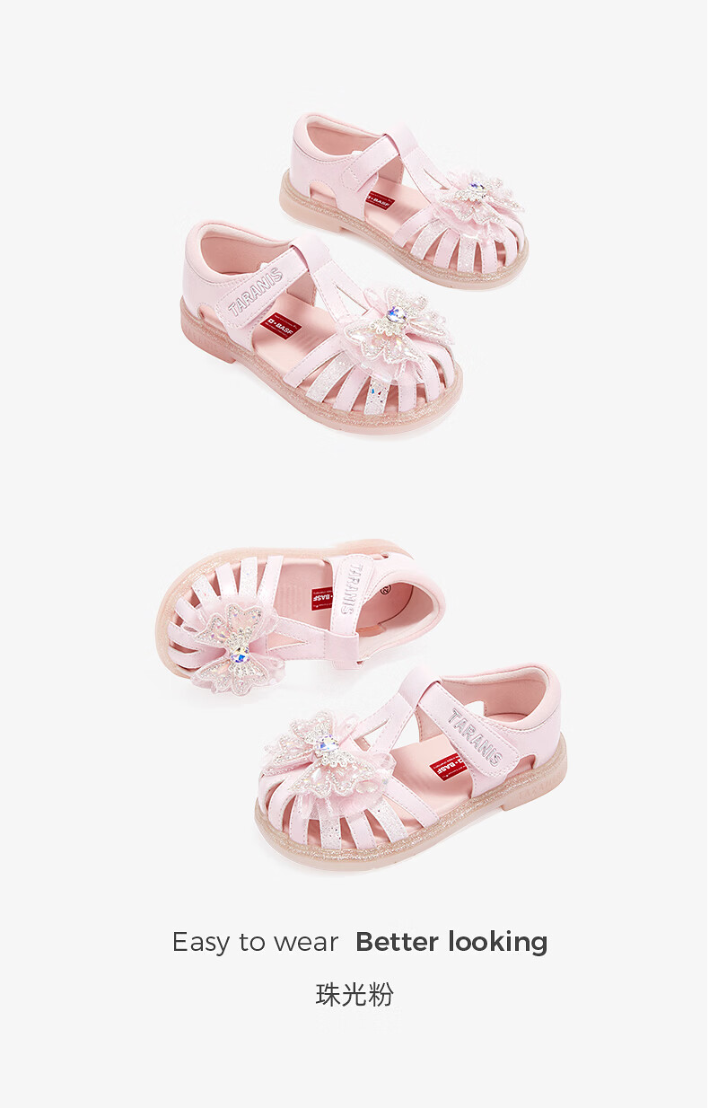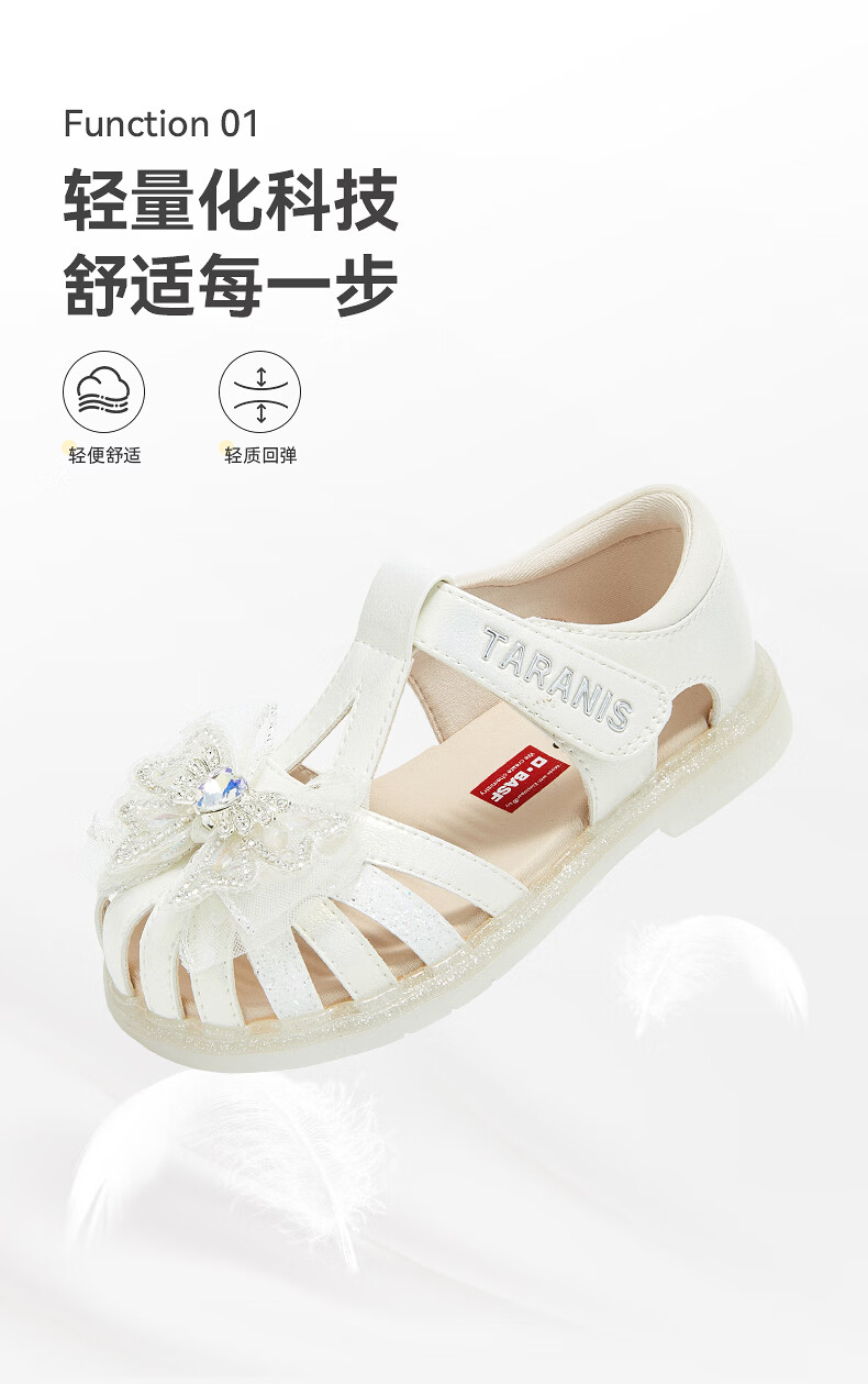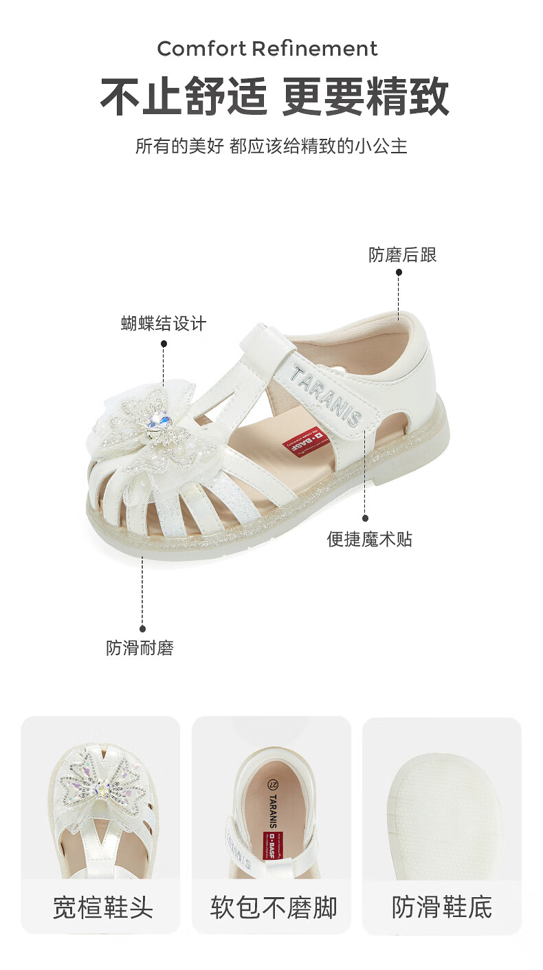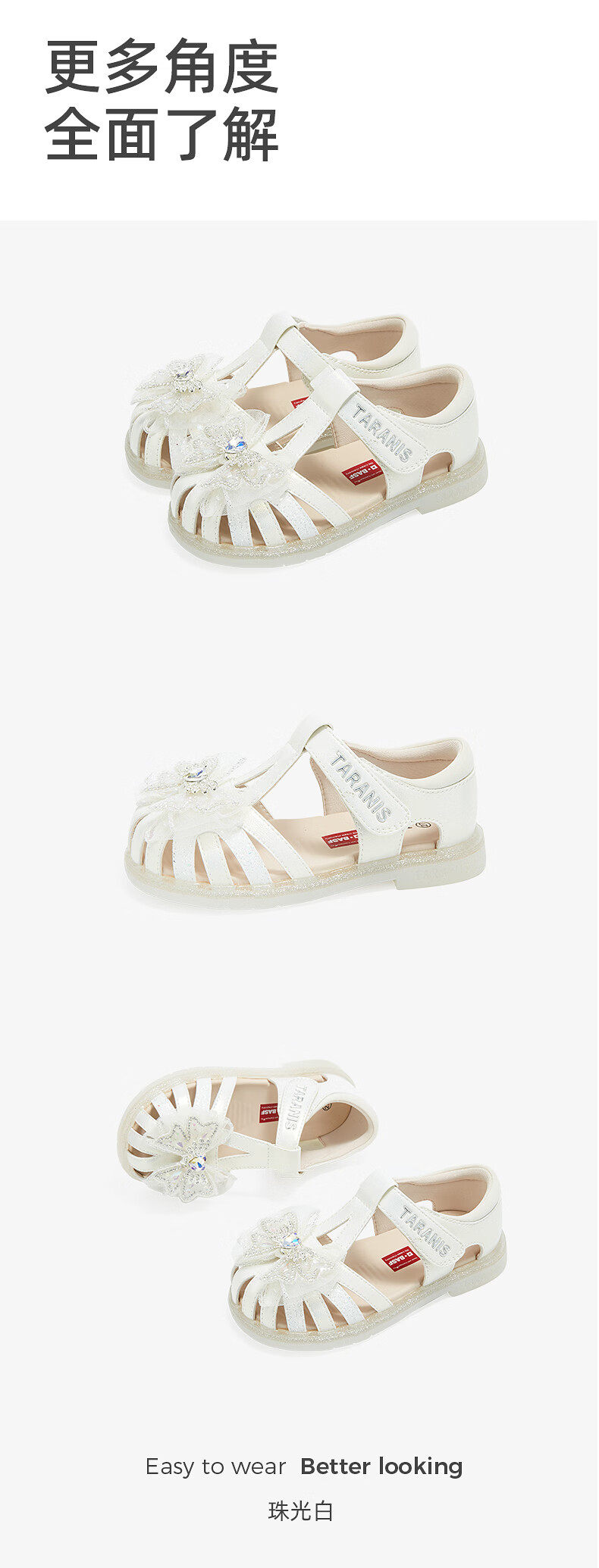 Terranis Meta Princess Sandals 2026 Summer New Girls Crystal Shoes Soft Soled Little Girls Fashionable Shoes Pearl White 24 Suitable for Feet Length 15.0cm