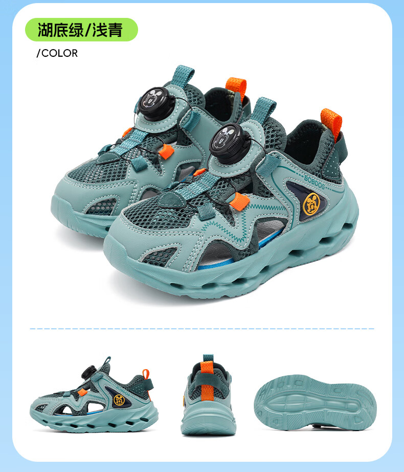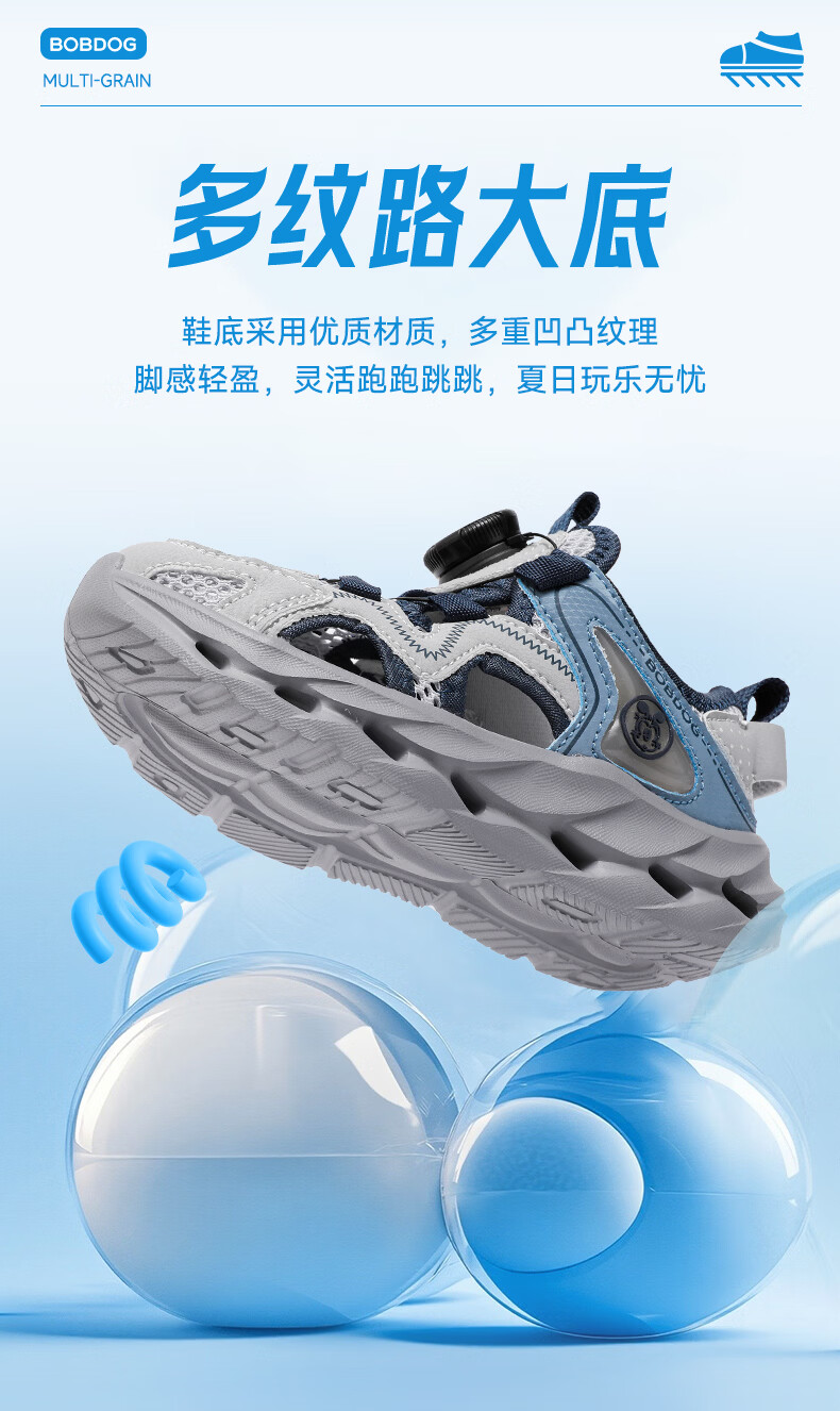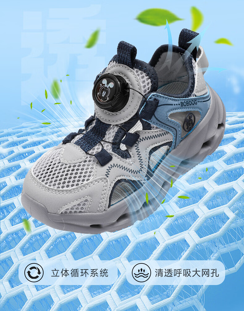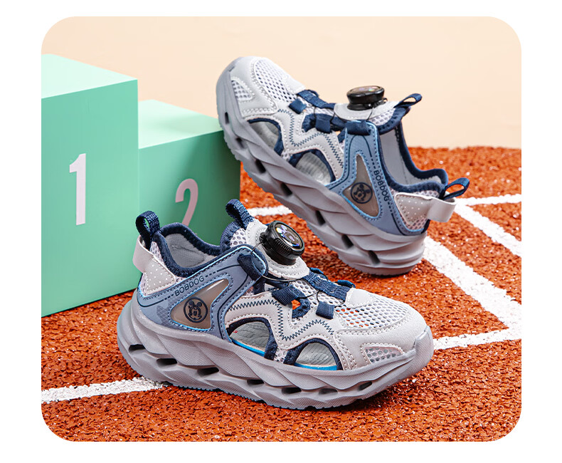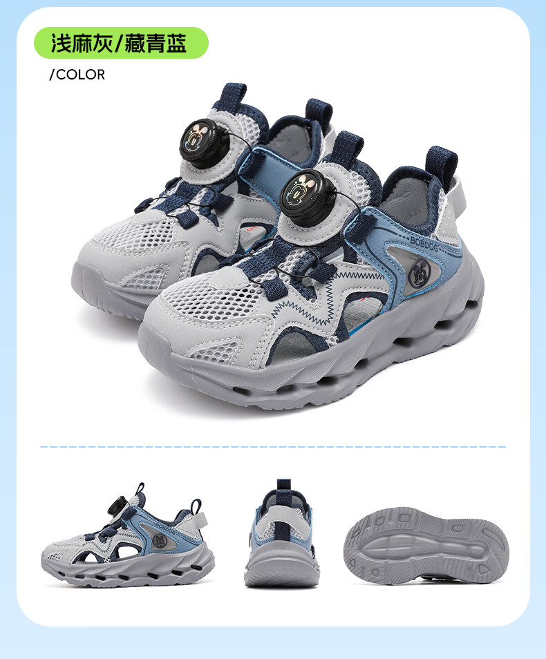 BOBDOG children's shoes, boys' shoes, 2026 new summer boys' breathable frame shoes, summer style baby boy toe-cap sandals, light hemp gray/navy blue 28, inner length 18cm, suitable for feet 17cm long