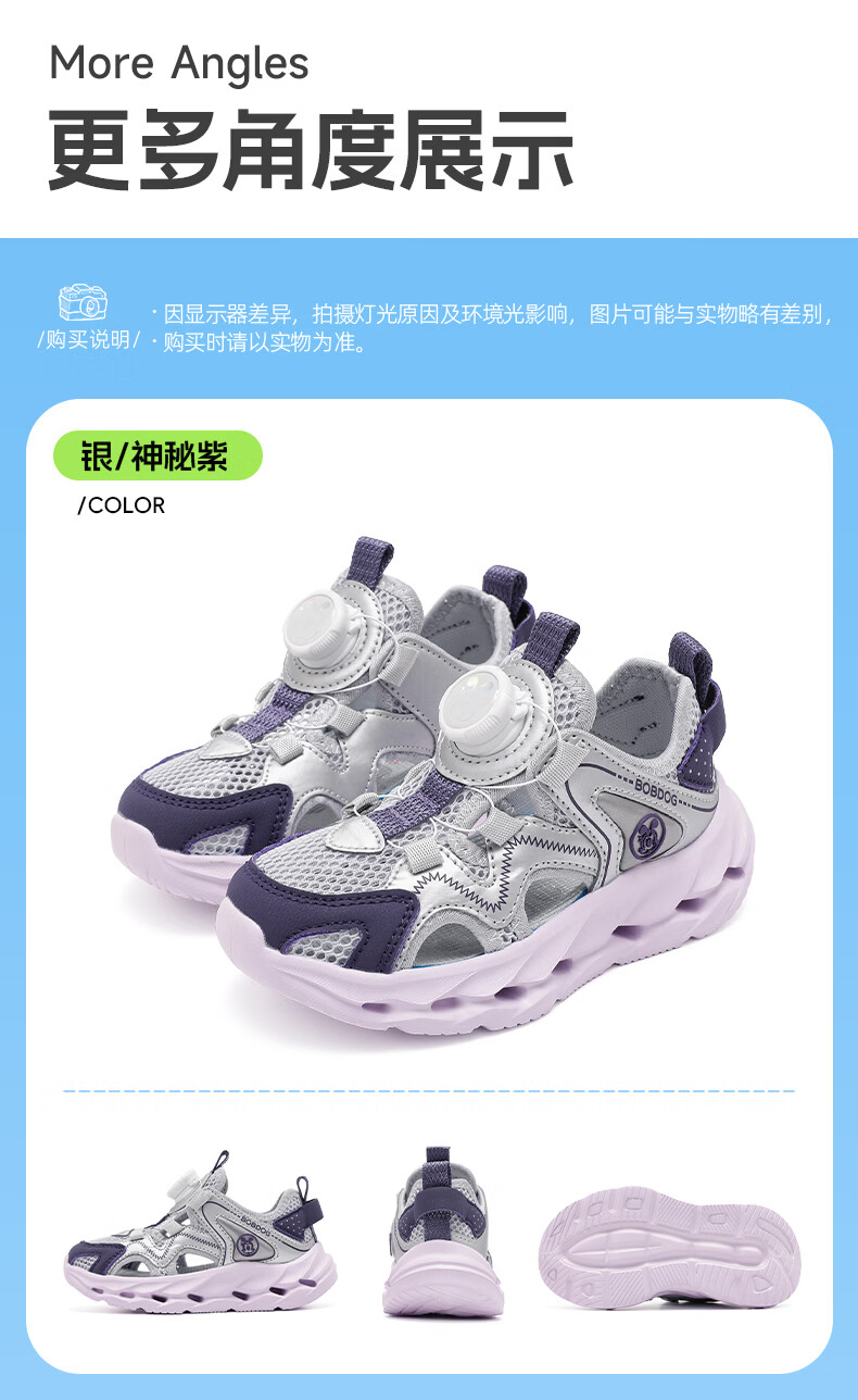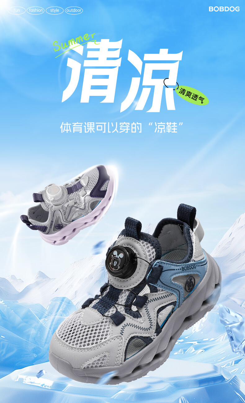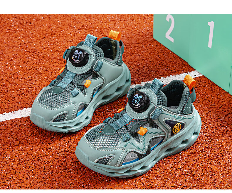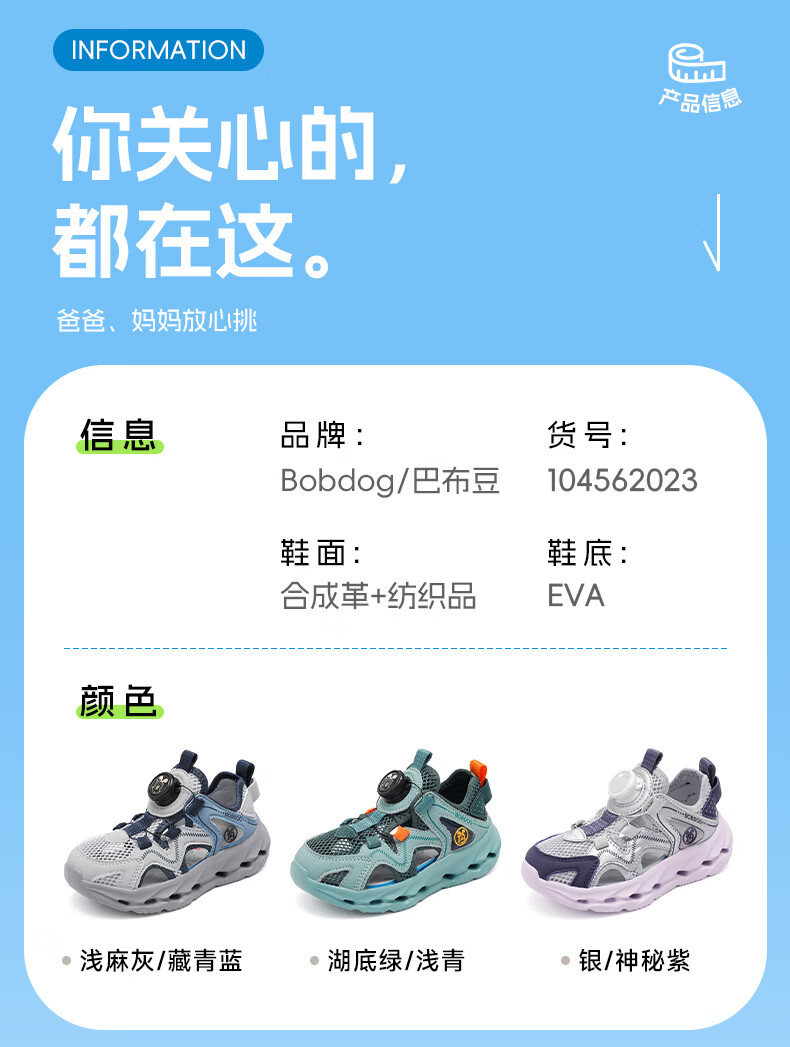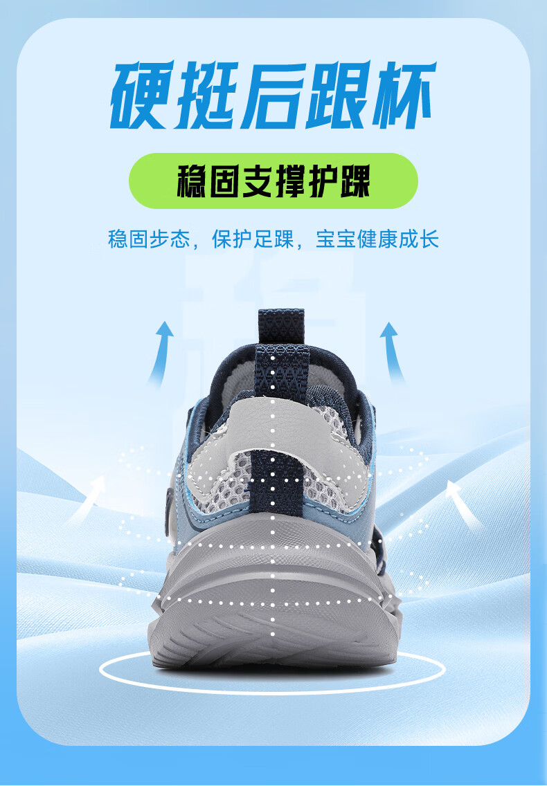 BOBDOG children's shoes, boys' shoes, 2026 new summer boys' breathable frame shoes, summer style baby boy toe-cap sandals, light hemp gray/navy blue 28, inner length 18cm, suitable for feet 17cm long