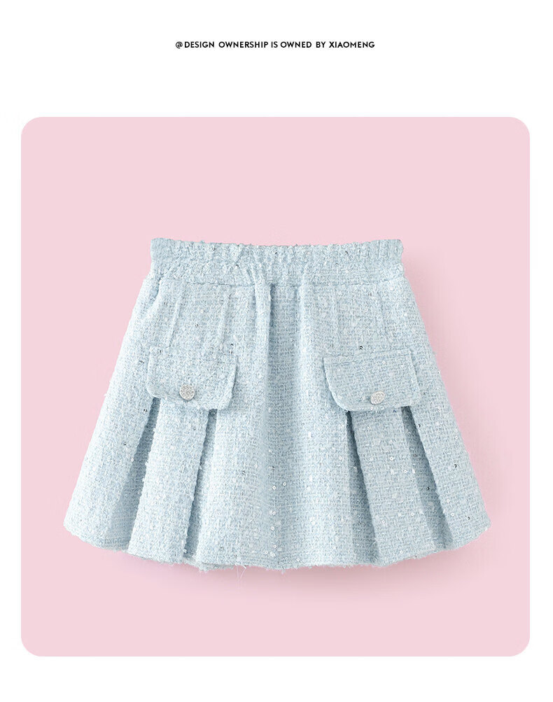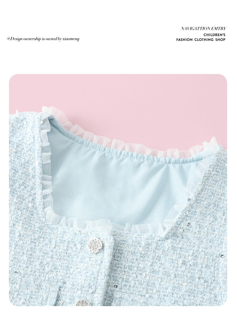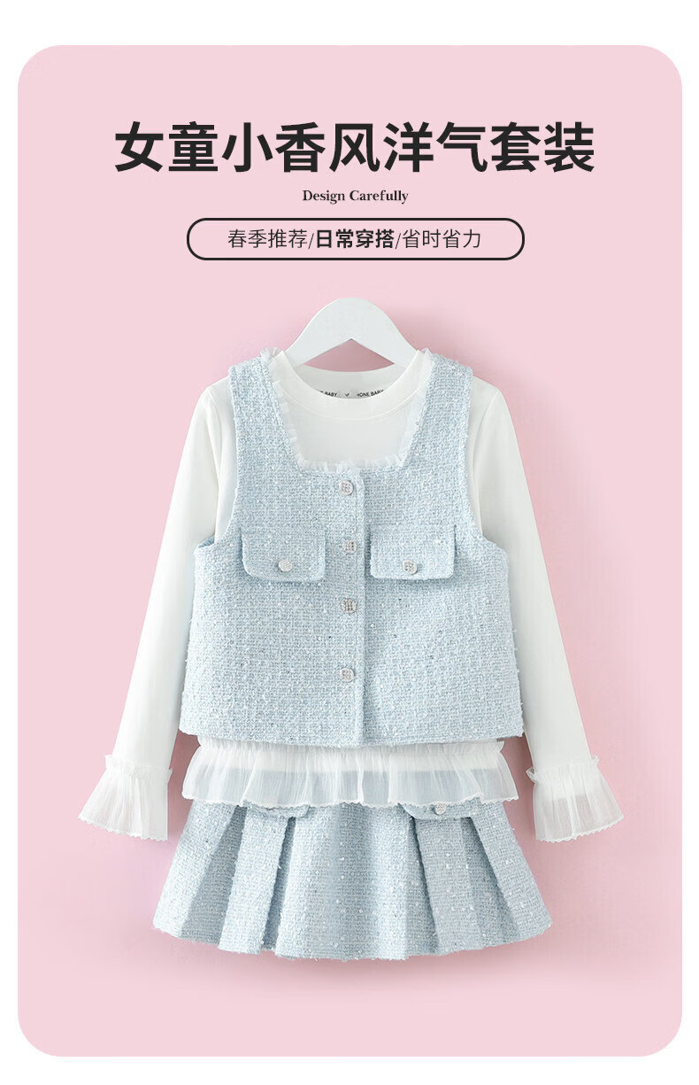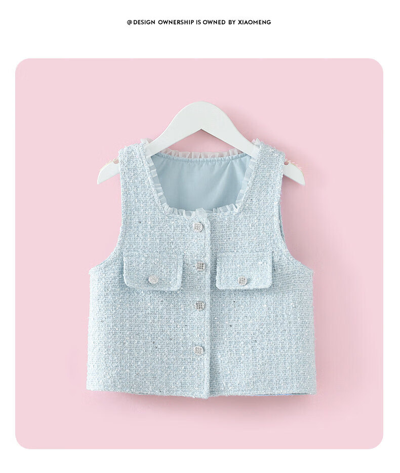 G.duck girls' small fragrant style vest dress suit 2026 spring and autumn new princess dress light blue three-piece set 120 cm
