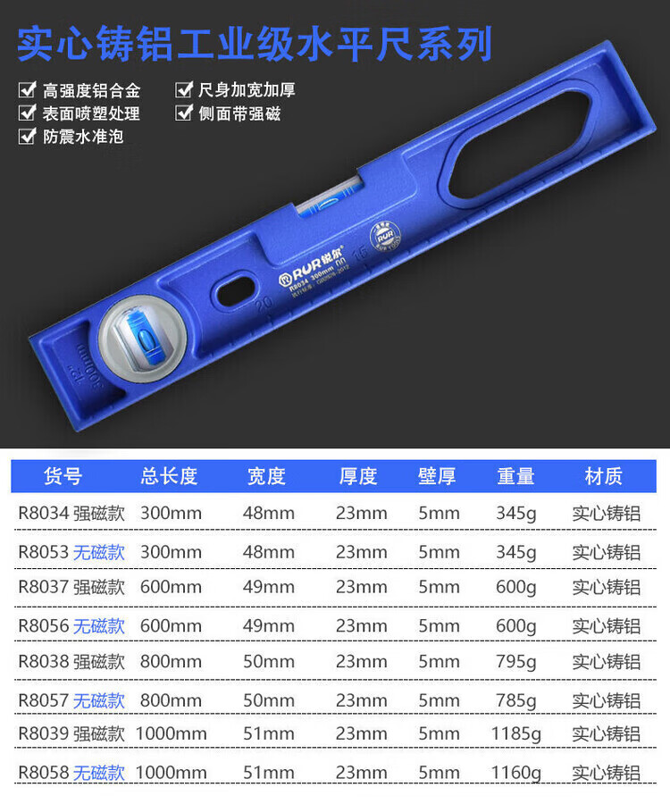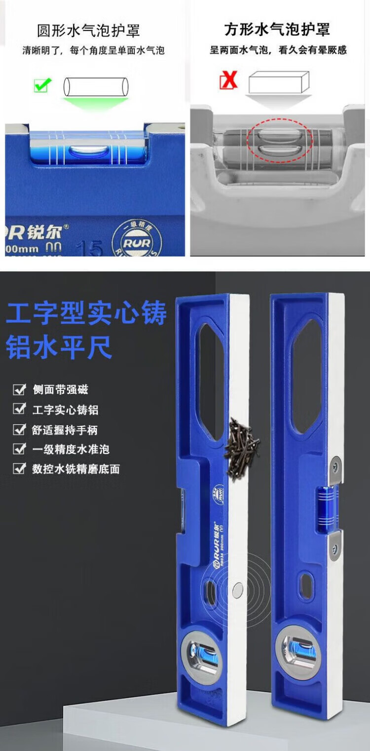 Jingeyu nivel de aluminio fundido nivel de aluminio fundido sólido decoración de azulejos de pared de alta precisión nivel magnético fuerte de alta resistencia SN3090 Nivel de aluminio fundido de 30 tamaños con imán fuerte