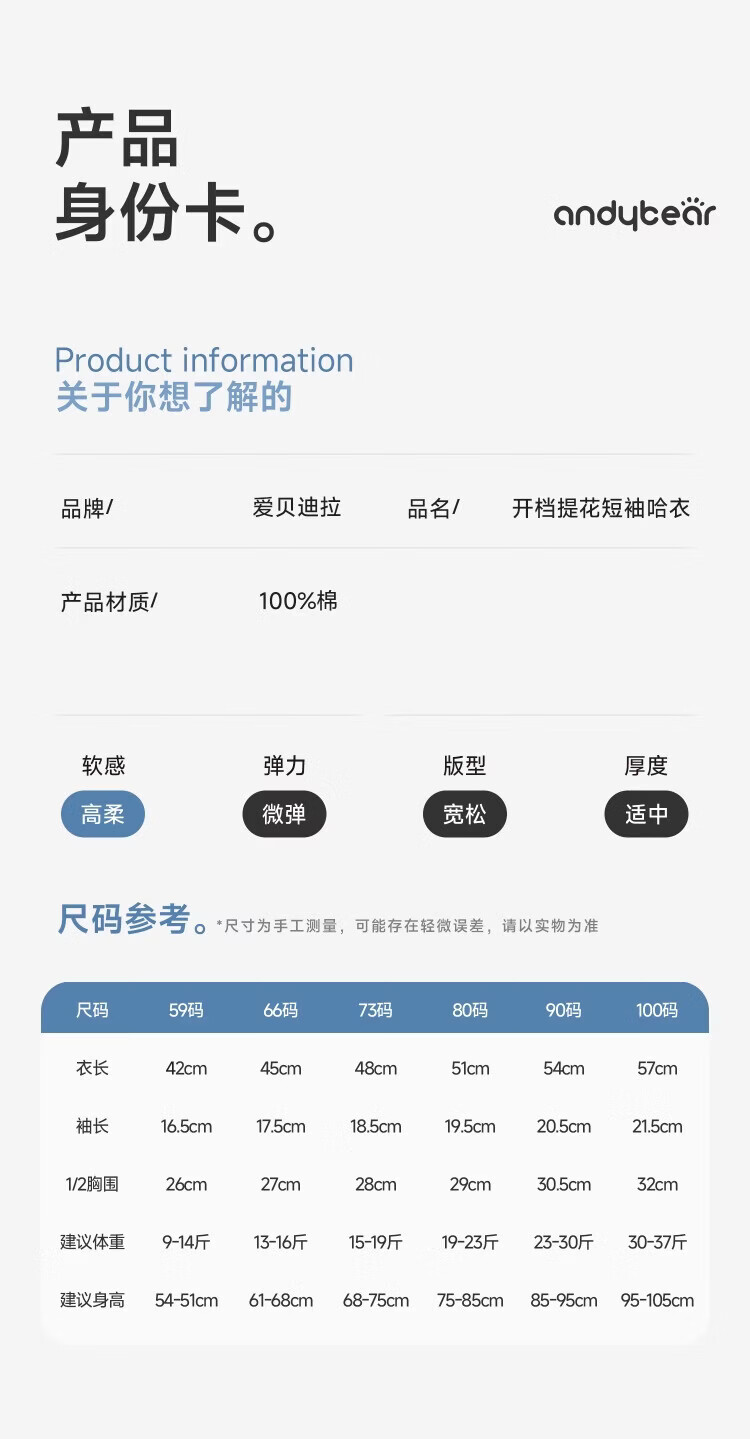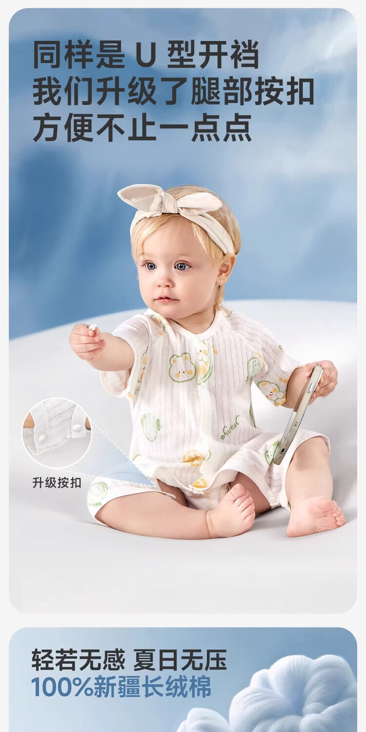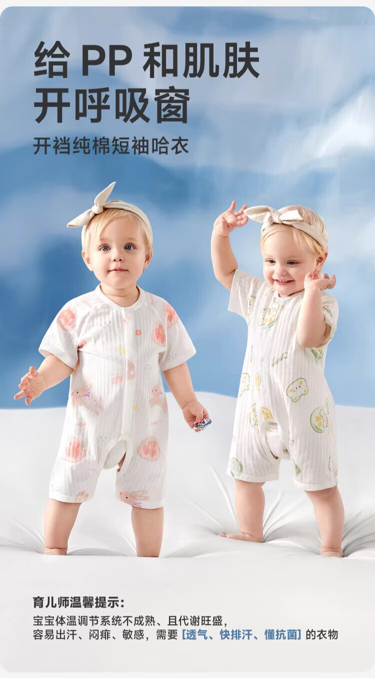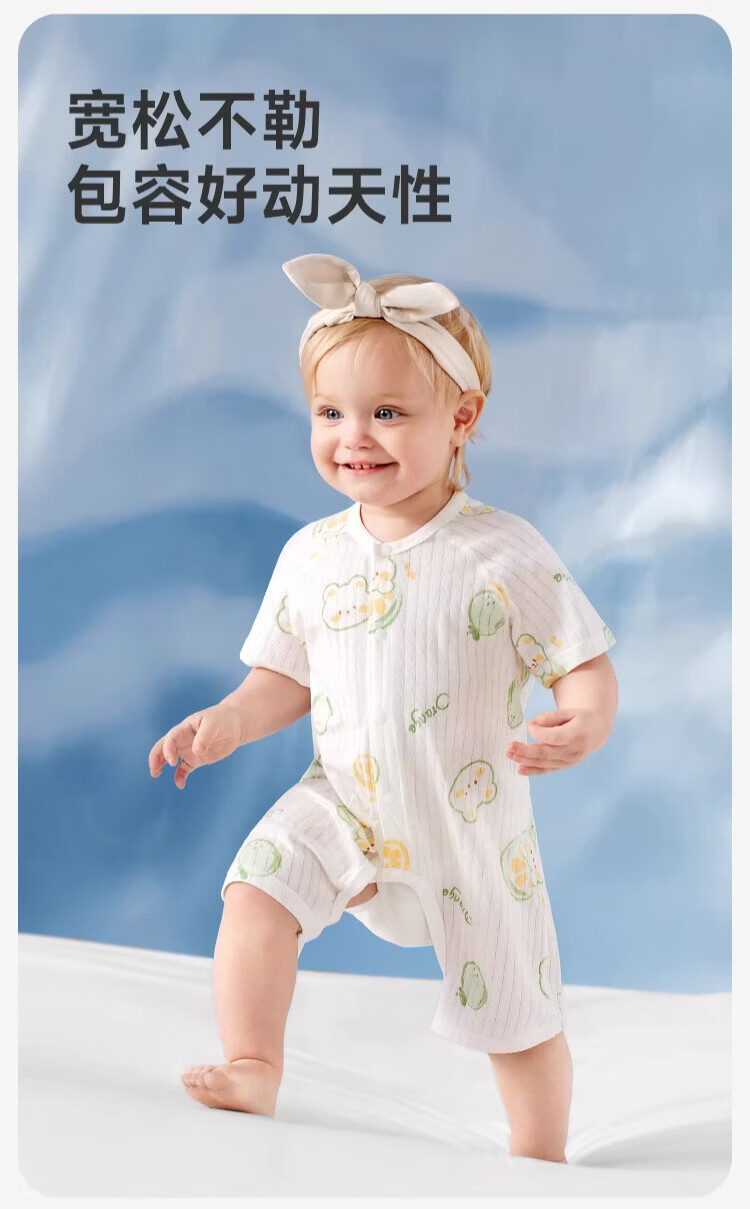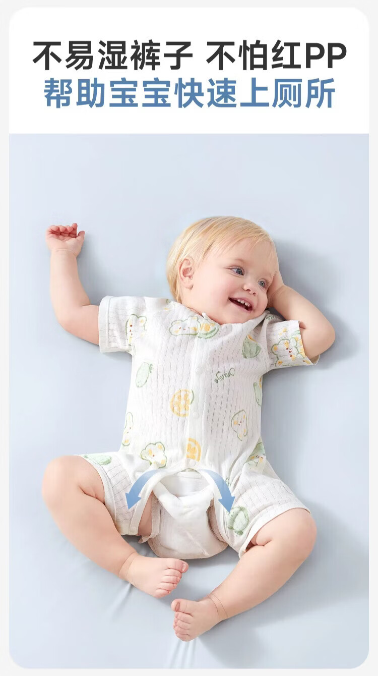 AIBEDILA baby clothes, summer thin short-sleeved big-butt pajamas, air-conditioned clothes for men and women, large open pant jumpsuit, U-shaped large open sleeping elephant 59cm (recommended 9-14 Jin Jin is equal to 0.5 kg)