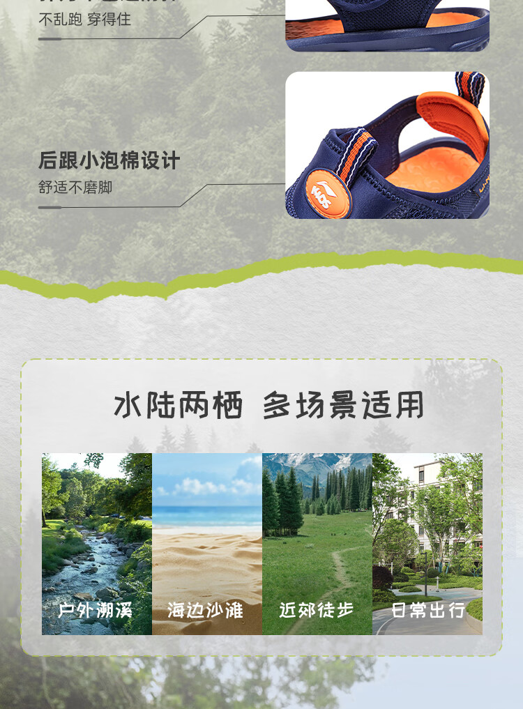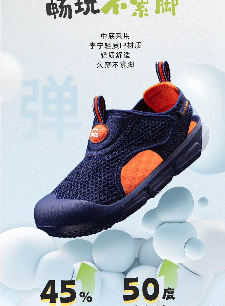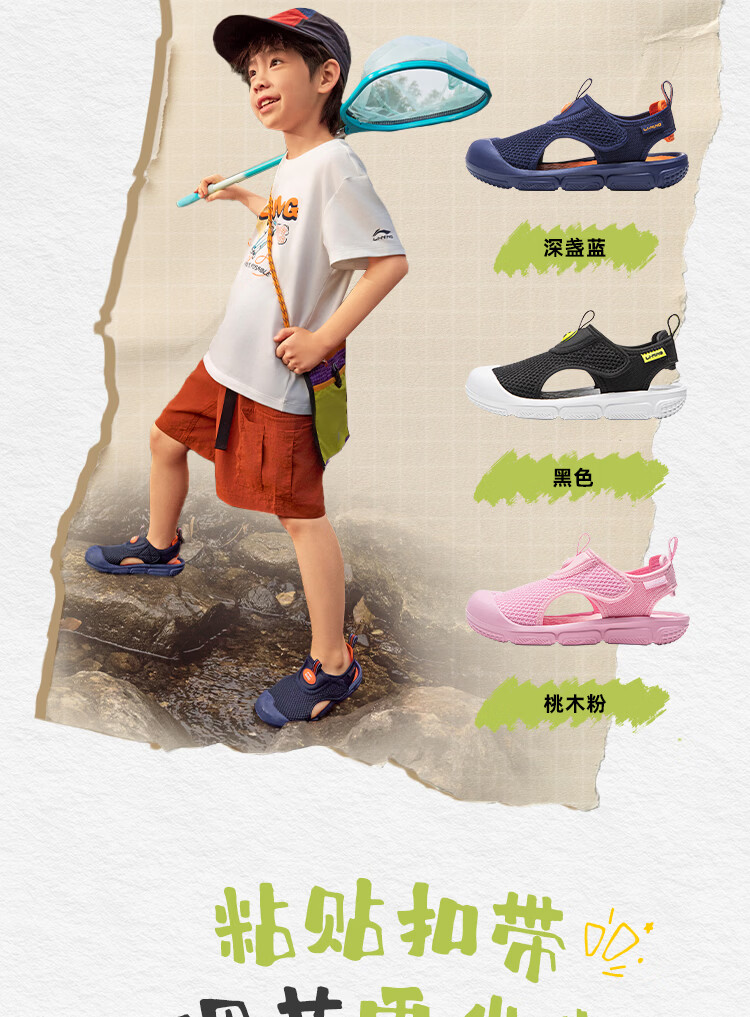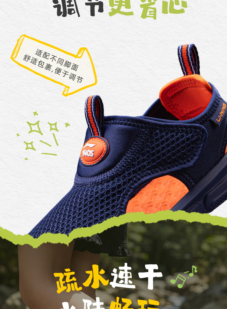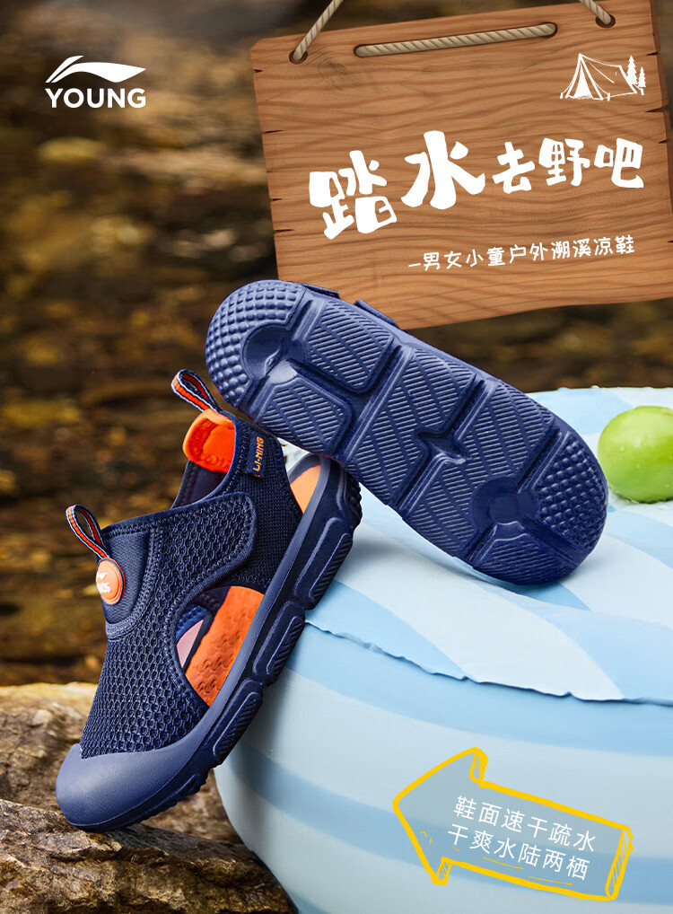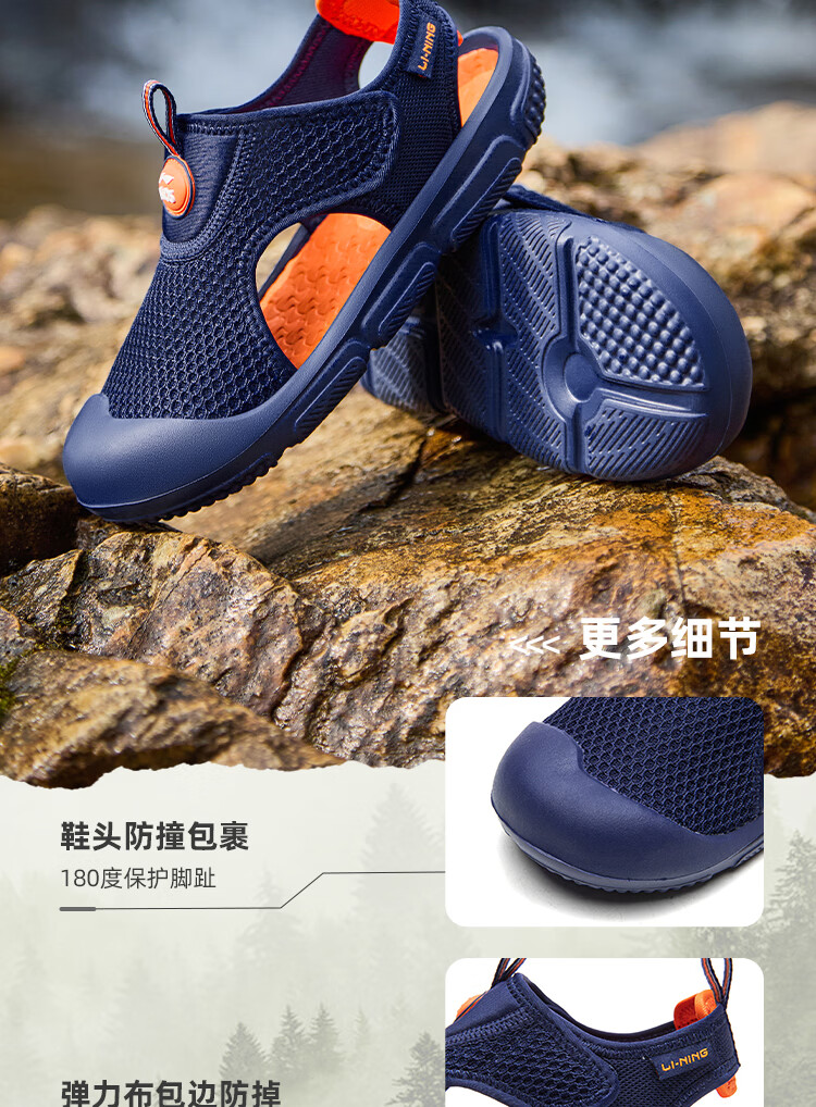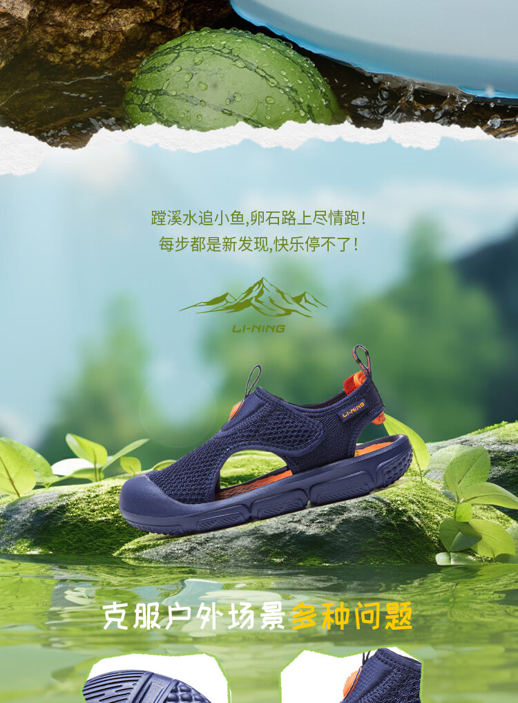 Li Ning Children's Shoes Sandals Boys 2026 New Breathable Casual Sports Lifestyle Series Versatile Trendy Fashion Sports Shoes Black-1 27