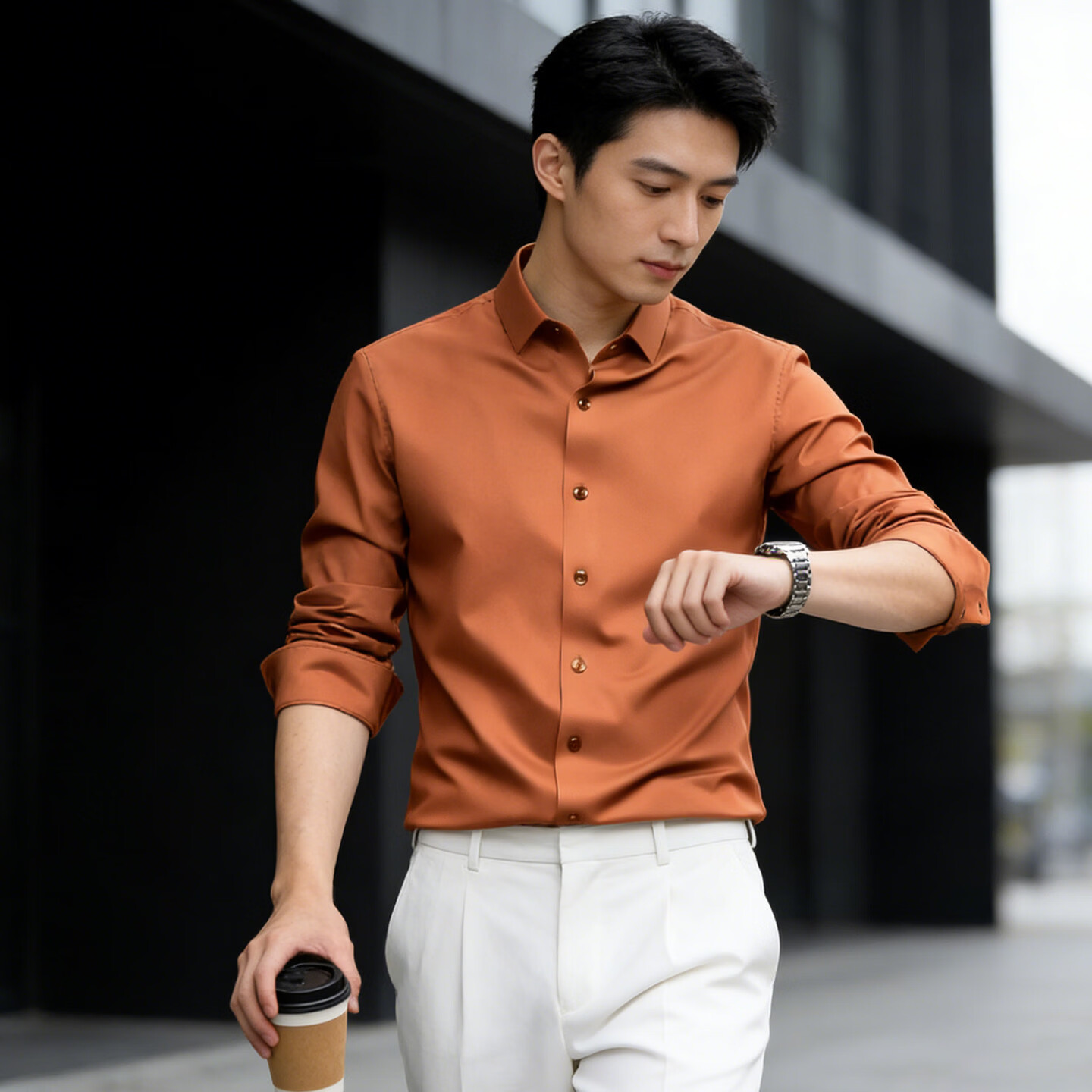 JEEP SPIRIT camisa de manga larga para hombres 2026 verano nueva camisa casual de negocios ropa formal top de seda de hielo de alta gama de negocios de moda Caqui 5XL (44) 180-195 Jin Jin es igual a 0,5 kg