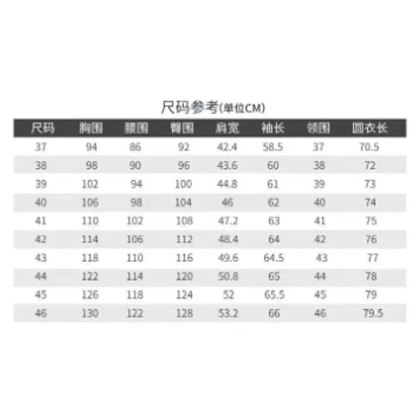China(cm) 72-76 76-81 81-87 87-93 93-98