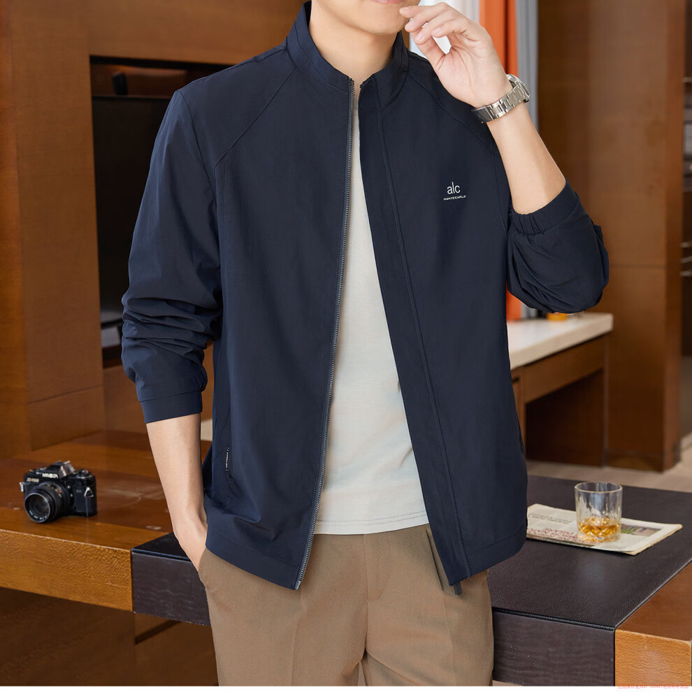 JEEP SPIRIT2026 new stand collar jacket men's spring and autumn thin high-end business casual middle-aged men's spring tops Navy L