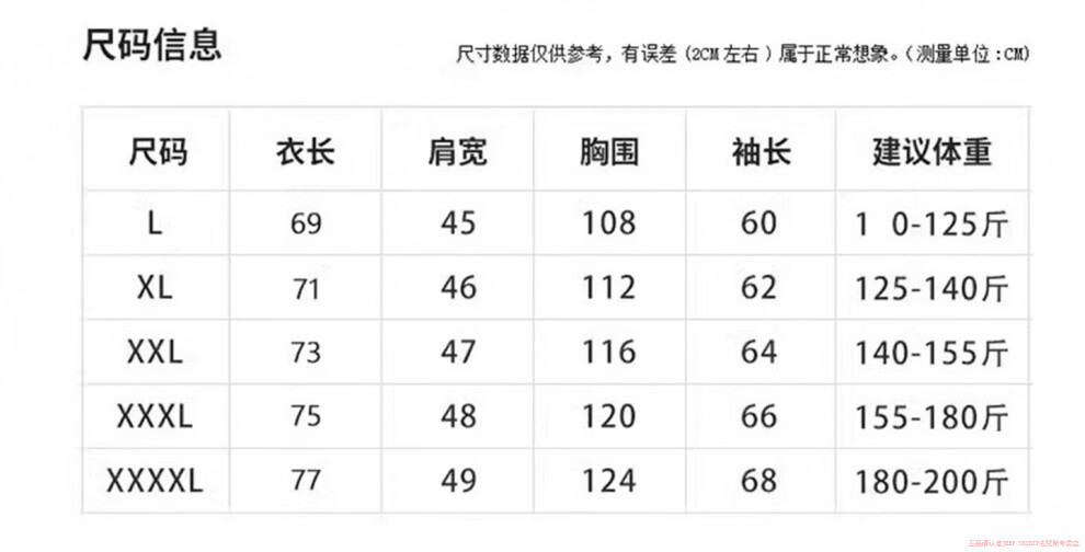 China (cm) 165 / 88-90 170 / 96-98 175 / 108-110 180 / 118-122 185 / 126-130