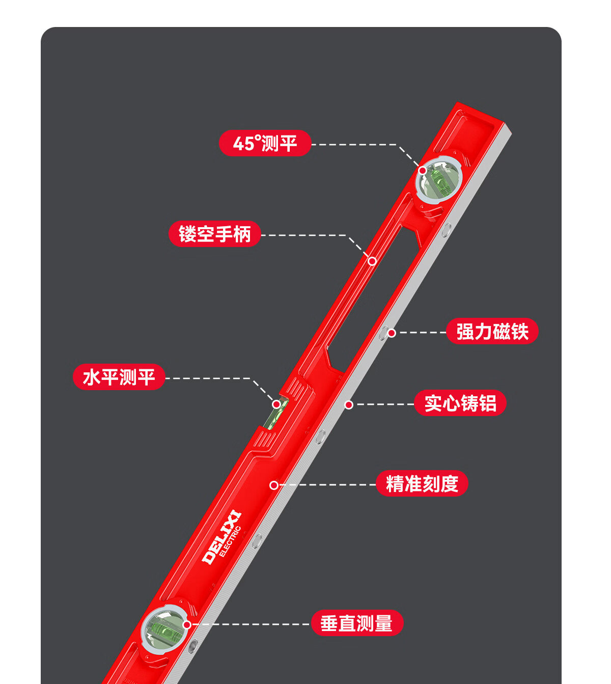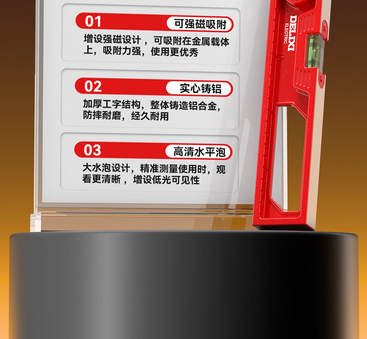 Level high-precision household leveling instrument tool fan small strong magnetic ruler solid anti-fall multi-functional solid cast aluminum 300mm solid cast aluminum non-magnetic industrial grade high 2