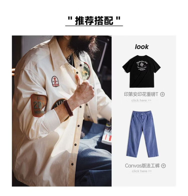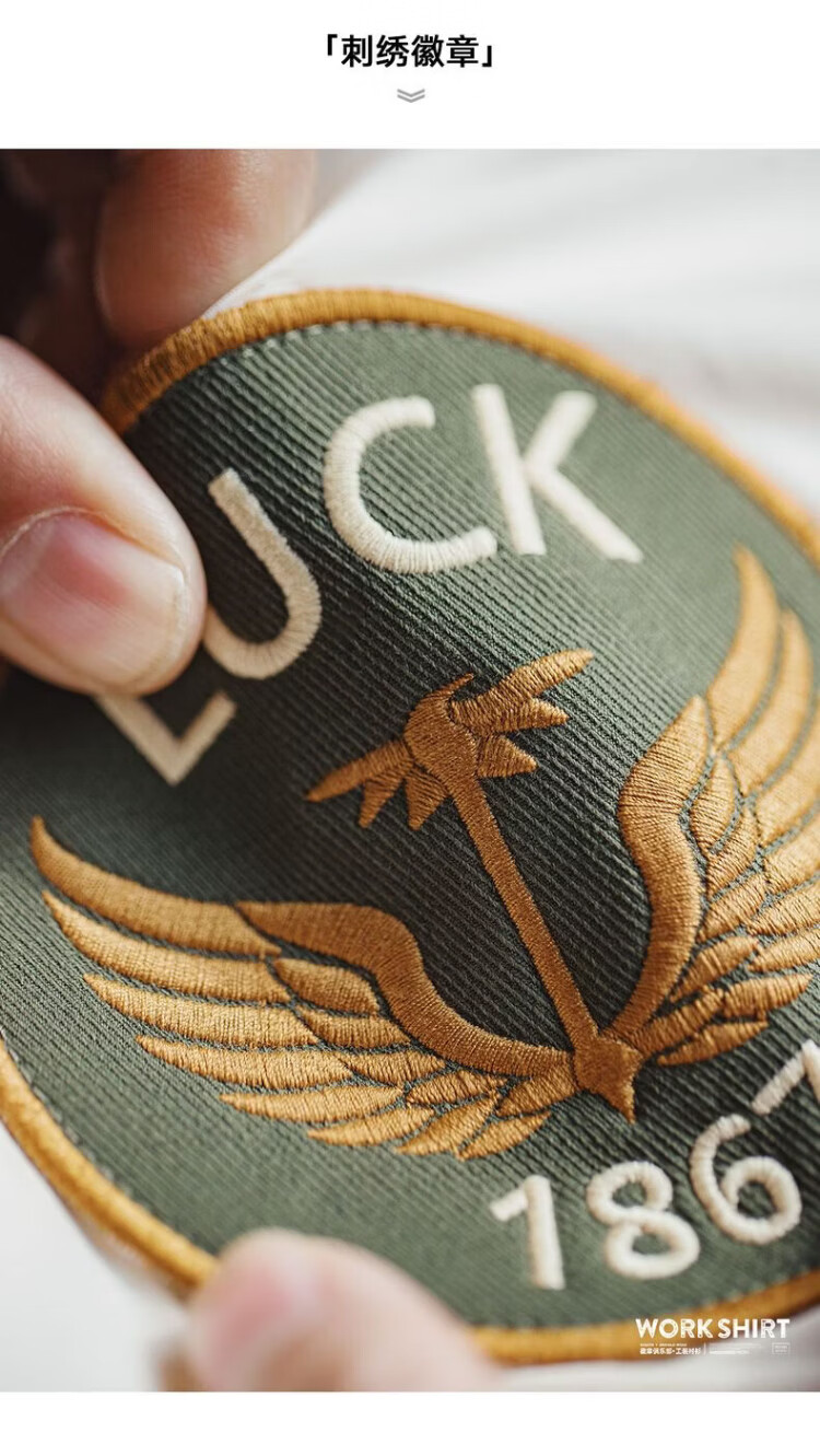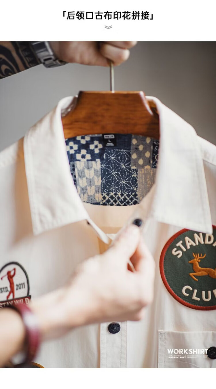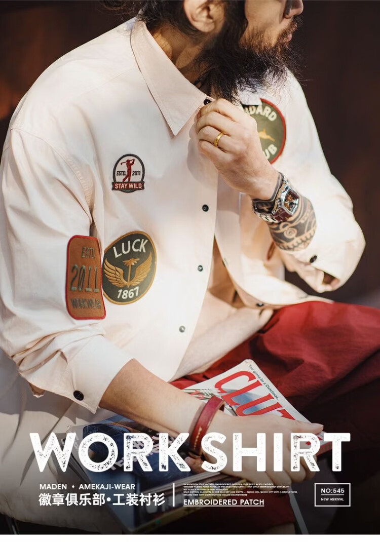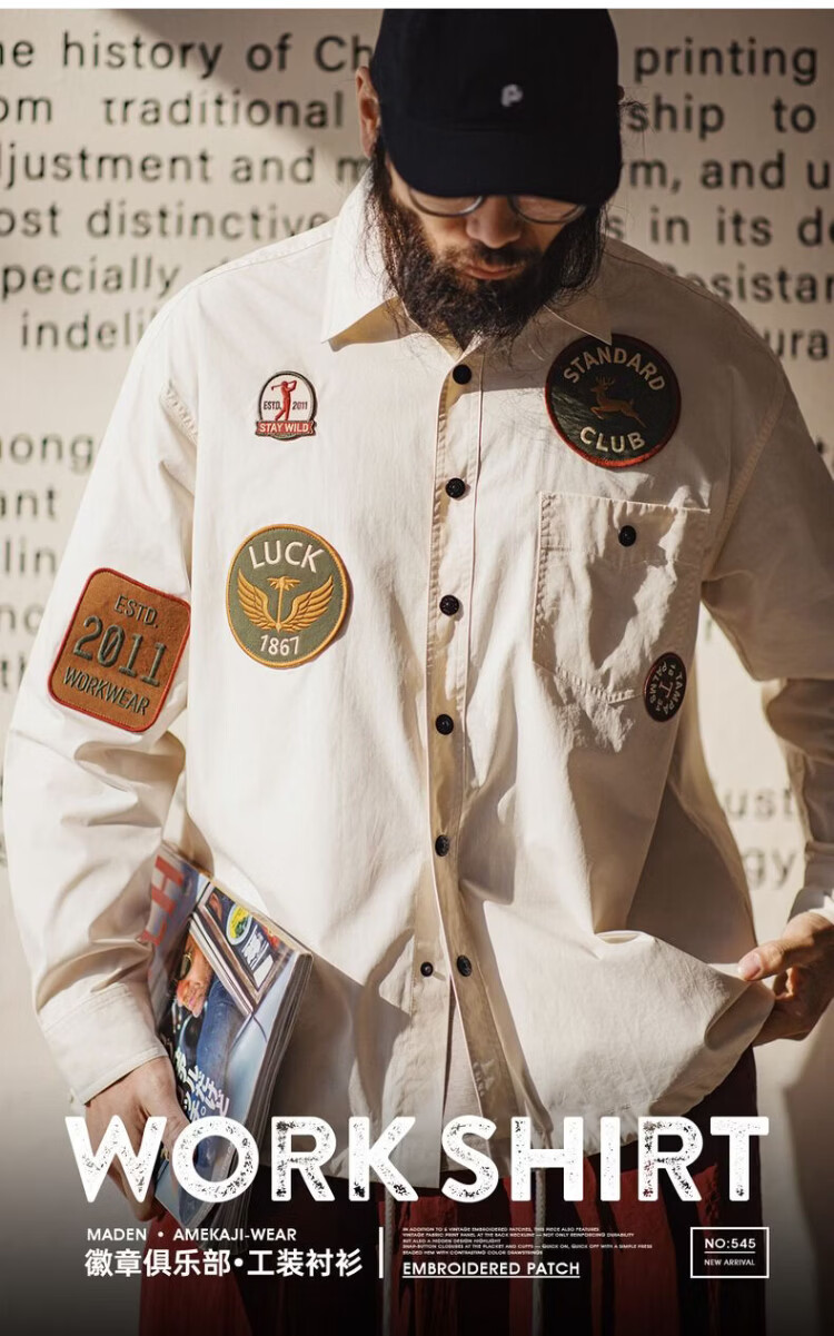 Madden Workwear American Chapter Embroidered Long Sleeve Shirt Jacket Thin White Pocket Splicing Shirt Jacket Men's Spring Beige Loose Too Large 2XL