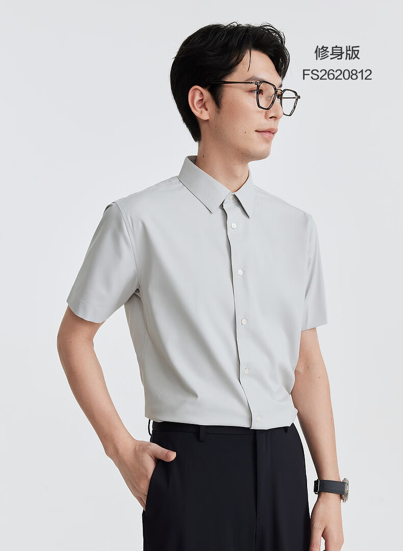 Jiumuwang shopping mall same style dry and skin-friendly shirt men's 26 spring and summer new smart business versatile top slim version + dawn gray + FS2620812 40 (175/92A)