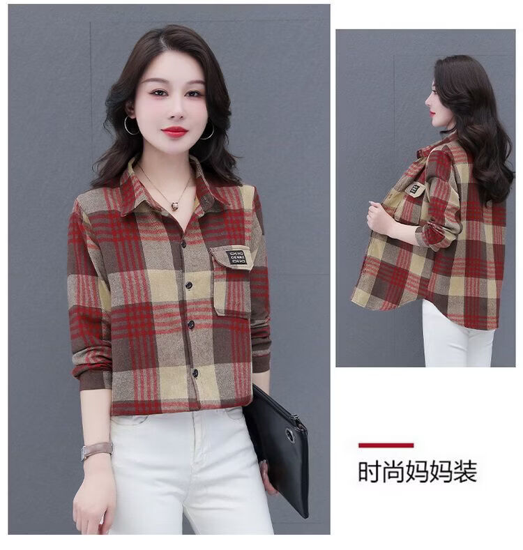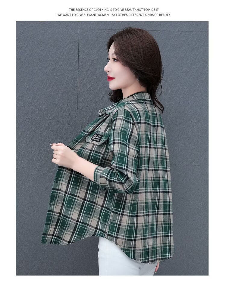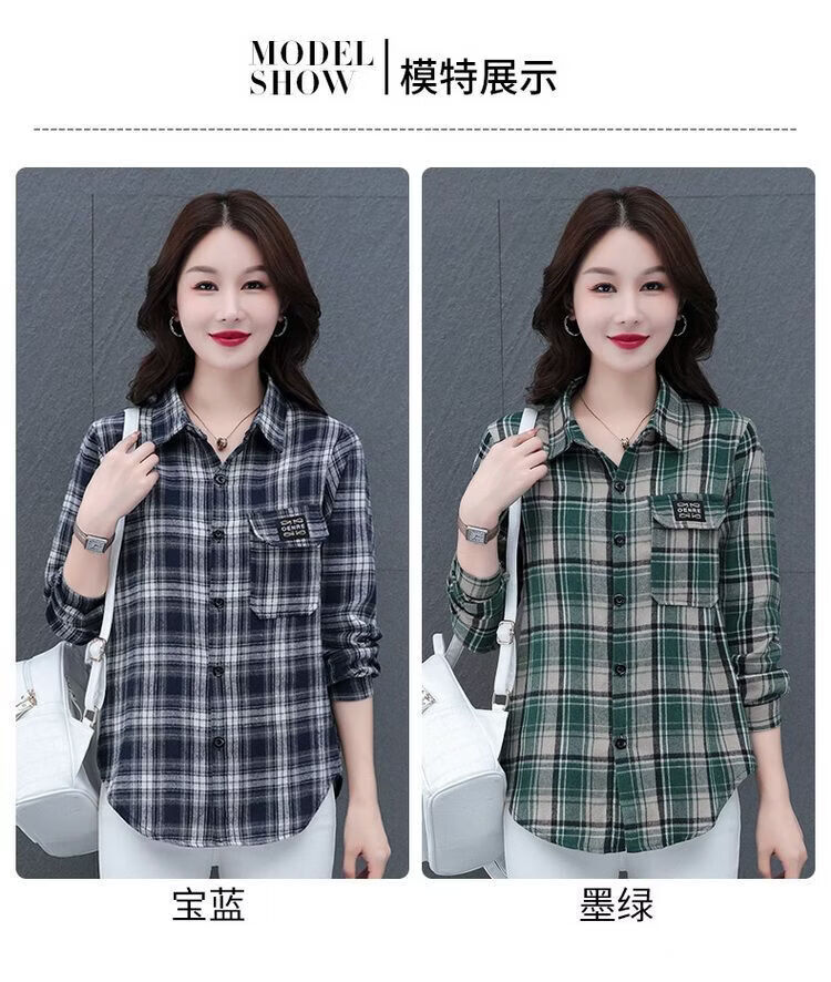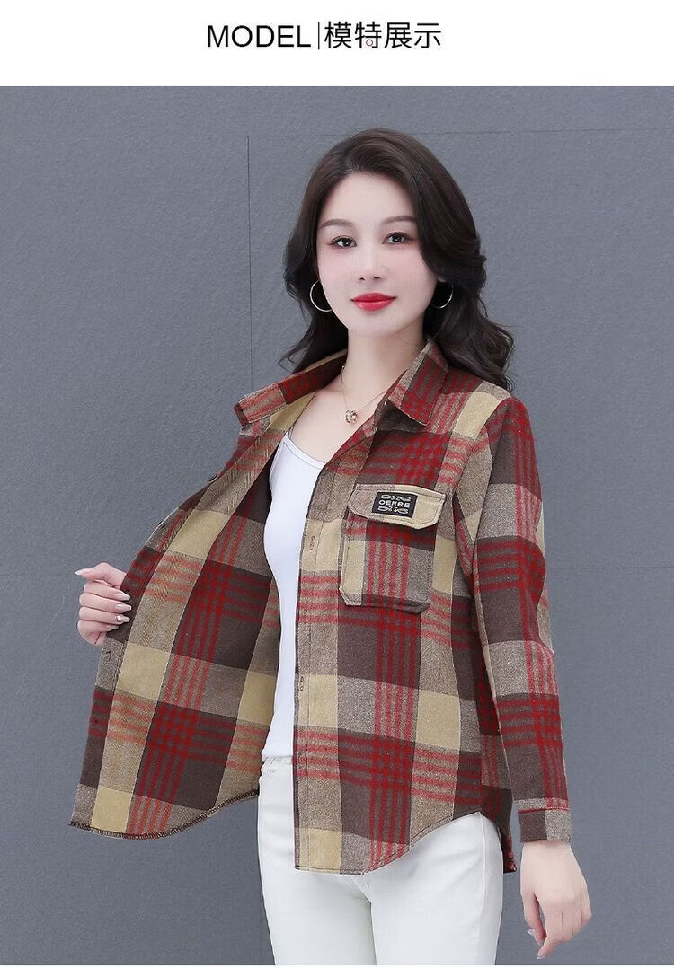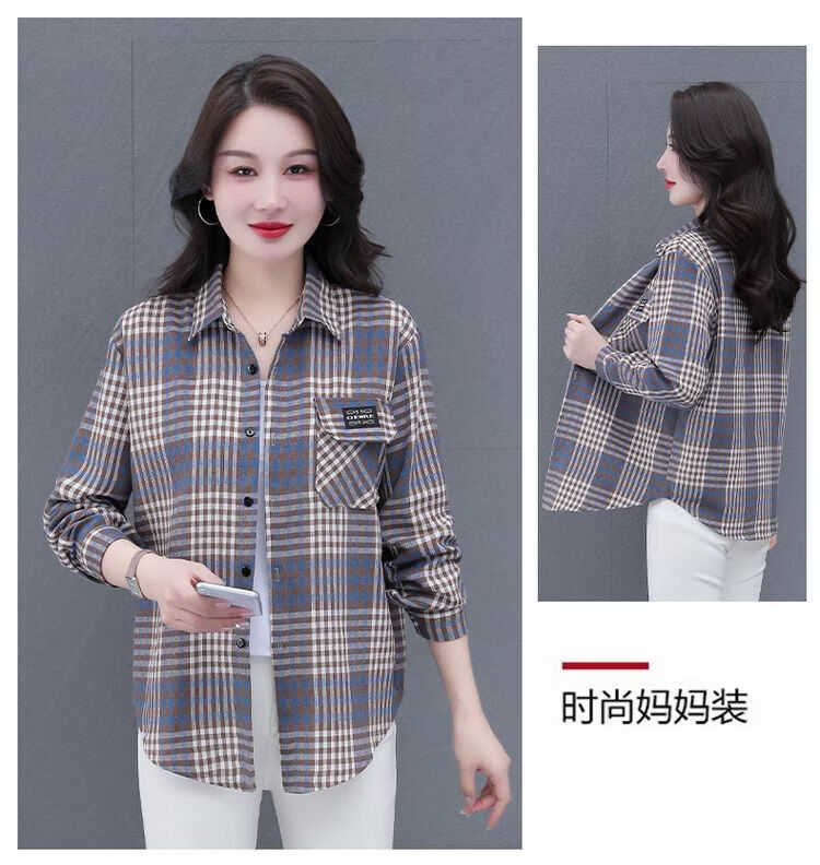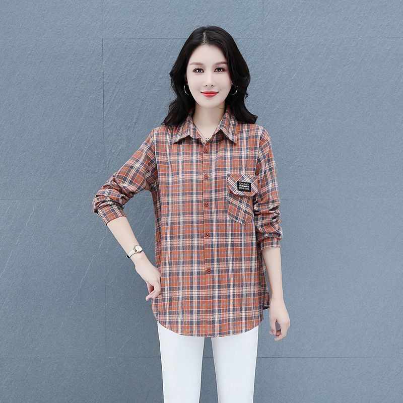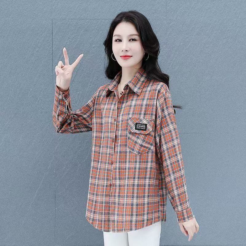 ROMON cotton spring and autumn clothing for middle-aged and elderly mother-in-law tops plaid shirt mother pure cotton shirt women's long sleeve women's loose large size pure cotton purple plaid XL recommended 95-110Jin Jin equals 0.5 kg