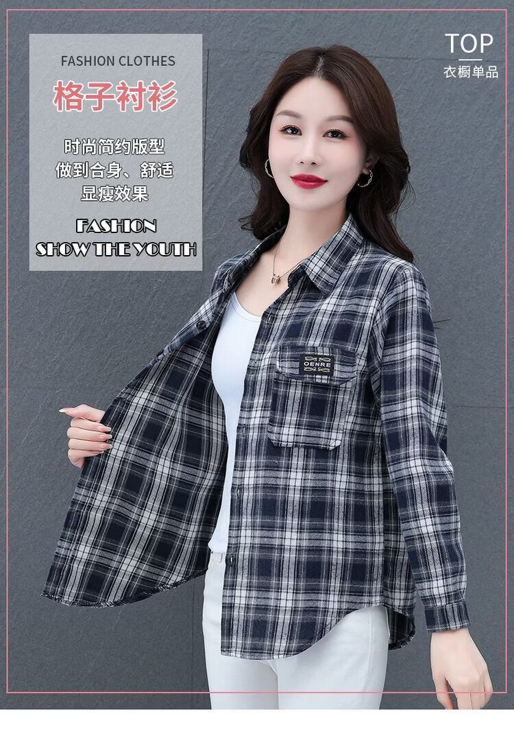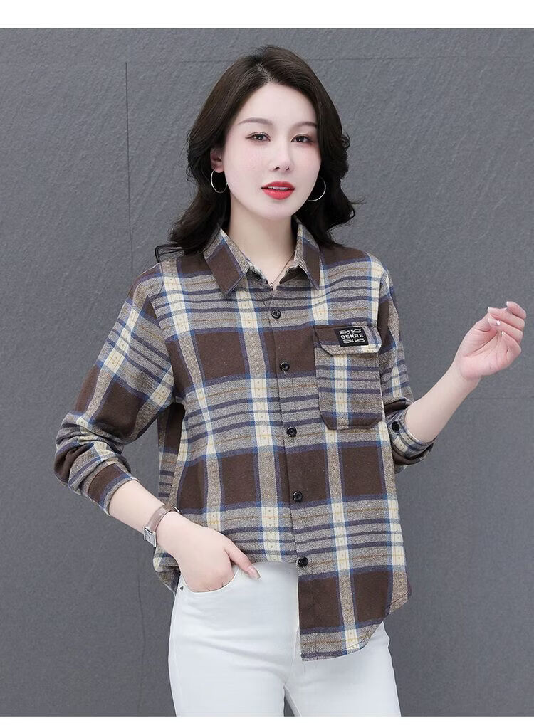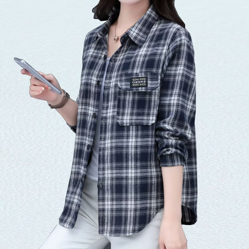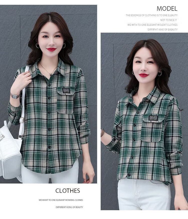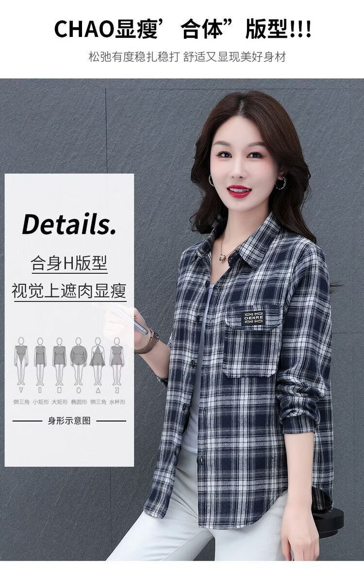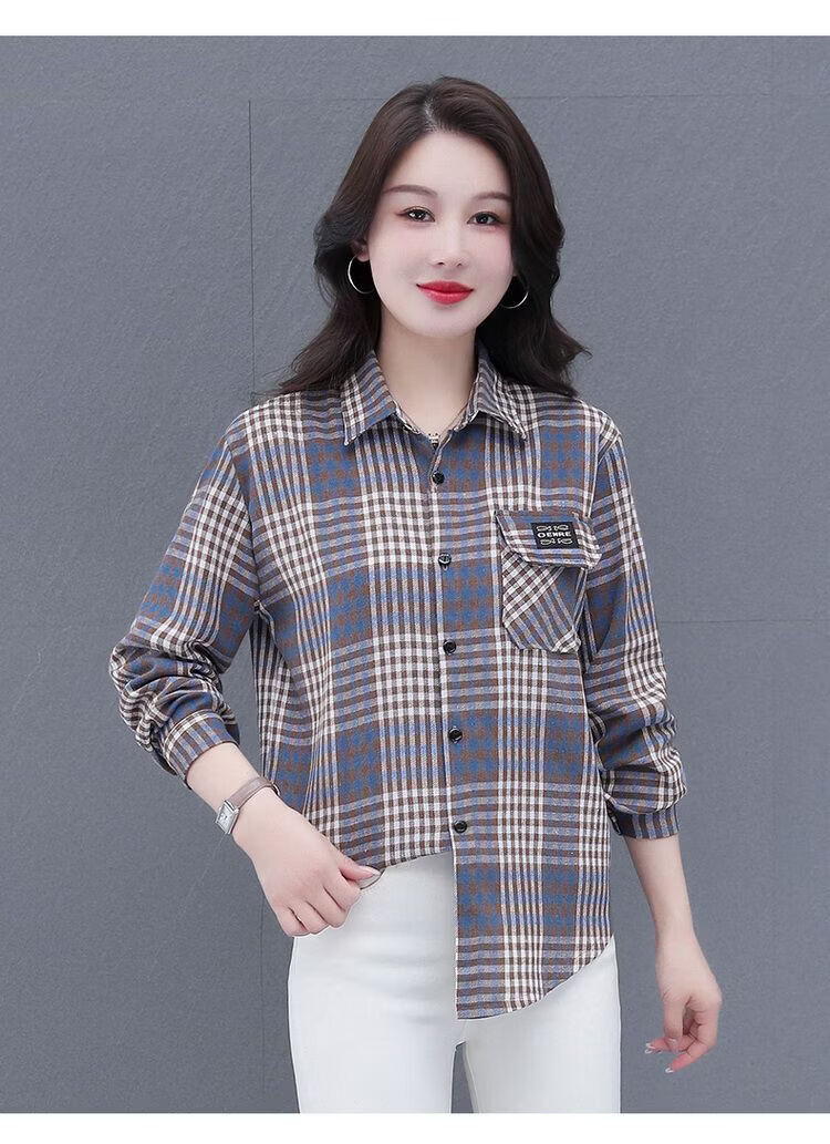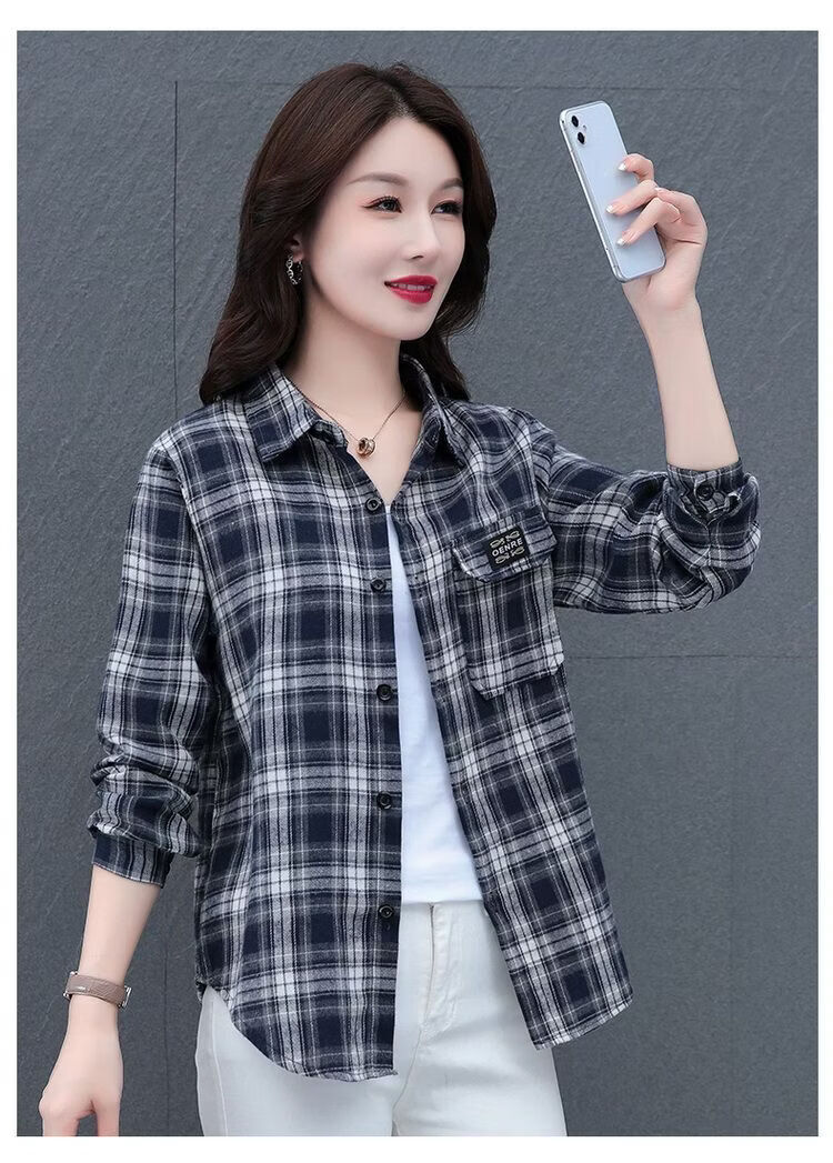 ROMON cotton spring and autumn clothing for middle-aged and elderly mother-in-law tops plaid shirt mother pure cotton shirt women's long sleeve women's loose large size pure cotton purple plaid XL recommended 95-110Jin Jin equals 0.5 kg