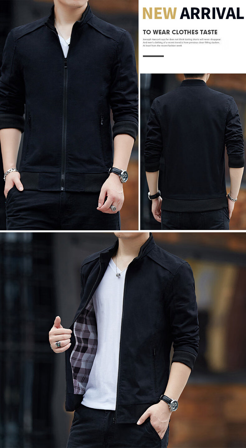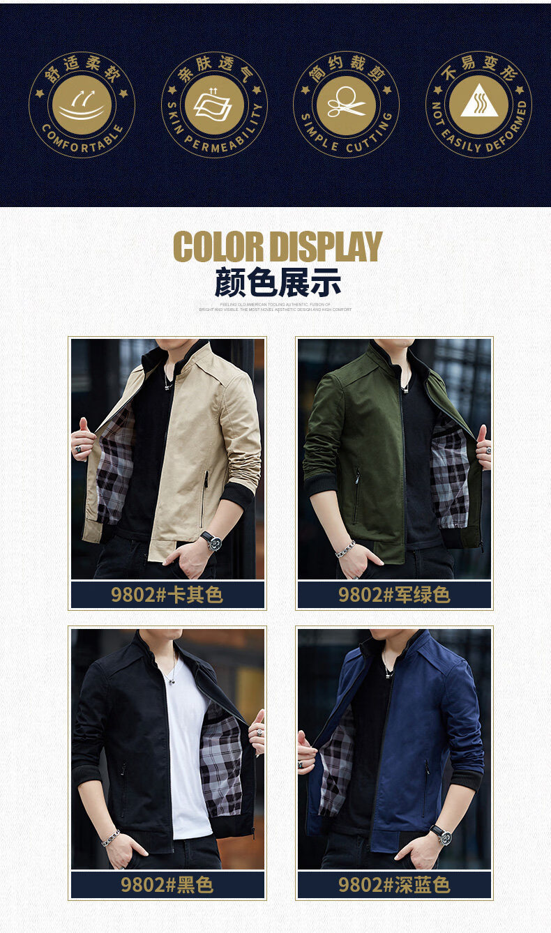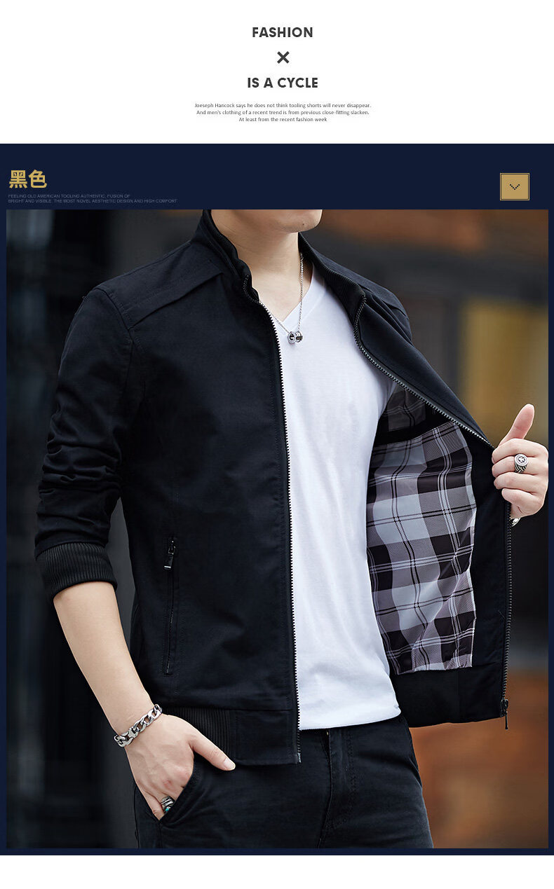 ROMON Men's Jacket Spring and Autumn Casual Trendy Denim Workwear Men's Jacket Autumn and Winter Cotton High-end Spring Top W1802 Black Spring and Autumn XL (Recommended 121-139Jin Jin equals 0.5kg)