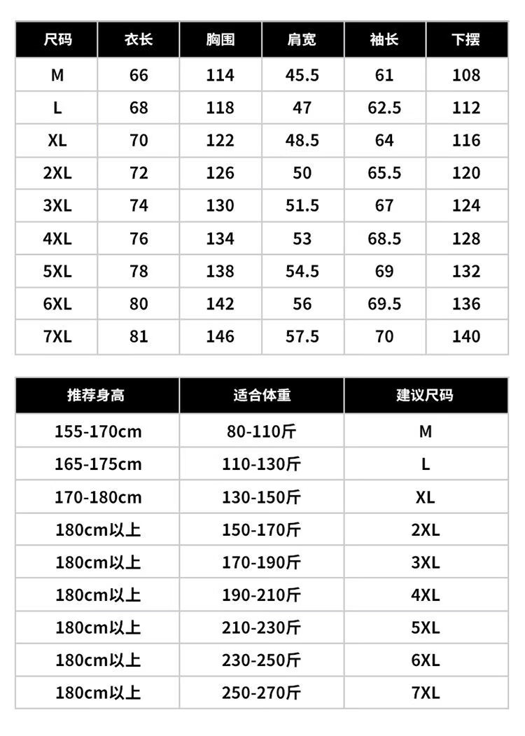 China (cm) 165 / 88-90 170 / 96-98 175 / 108-110 180 / 118-122 185 / 126-130