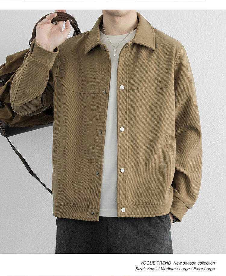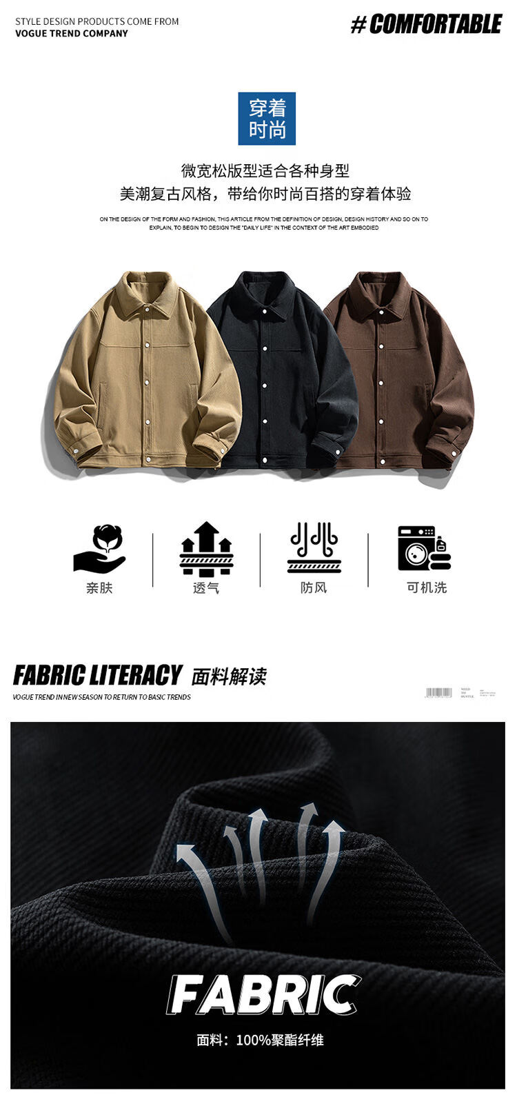 Romon jacket men's spring and autumn new large size lapel handsome work clothes high-end loose casual men's jacket 6685 Khaki XL about 130-150 Jin Jin equals 0.5 kg
