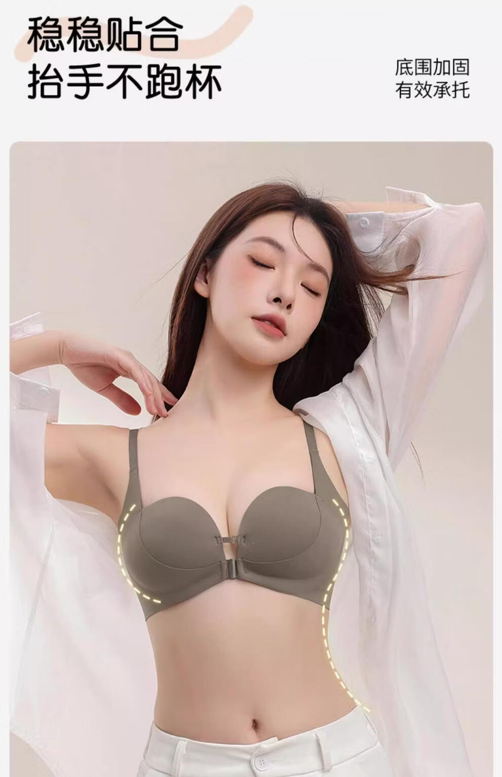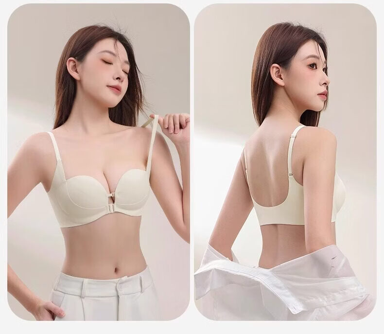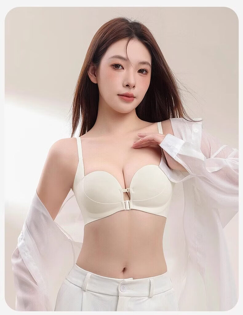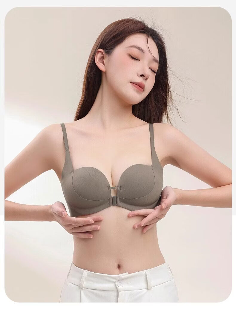 MiiOW front-button underwear for women with small breasts, large breasts, anti-sagging, seamless back bra, 2026 new style, brown + brown S (recommended 32/70AB 60--80Jin Jin is equal to 0.5 kg)
