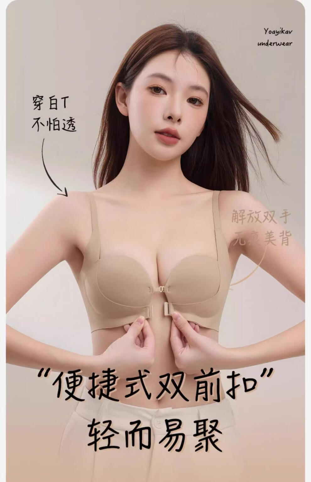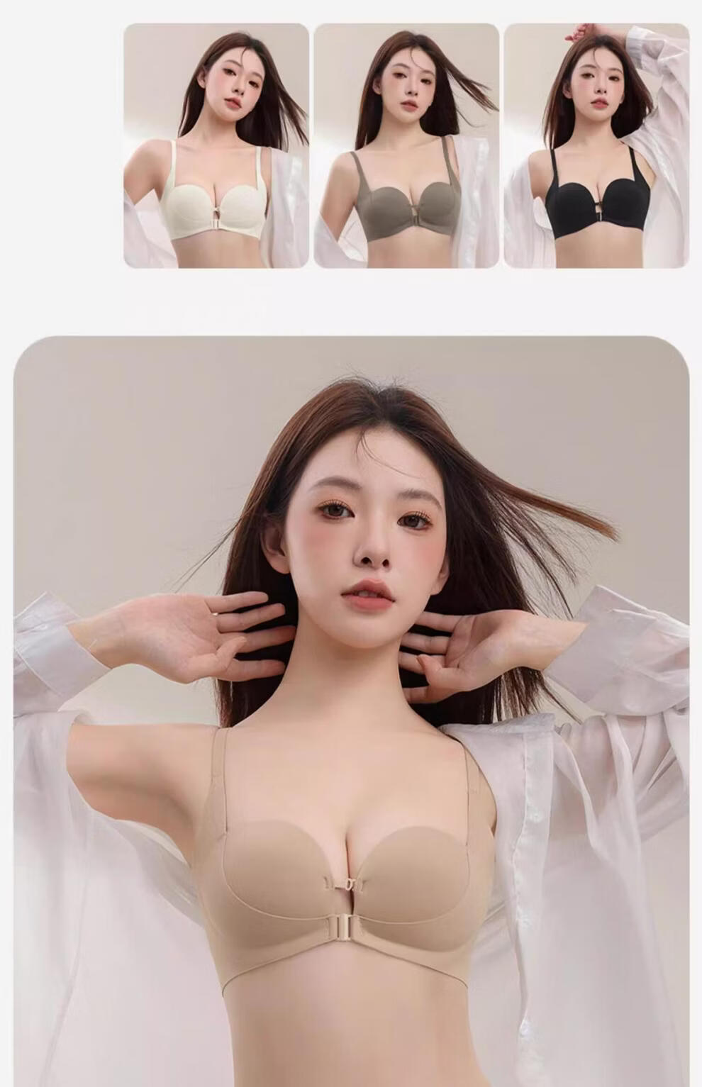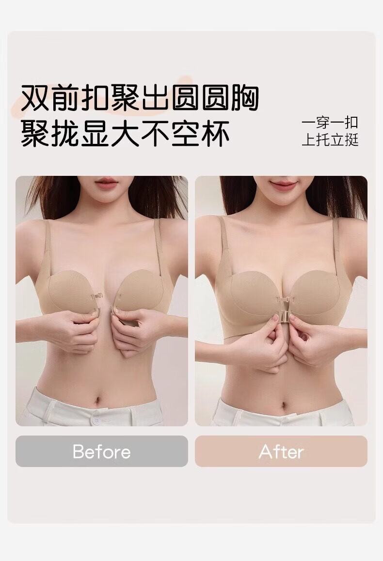 MiiOW front-button underwear for women with small breasts, large breasts, anti-sagging, seamless back bra, 2026 new style, brown + brown S (recommended 32/70AB 60--80Jin Jin is equal to 0.5 kg)
