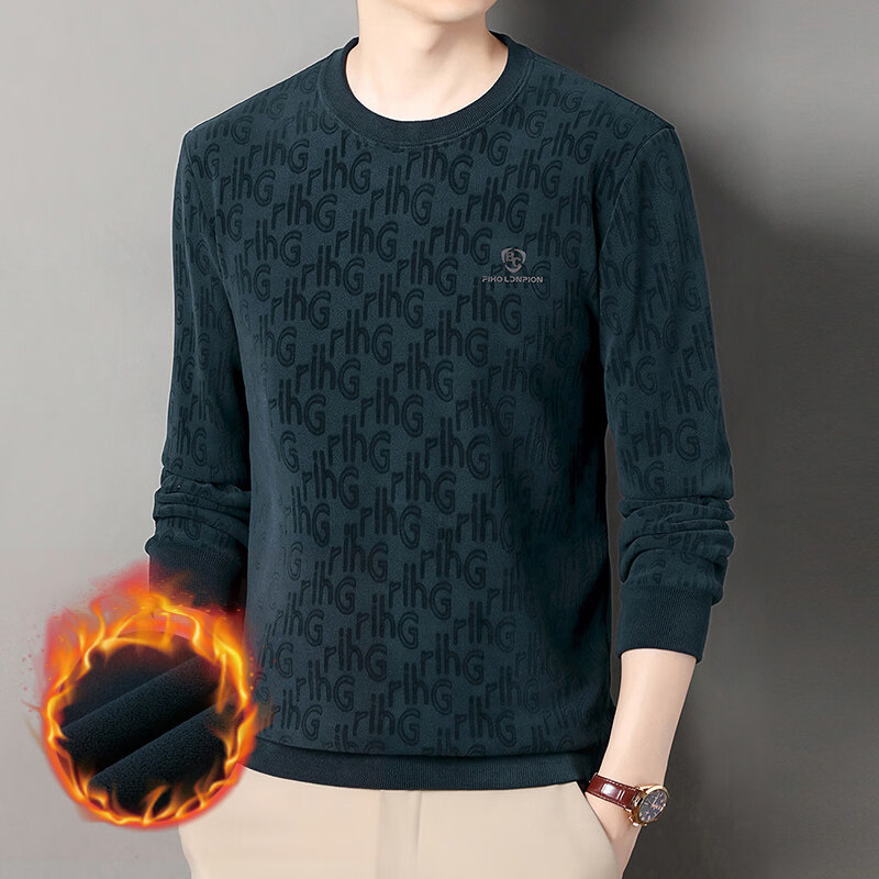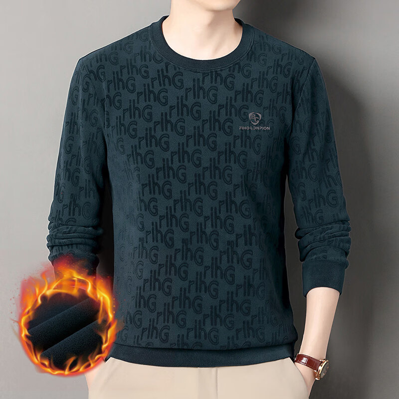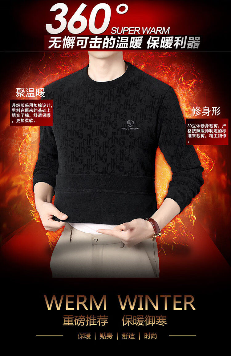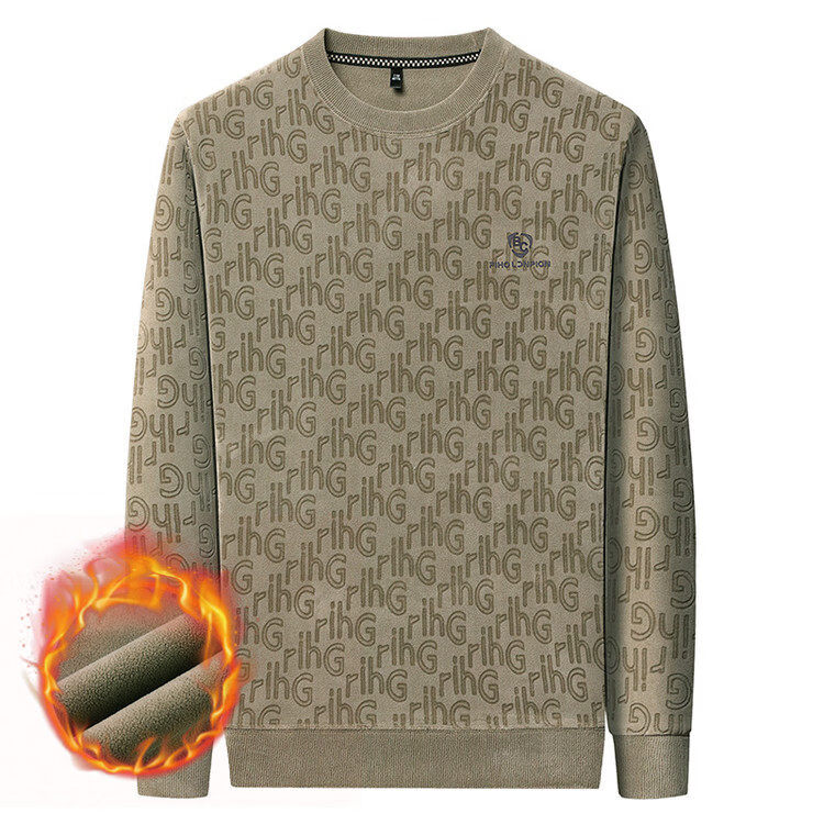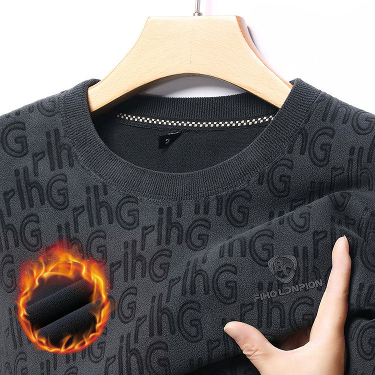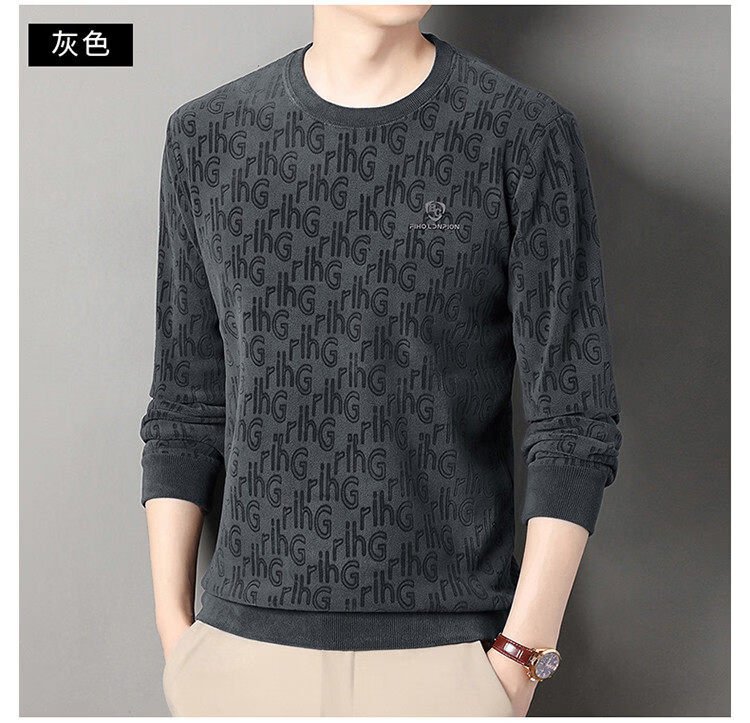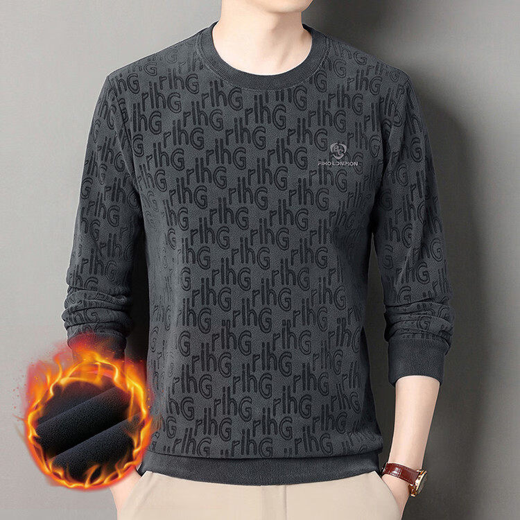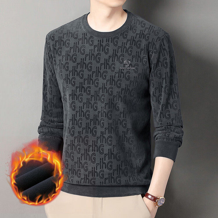 Dances with Wolves (DANCING WOLVES) fleece men's sweatshirt winter round neck long-sleeved warm thickened loose bottoming shirt gray L 58-4x-130