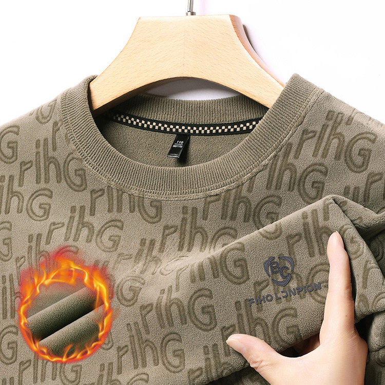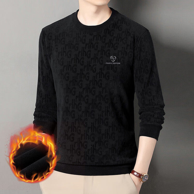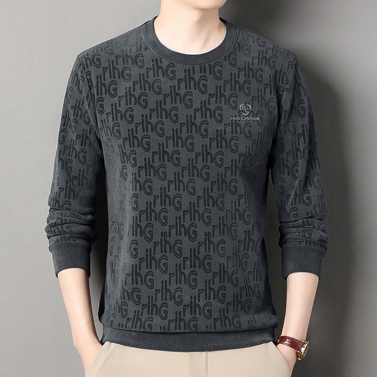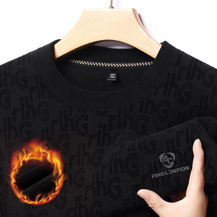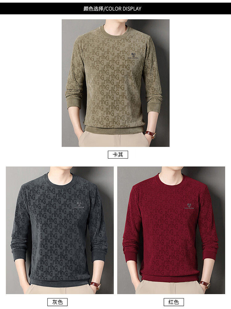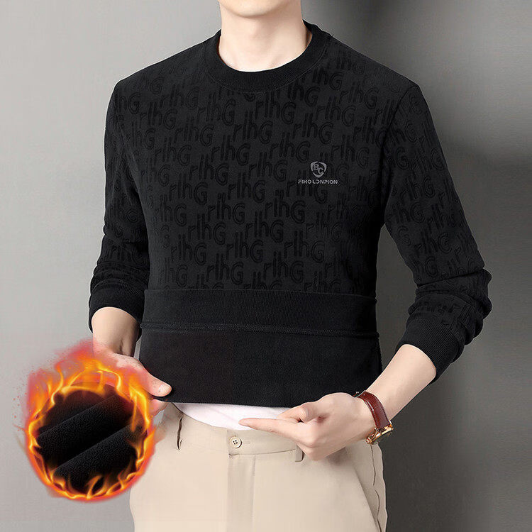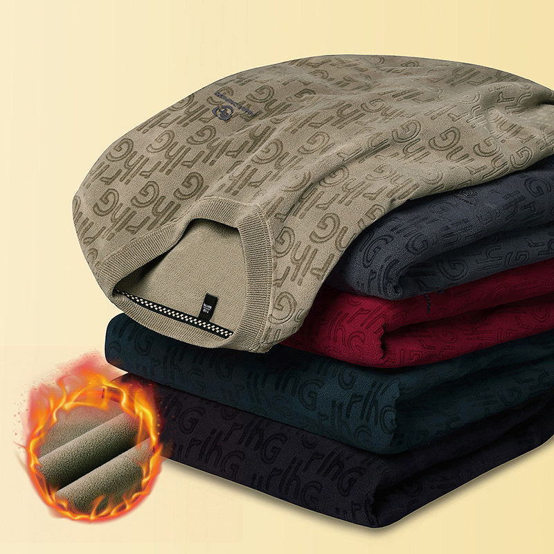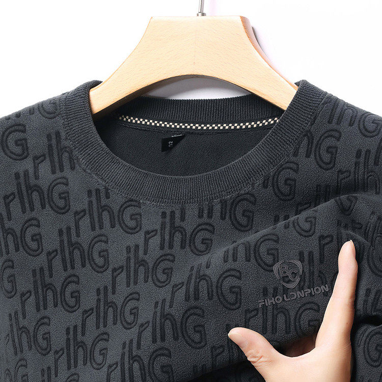 Dances with Wolves (DANCING WOLVES) fleece men's sweatshirt winter round neck long-sleeved warm thickened loose bottoming shirt gray L 58-4x-130