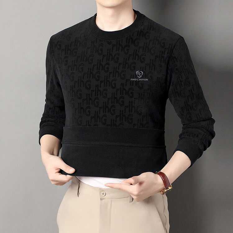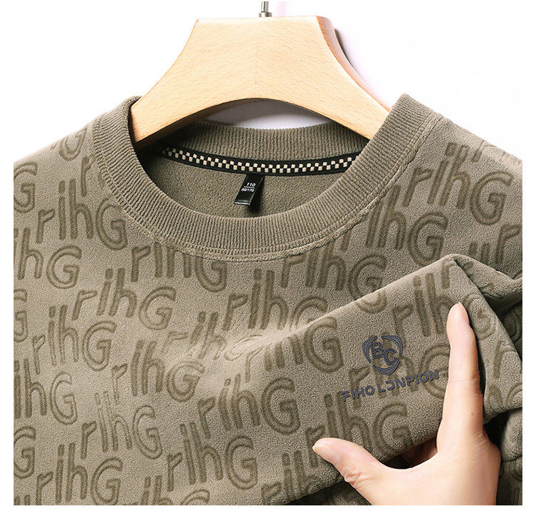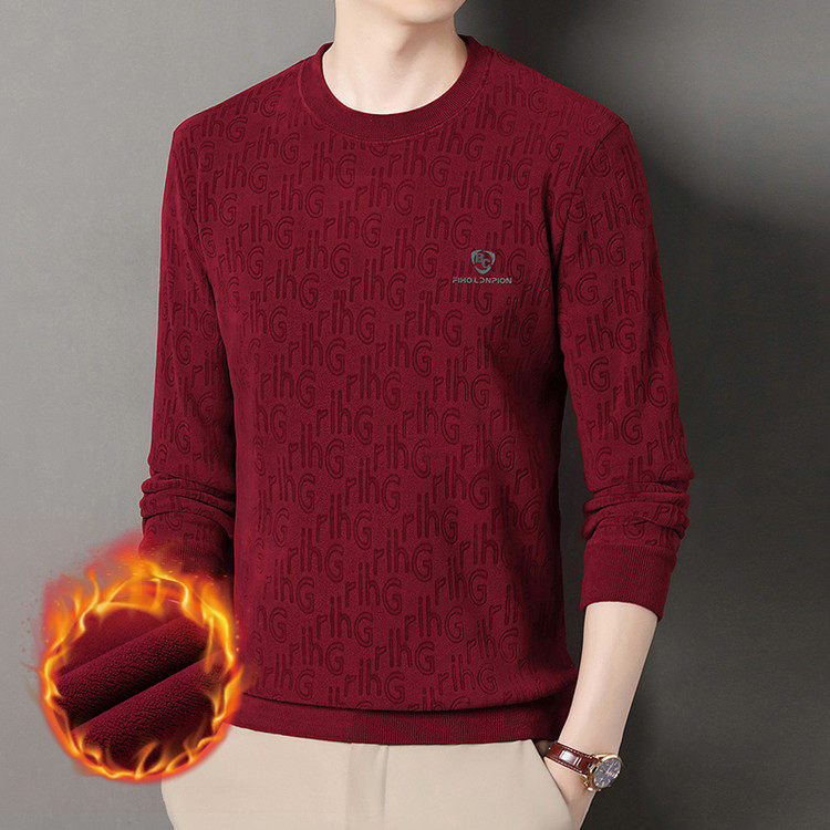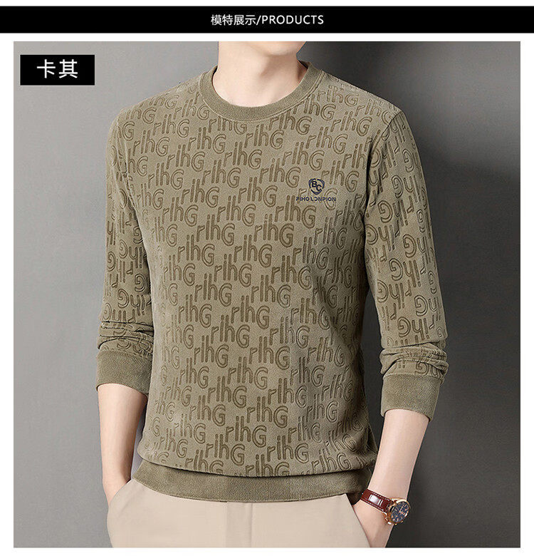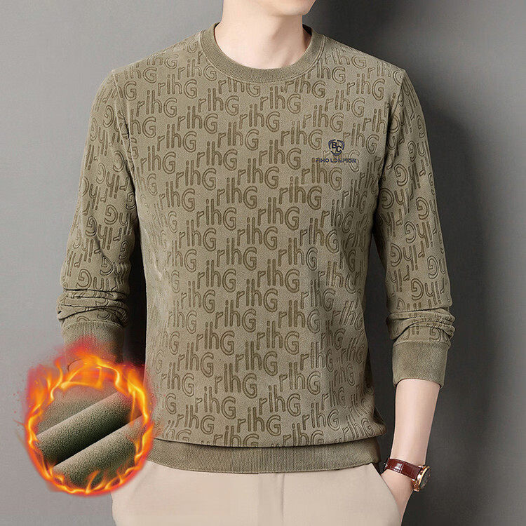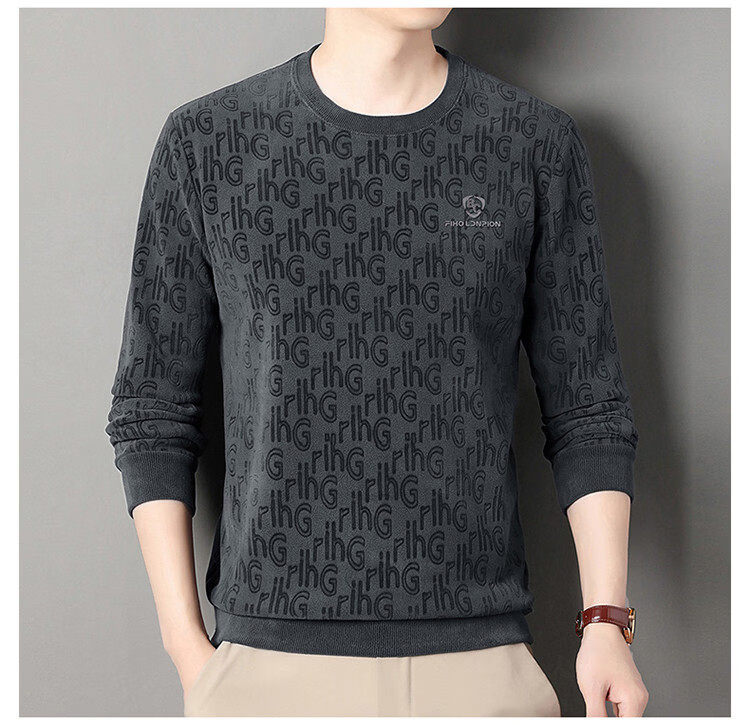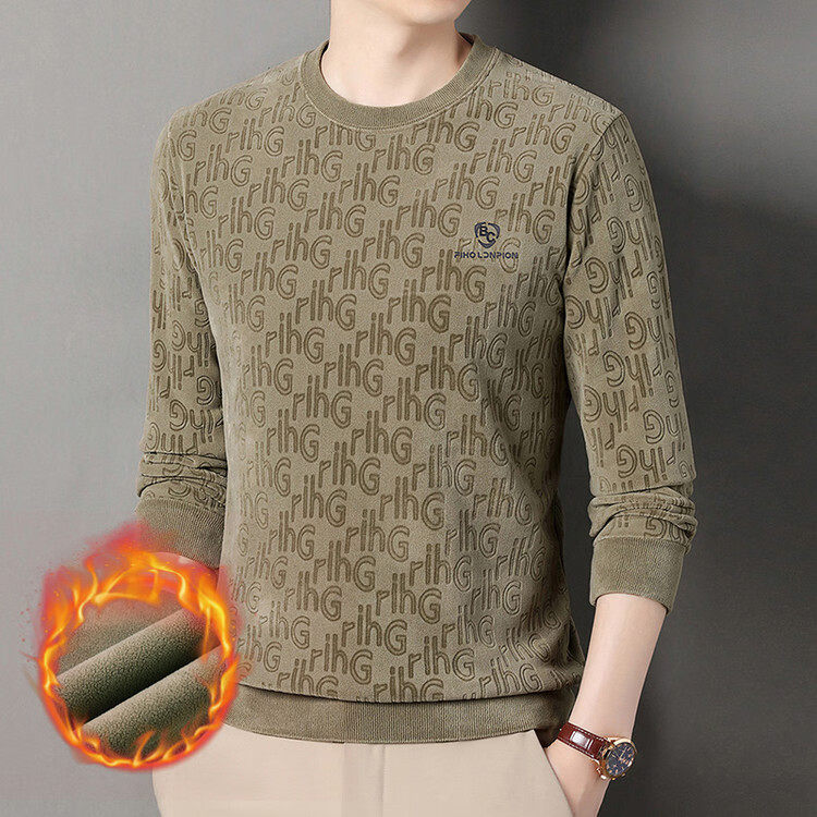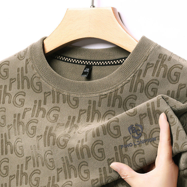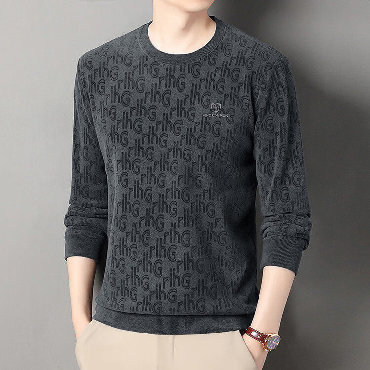 Dances with Wolves (DANCING WOLVES) fleece men's sweatshirt winter round neck long-sleeved warm thickened loose bottoming shirt gray L 58-4x-130