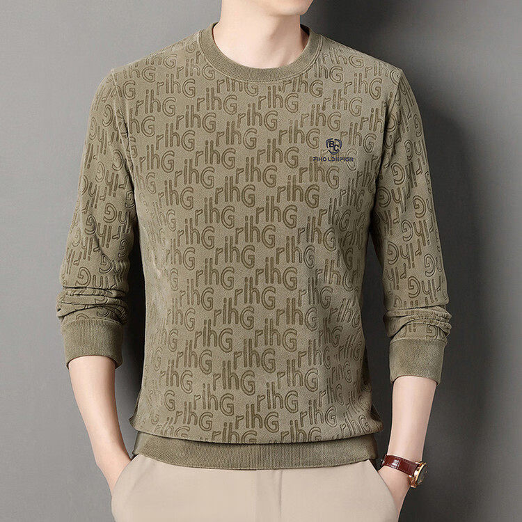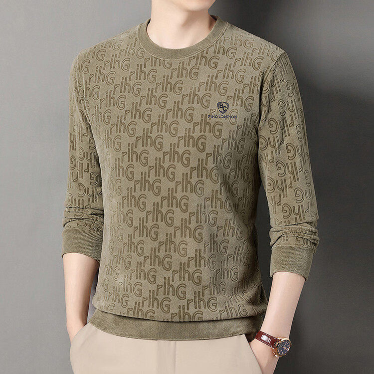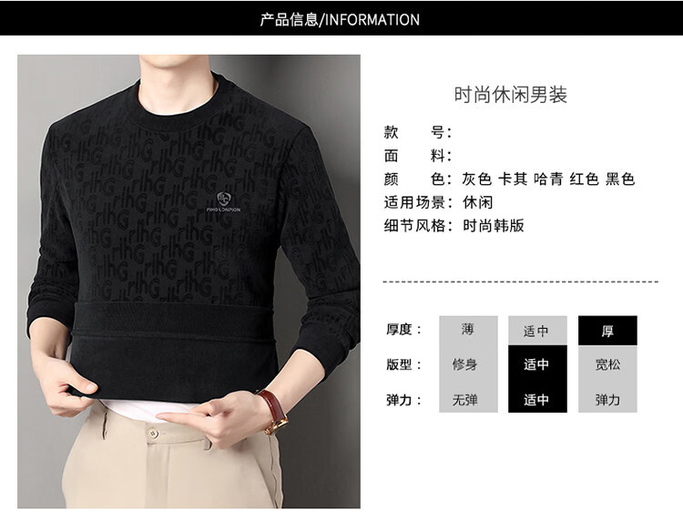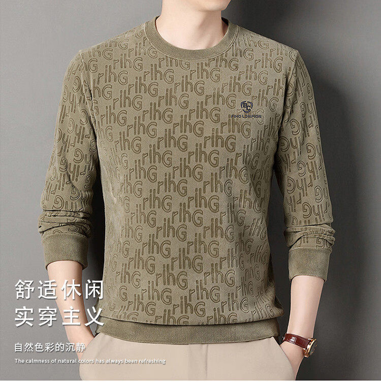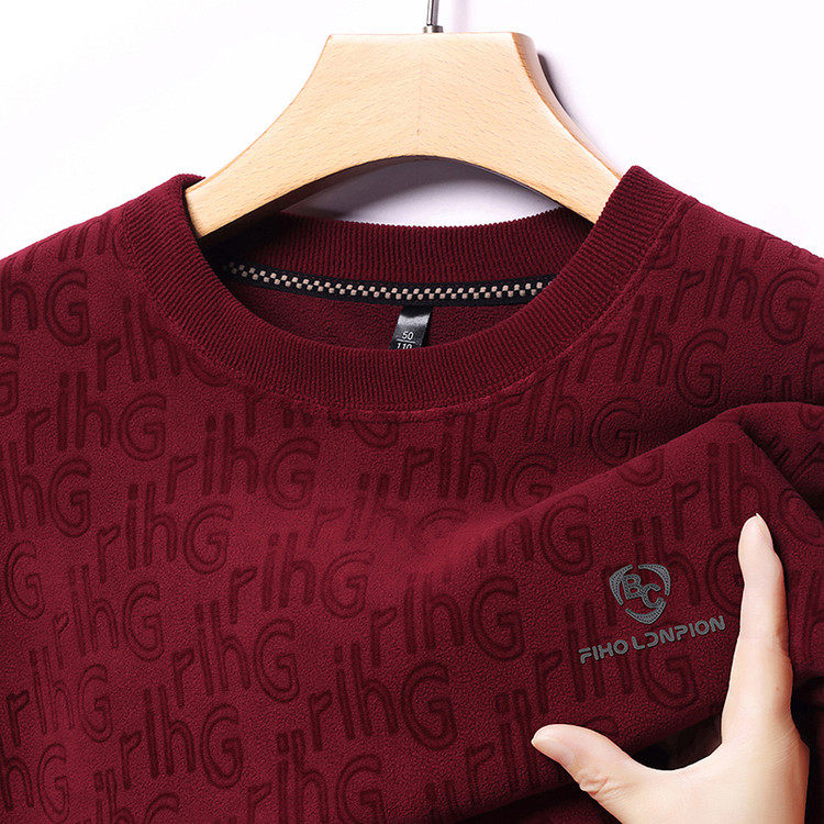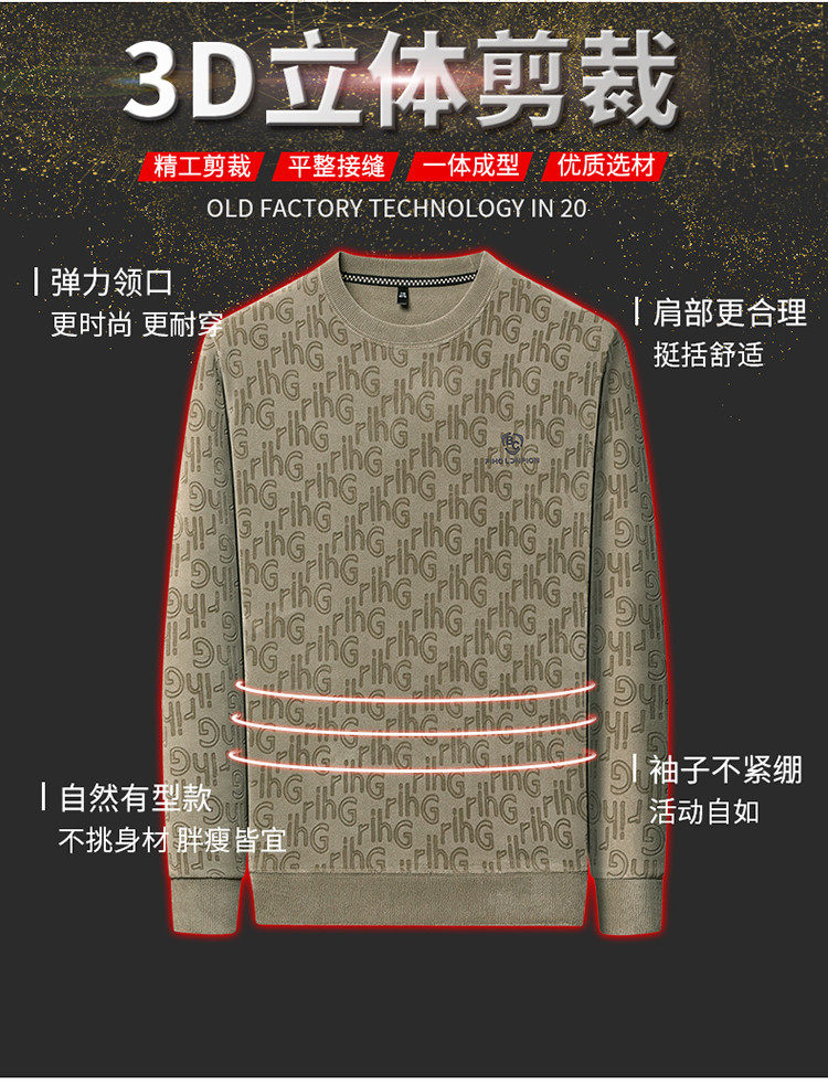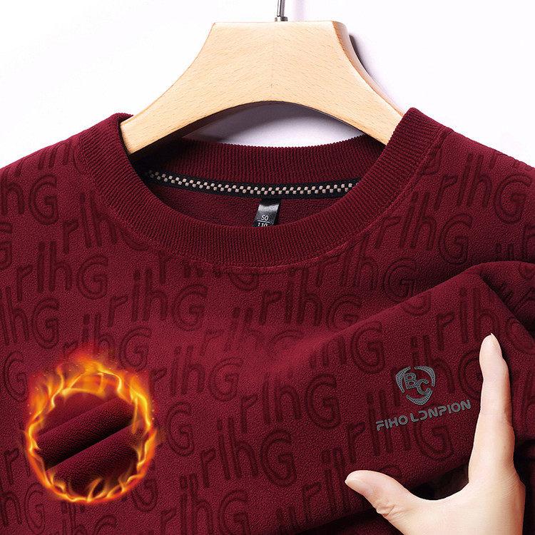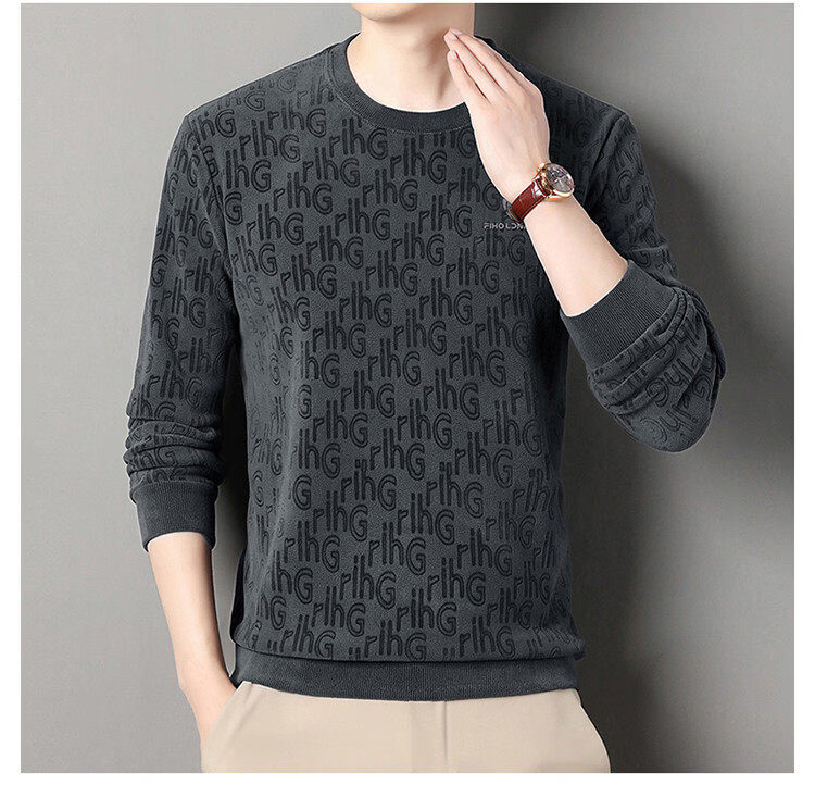 Dances with Wolves (DANCING WOLVES) fleece men's sweatshirt winter round neck long-sleeved warm thickened loose bottoming shirt gray L 58-4x-130
