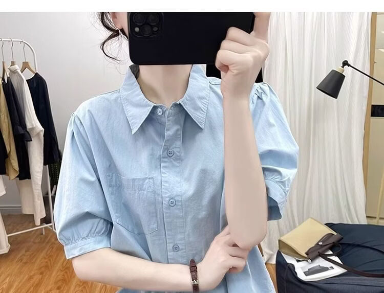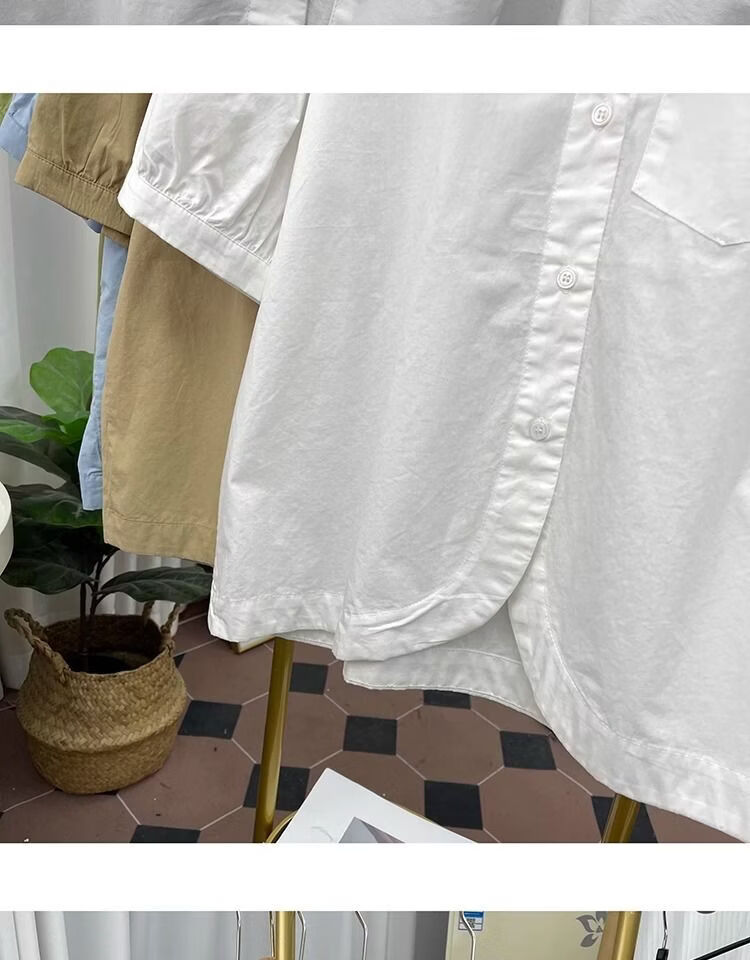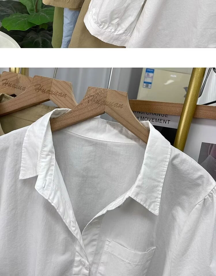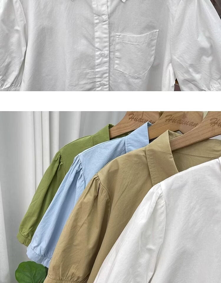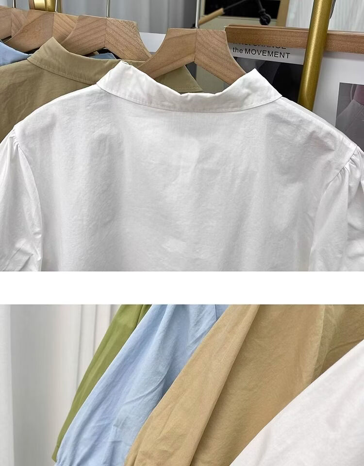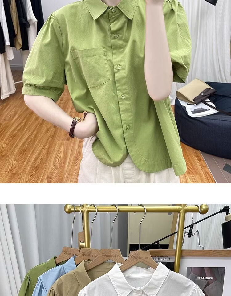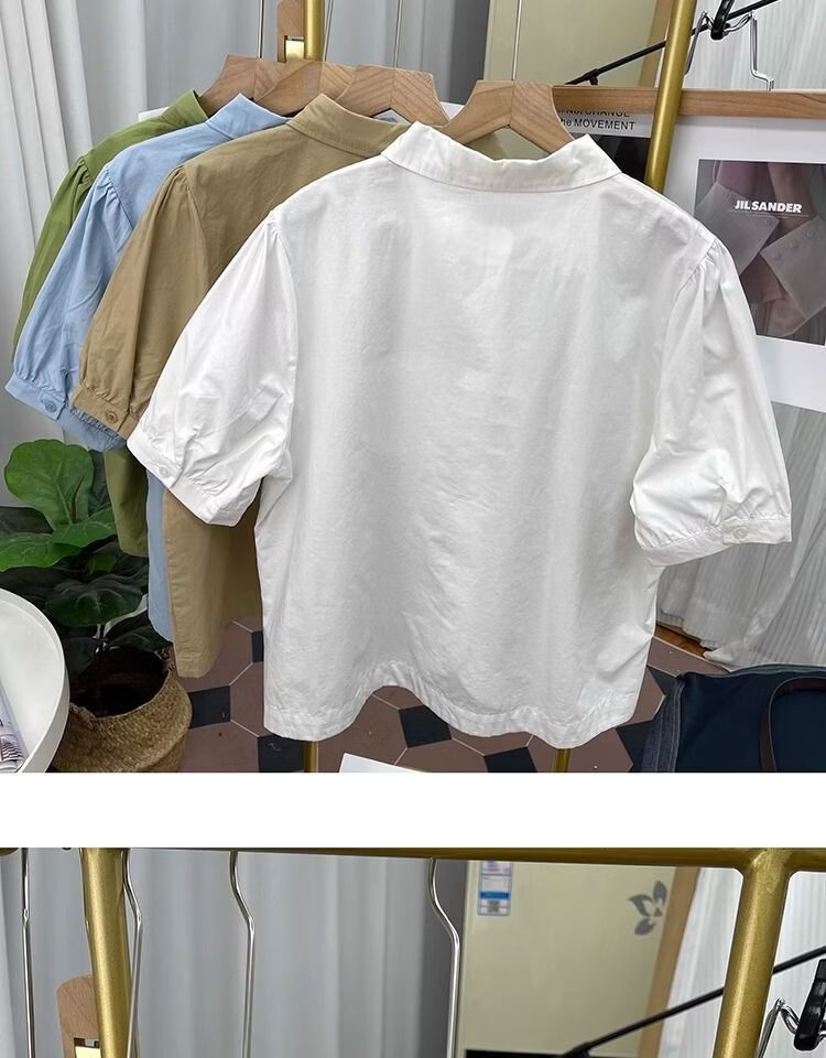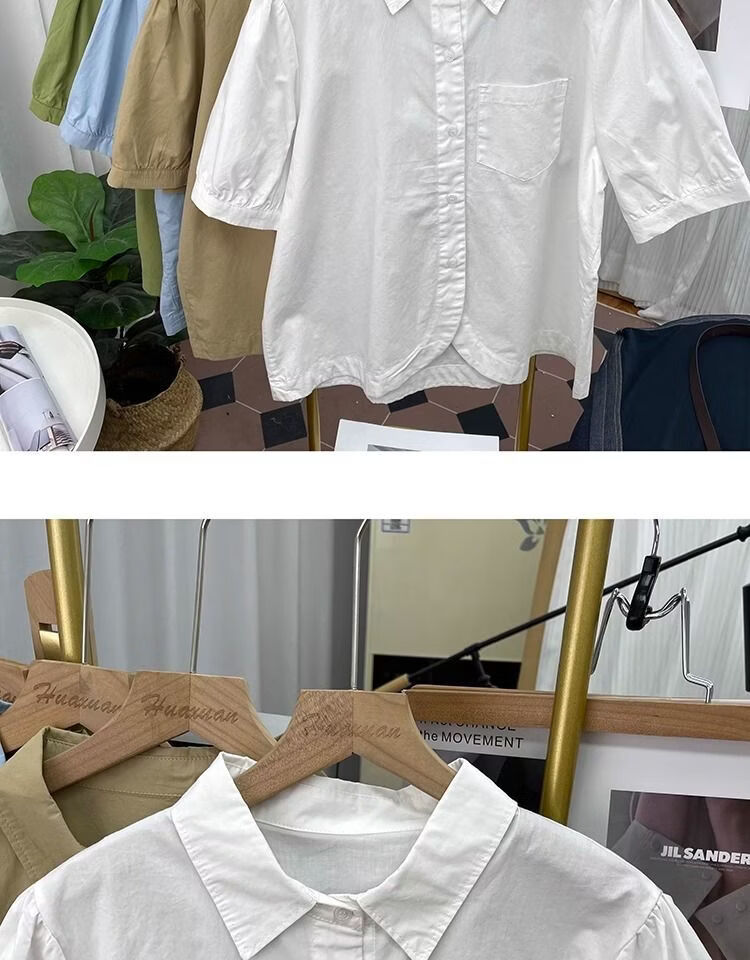 Lingyue Lantern Sleeve Pure Cotton Short-Sleeved Shirt Women's Summer 2026 New Lapel Design Irregular Age-Reducing Top Women's Khaki XL Recommended 115-130 Jin Jin equals 0.5 kg
