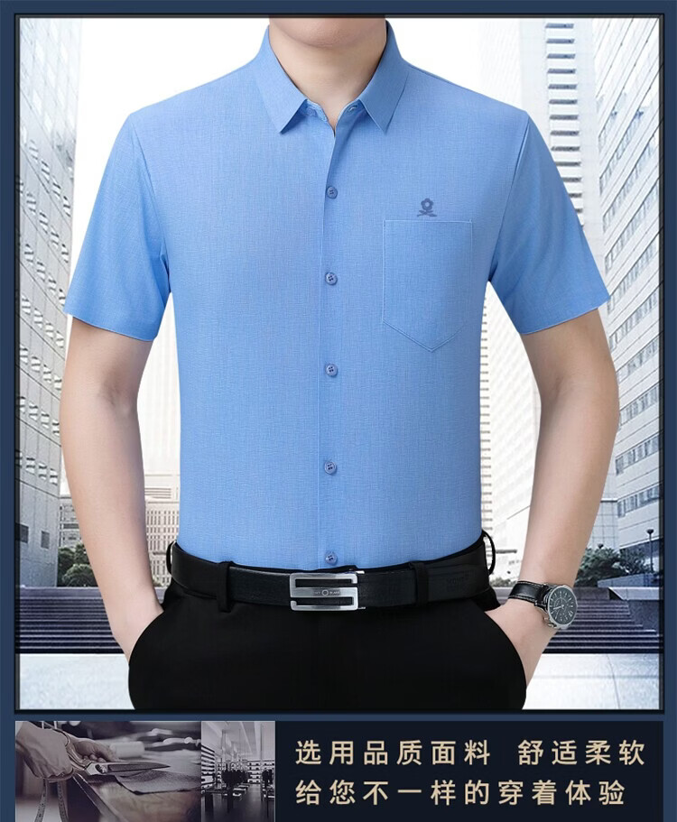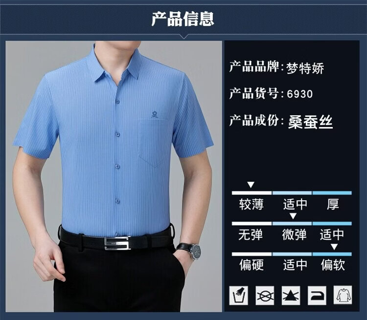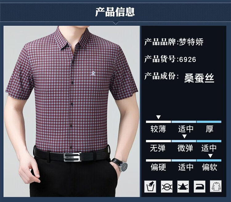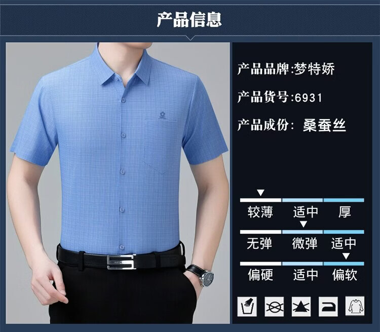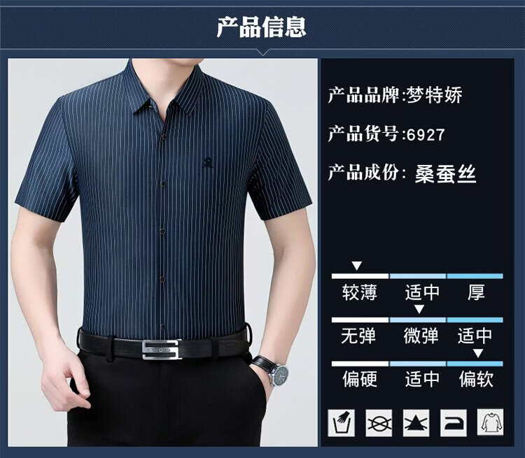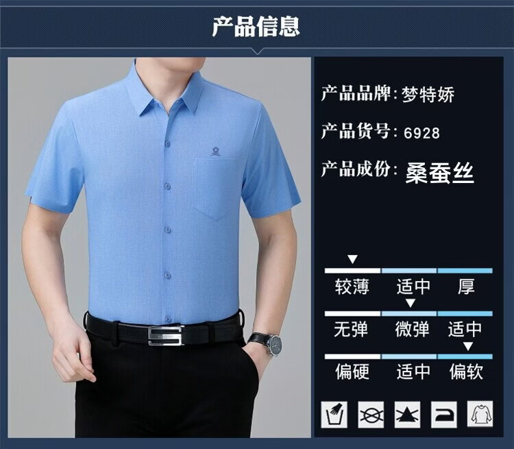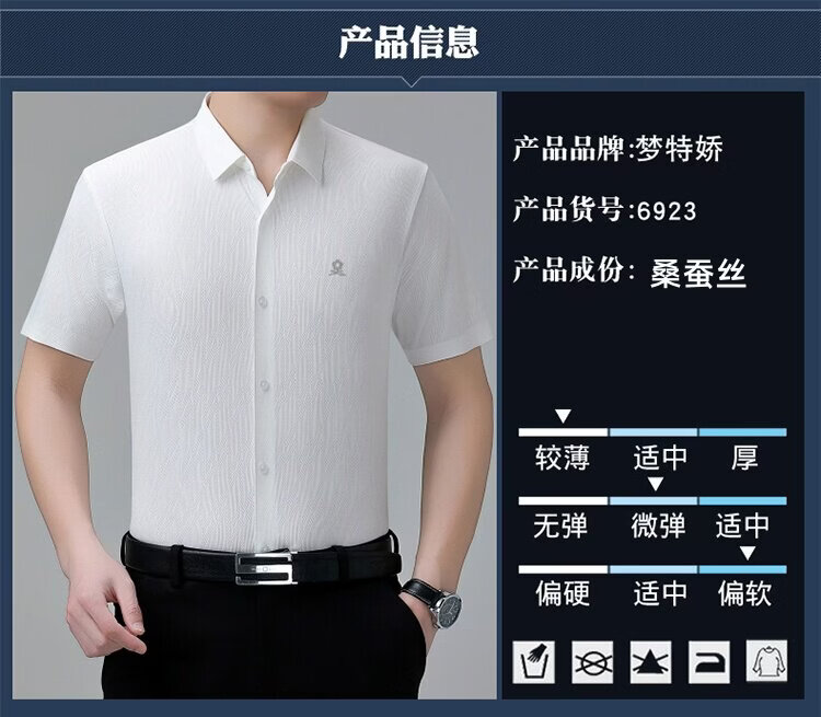 MONTAGUT French short-sleeved shirt men's summer mulberry silk middle-aged men's solid color non-iron silk shirt with pockets white (6923) L 175/92A (suitable for 136-155 Jin Jin equals 0.5 kg)