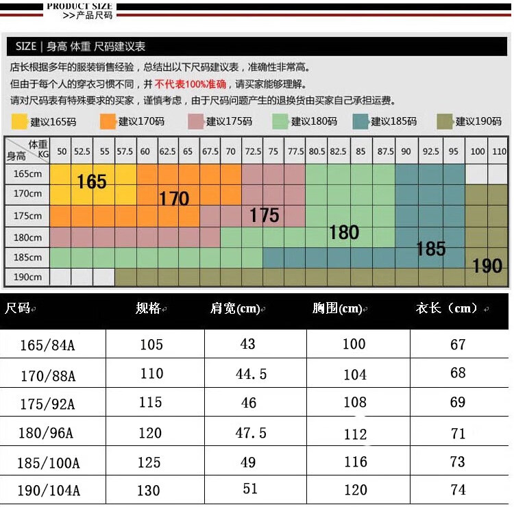 China (cm) 160-165/84-86 165-170 / 88-90 167-172 / 92-96 168-173 / 98-102 170-176 / 106-110