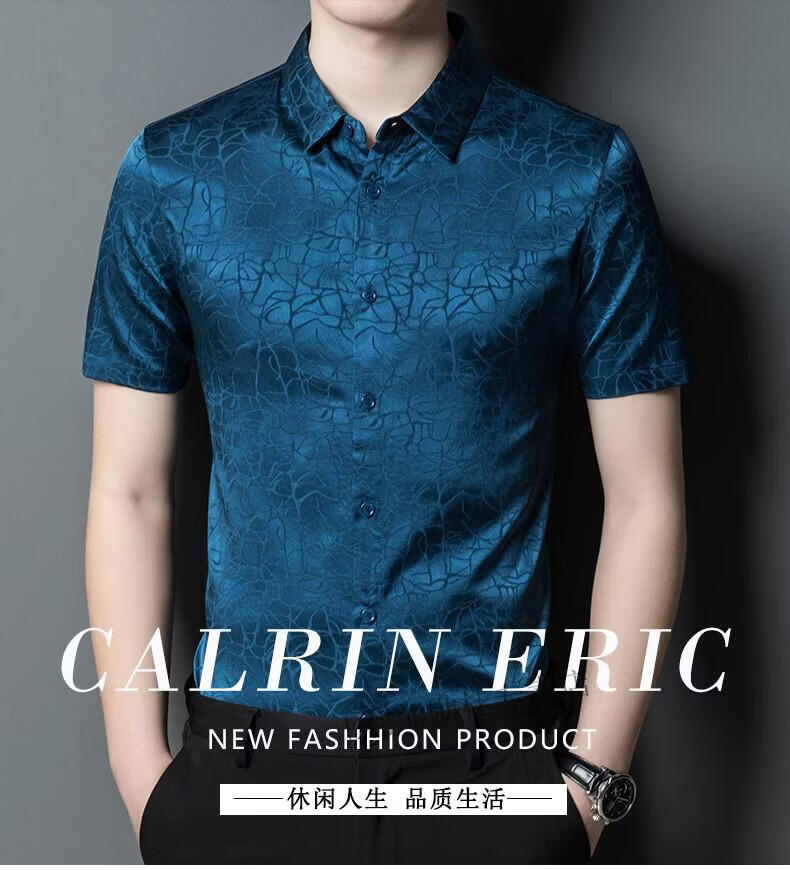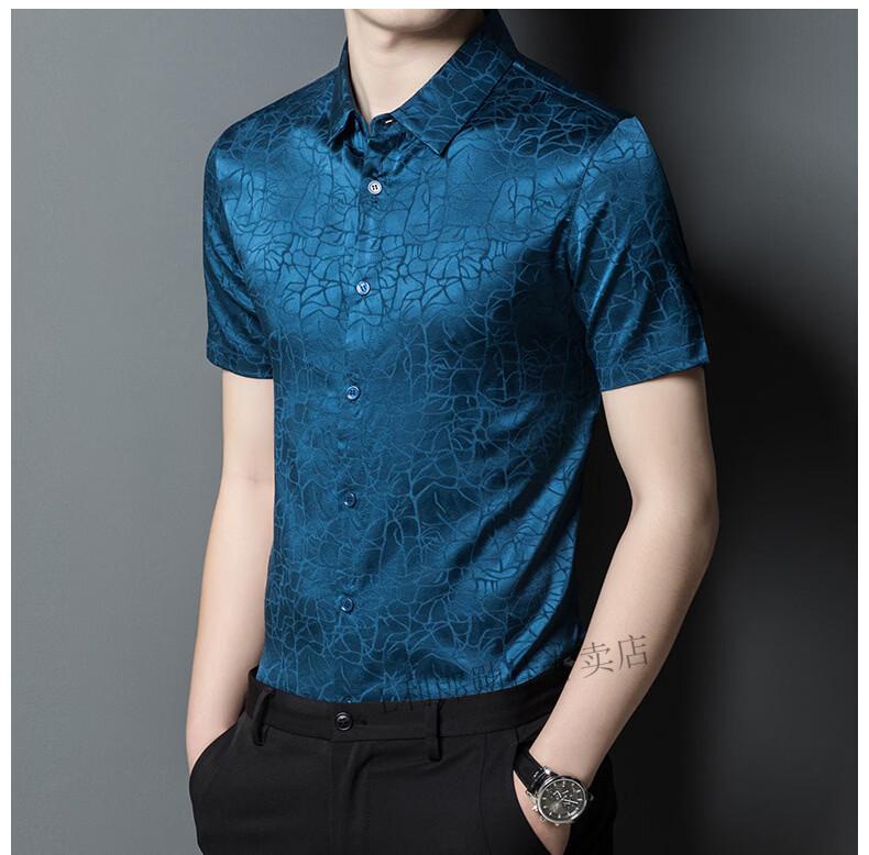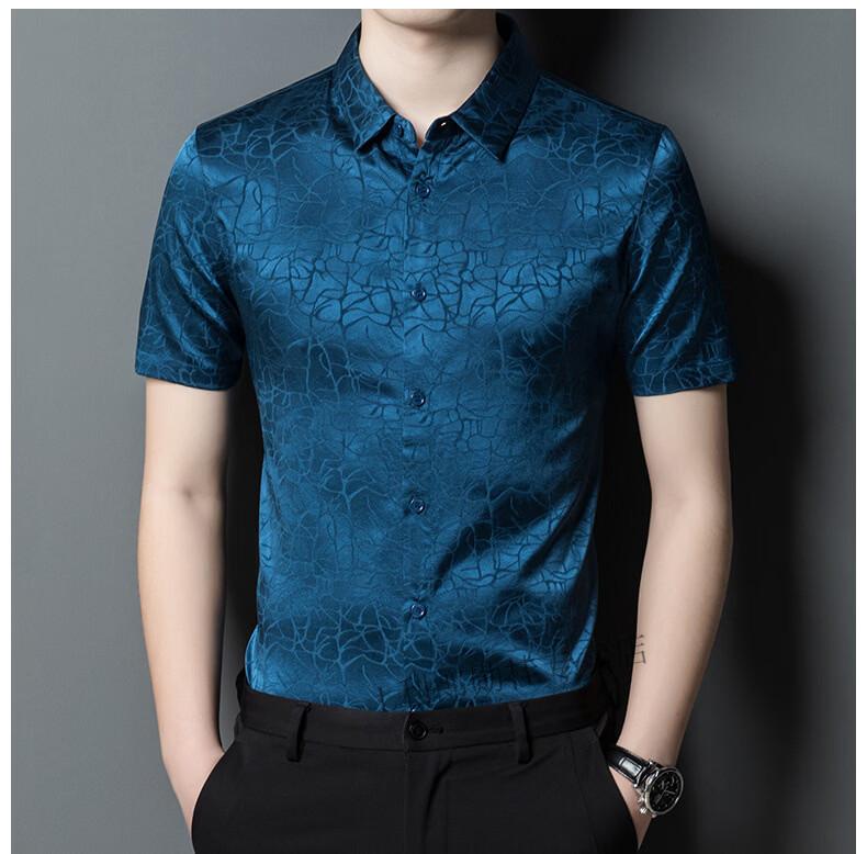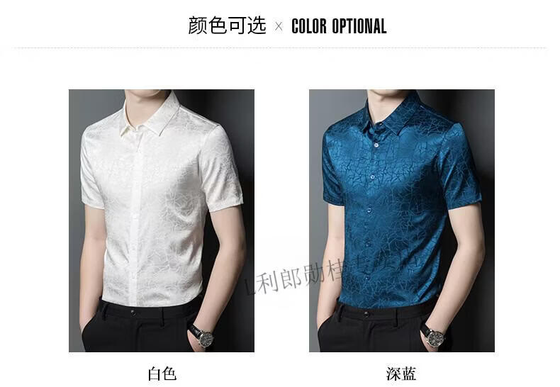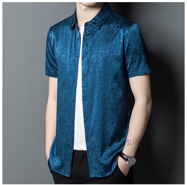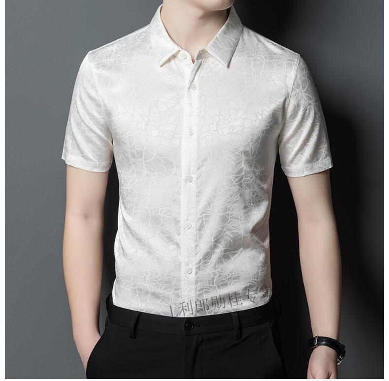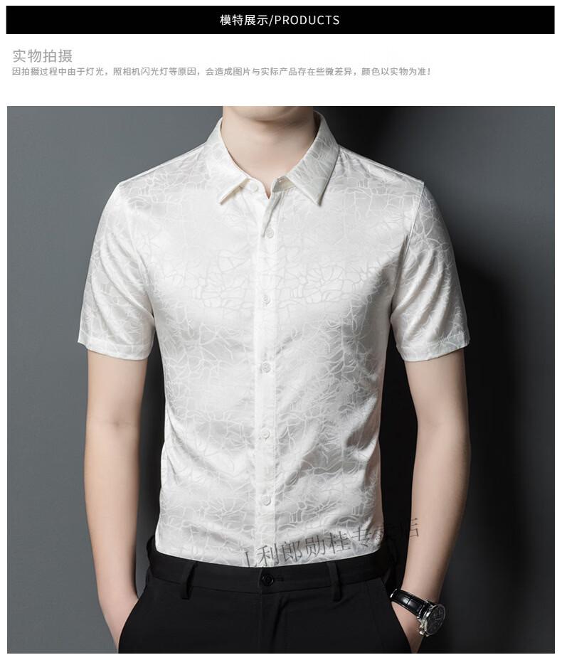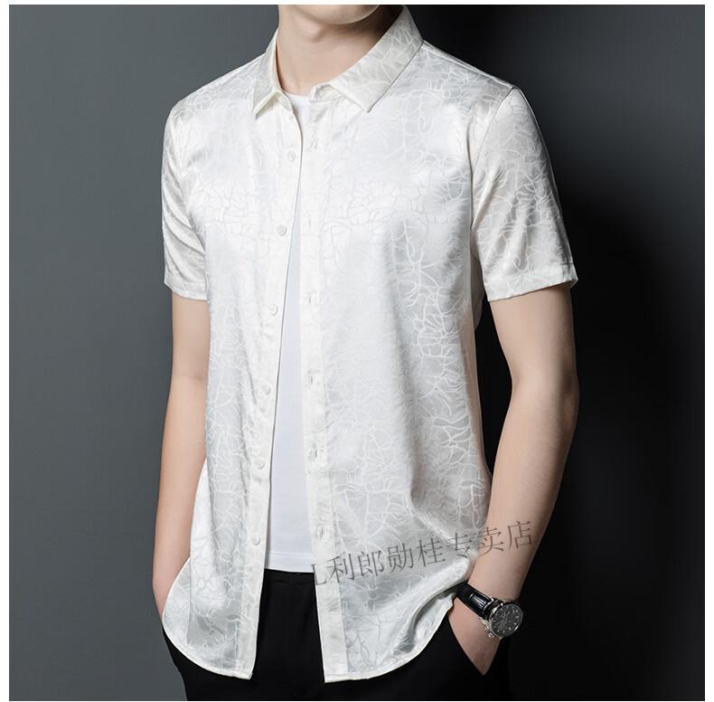 LILANZ summer new men's mulberry silk shirt short-sleeved silk top silk men's loose cool inch coat white L 50