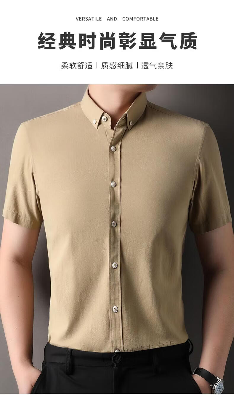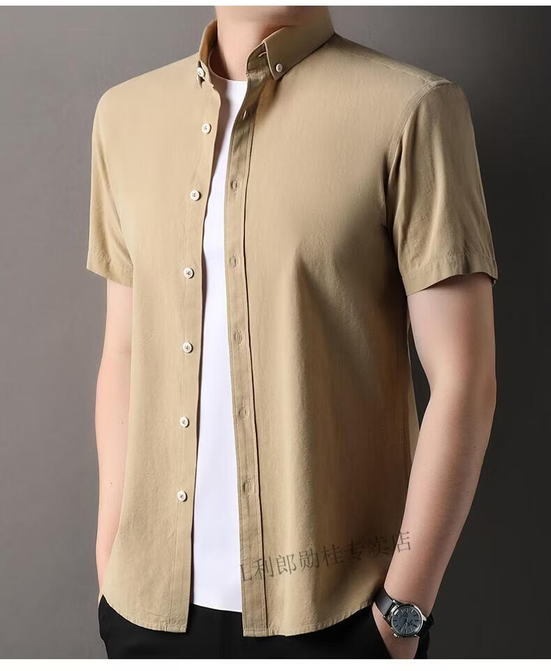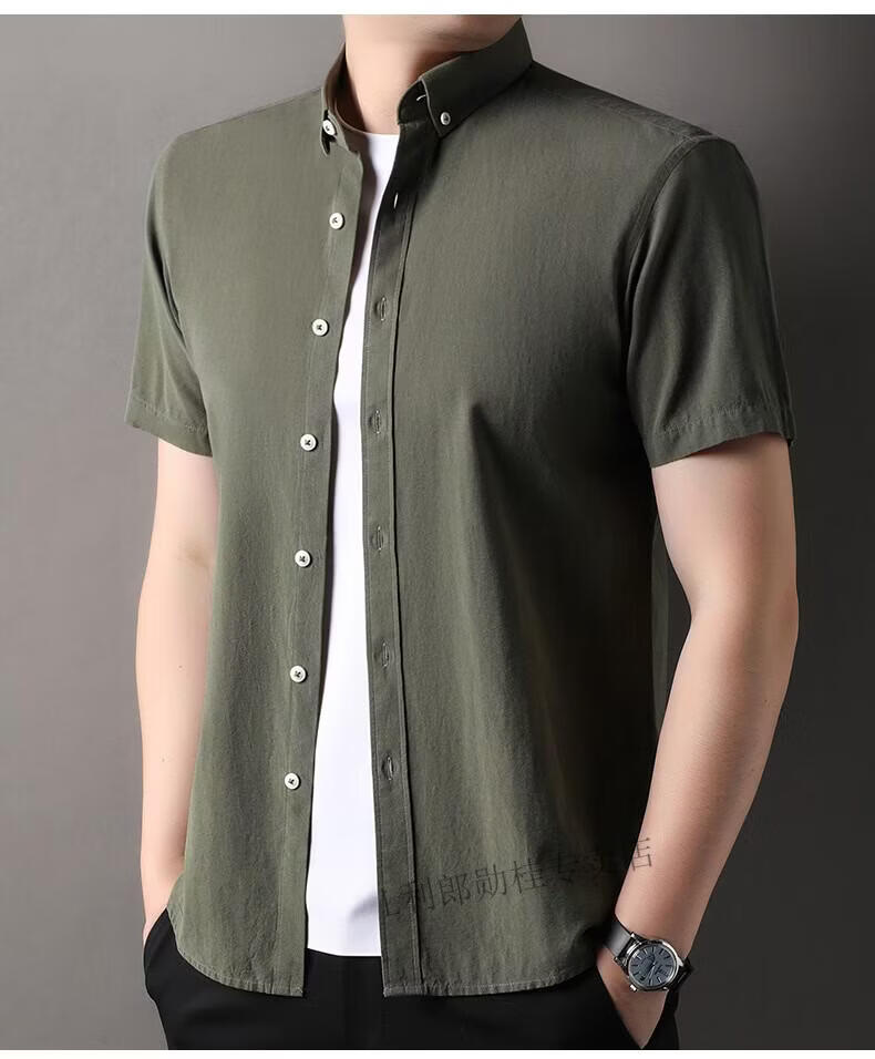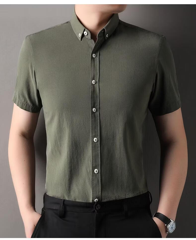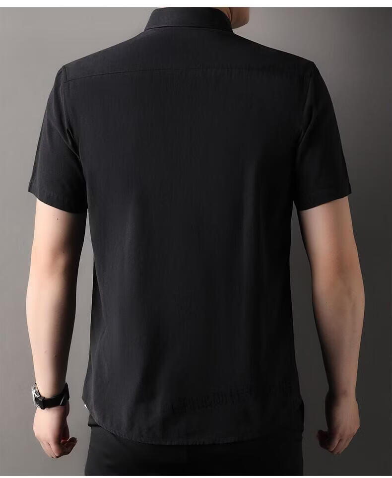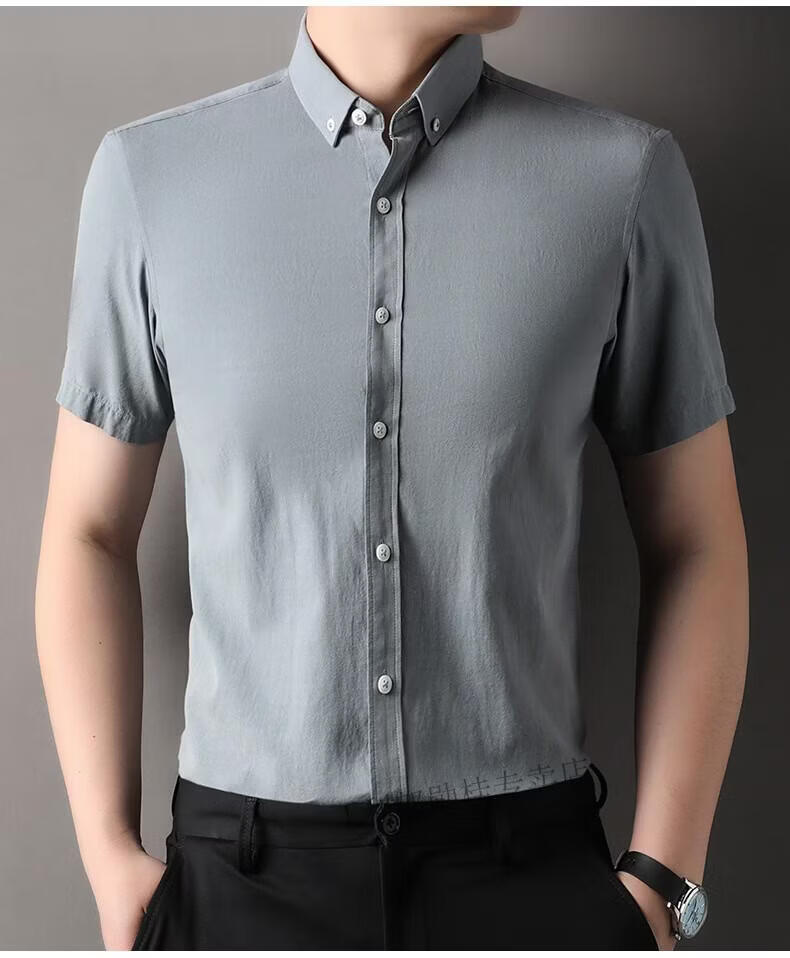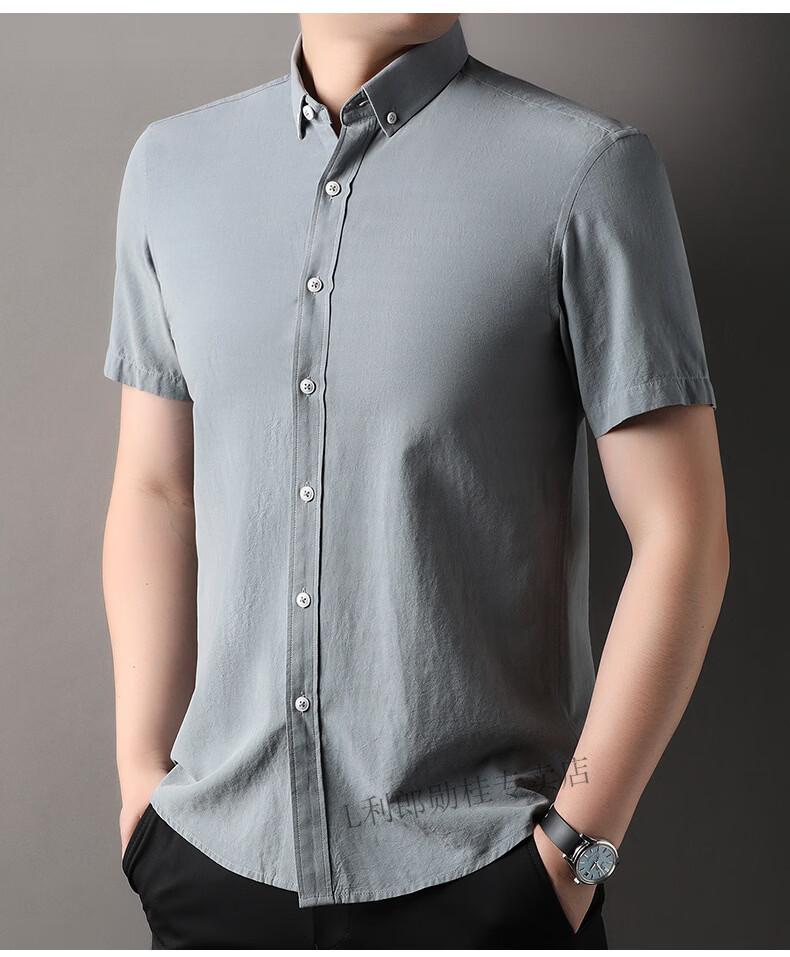 LILANZ summer new men's short-sleeved shirt plaid lapel casual middle-aged dad wear Lyocell cotton half-sleeved shirt gray M 48
