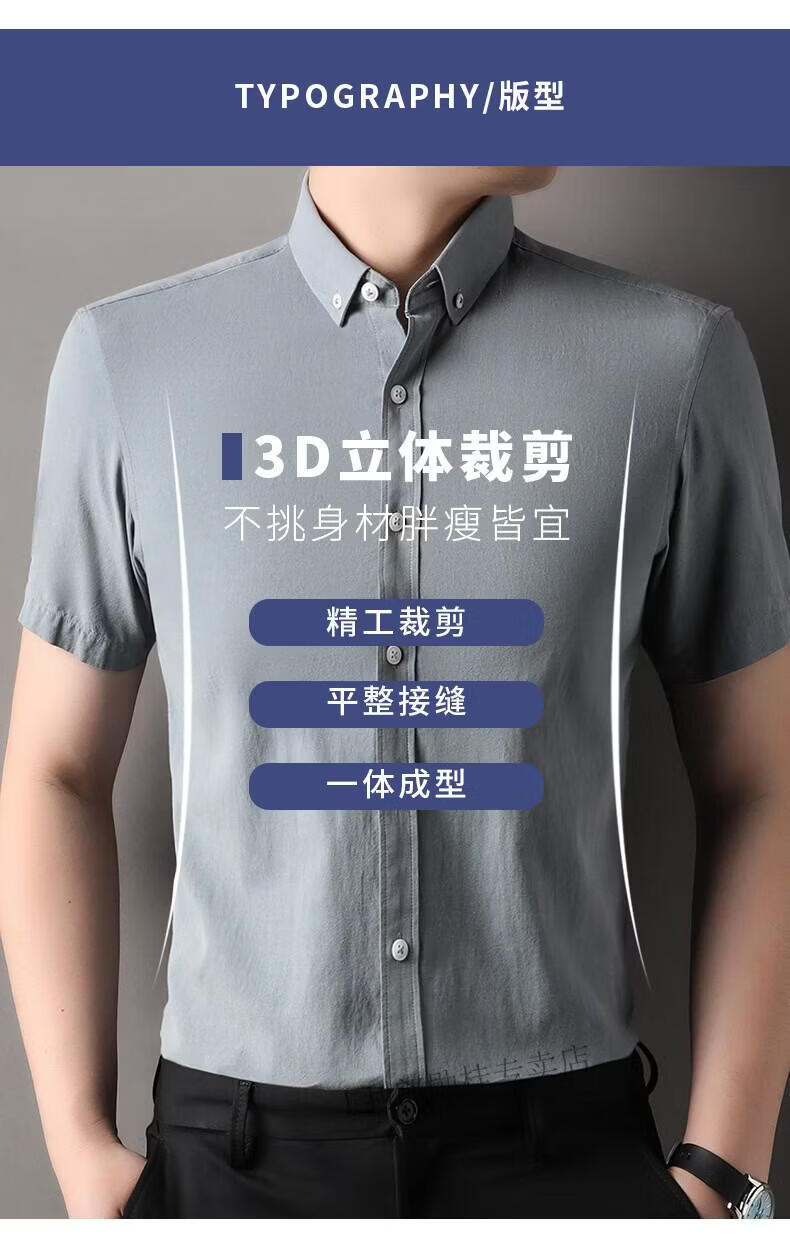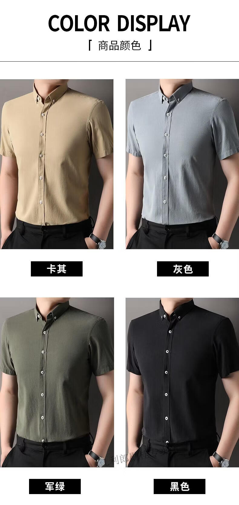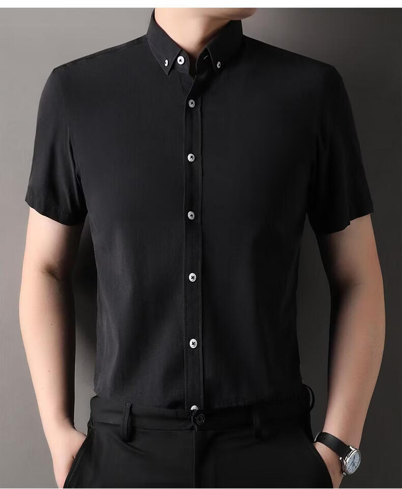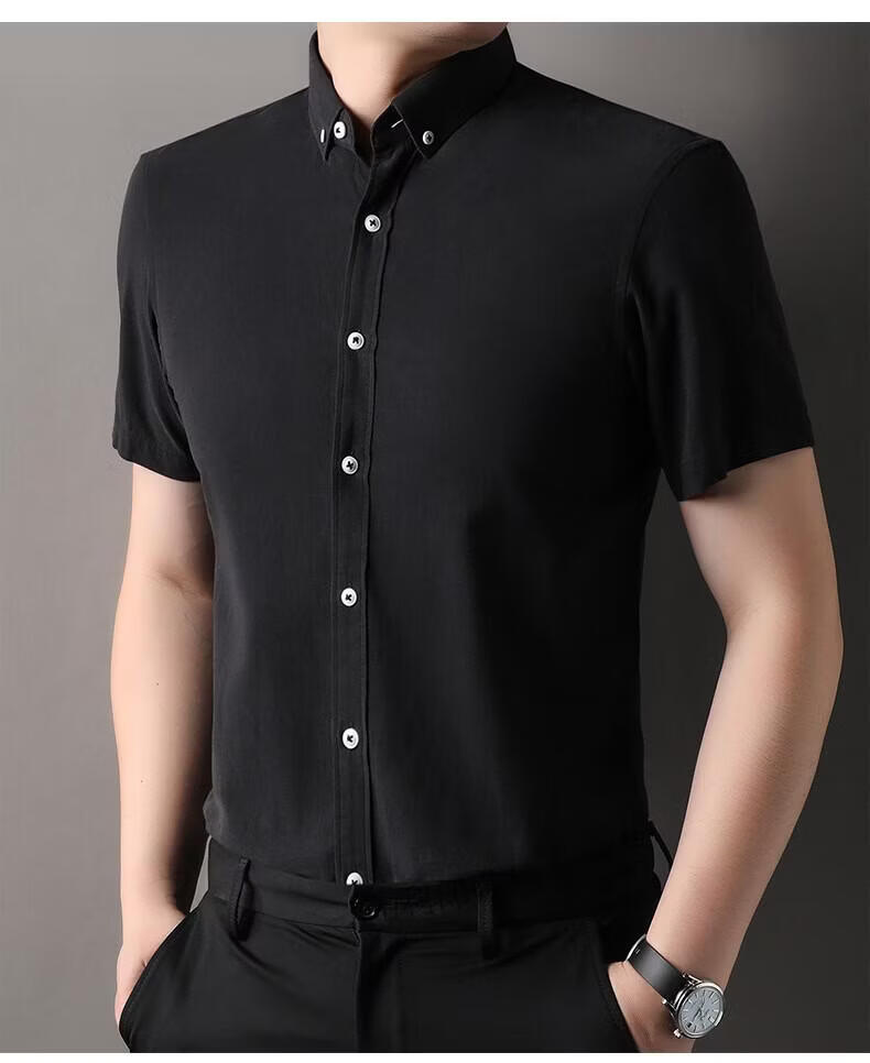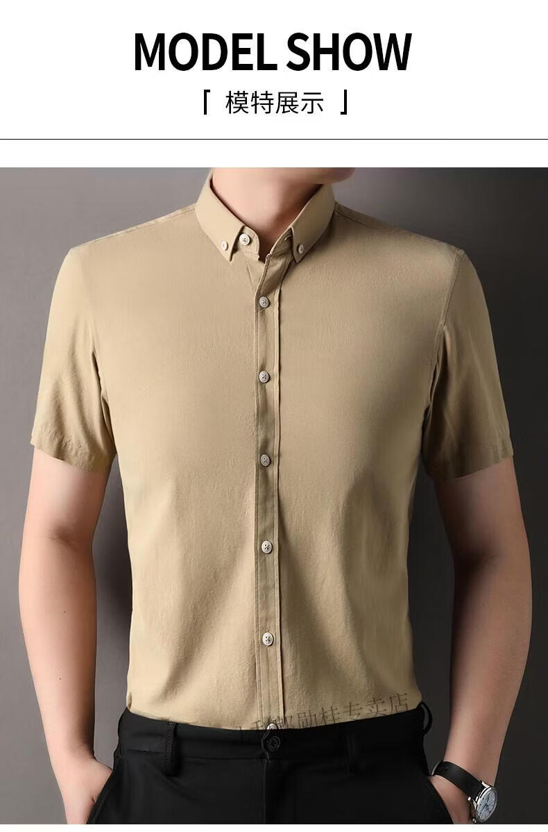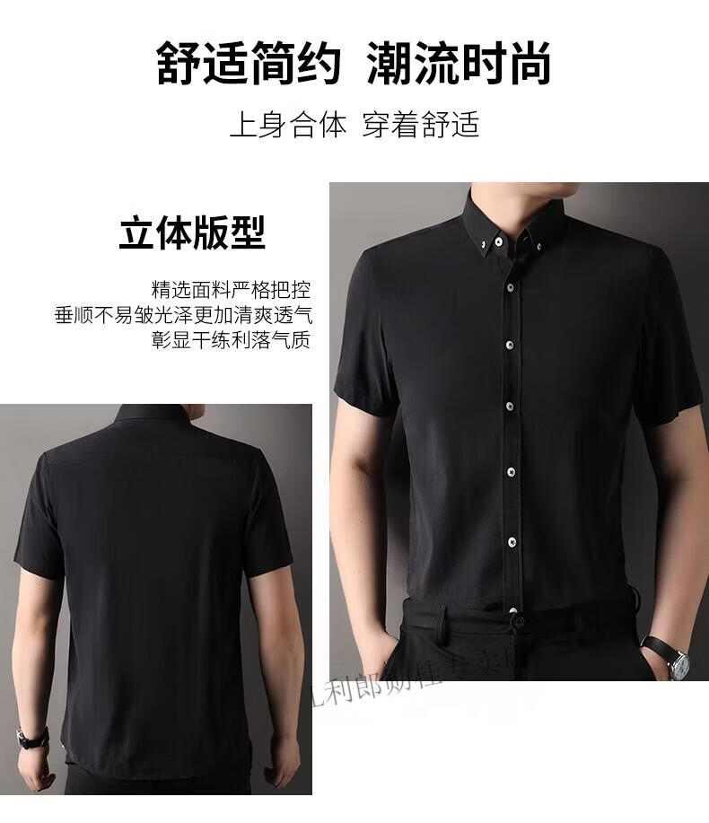 LILANZ summer new men's short-sleeved shirt plaid lapel casual middle-aged dad wear Lyocell cotton half-sleeved shirt gray M 48