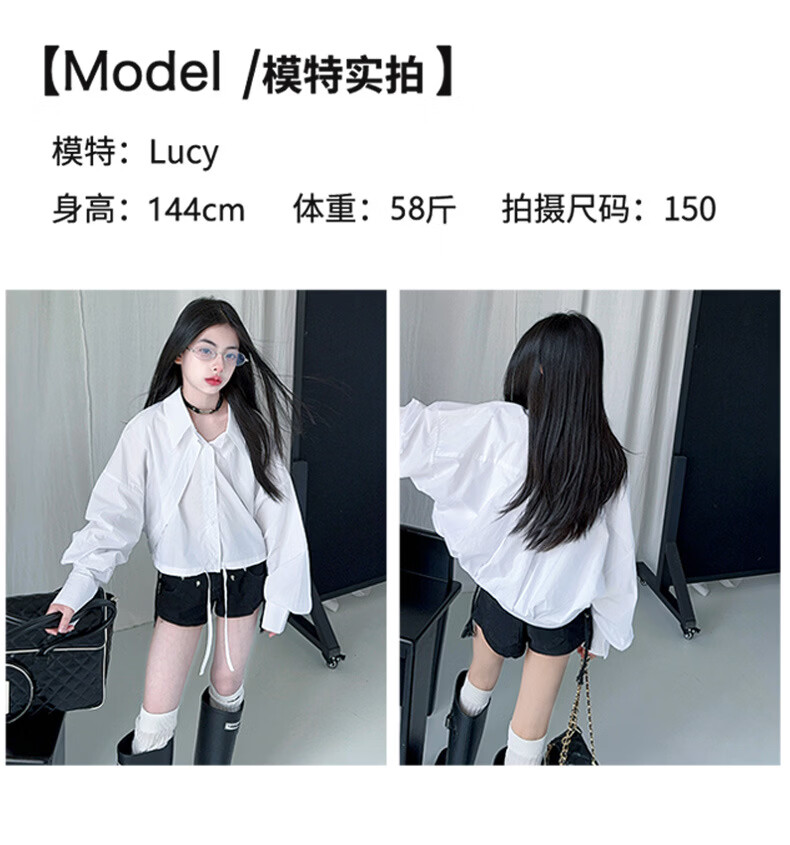 Girls' Spring and Autumn Shirts 2026 New Fashion Girls Korean Style Medium and Big Children's Style Loose Long-Sleeved Inner Cross-Border White 120 cm