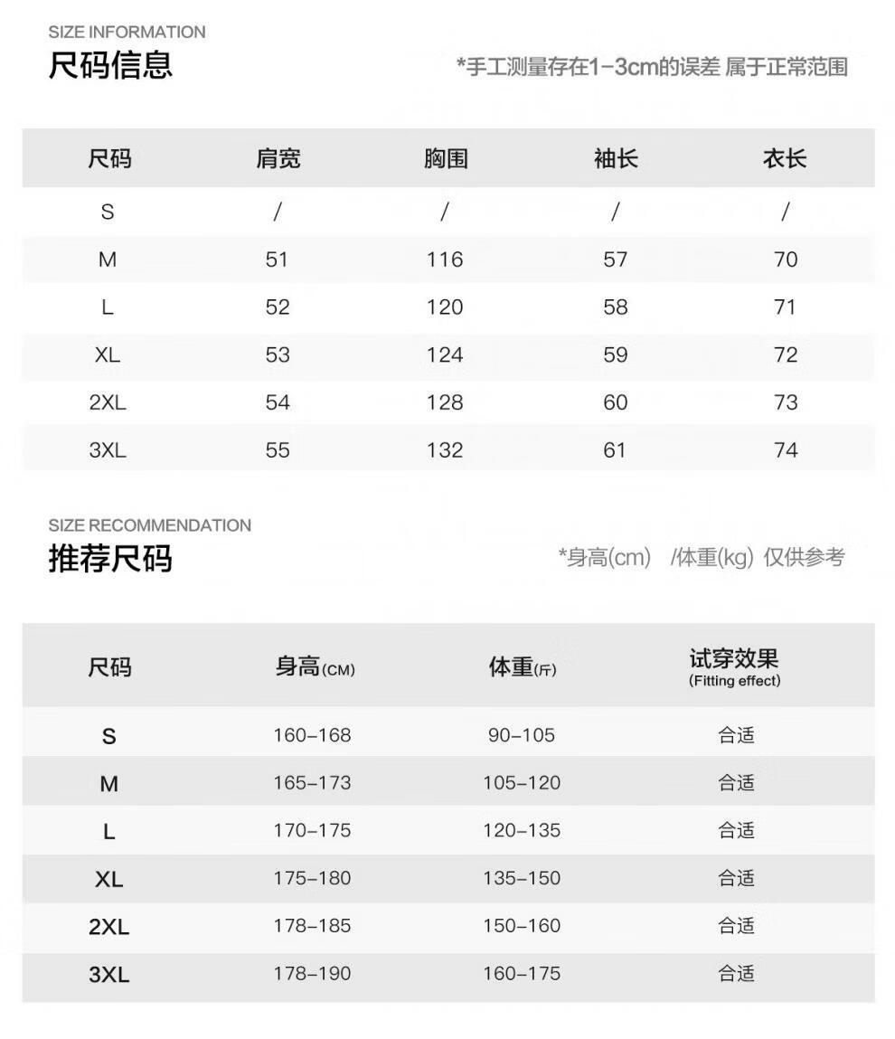 China (cm) 165 / 88-90 170 / 96-98 175 / 108-110 180 / 118-122 185 / 126-130