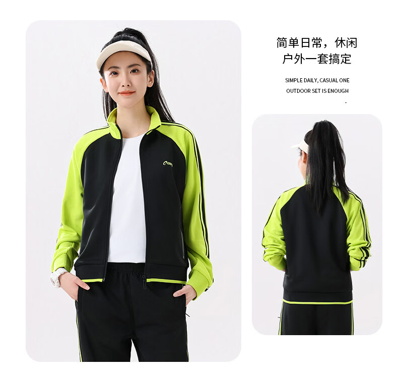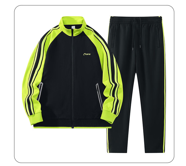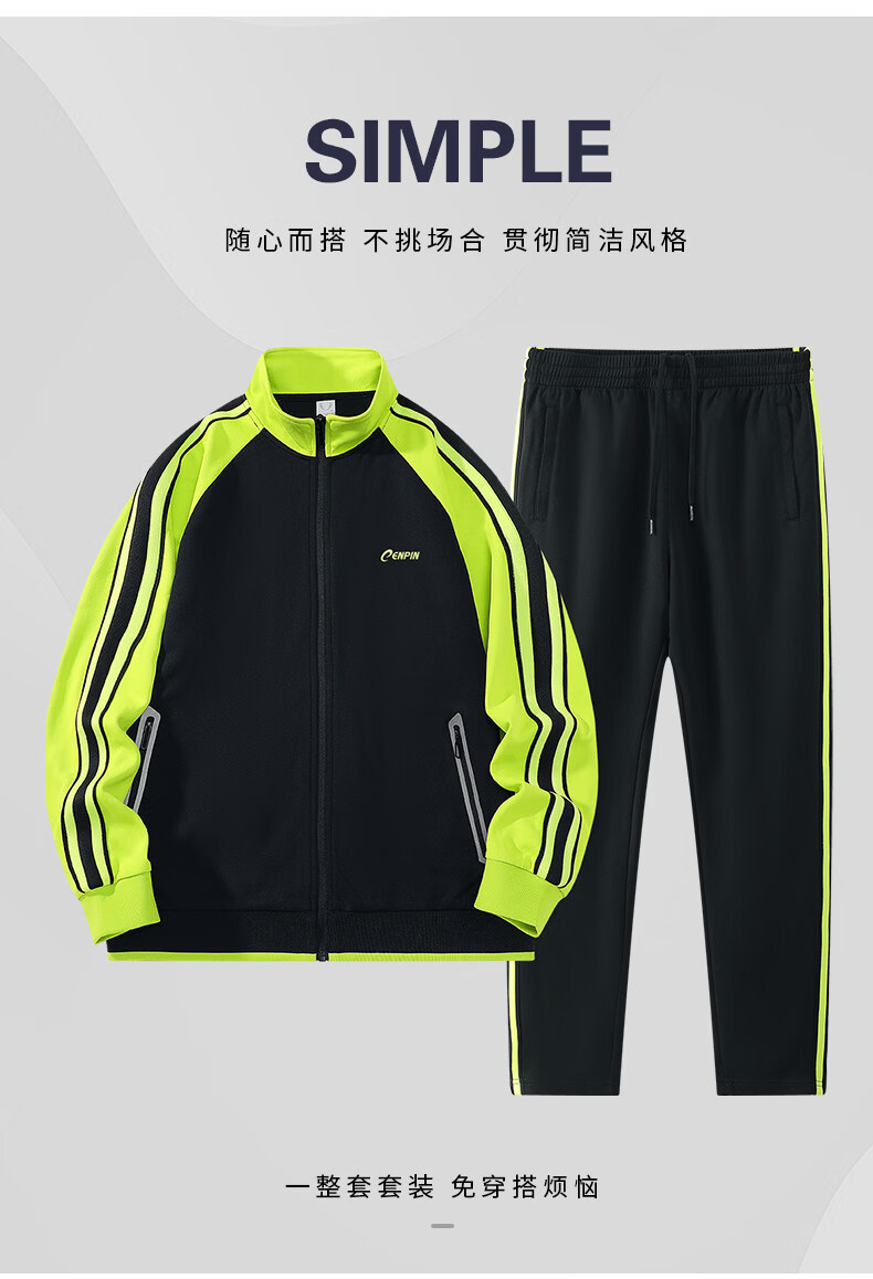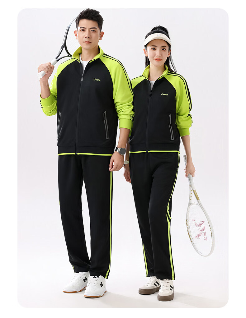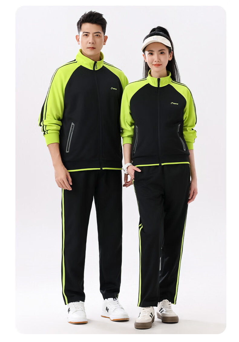 ROMON Sports Suit Men's Spring New Men's and Women's Casual Cardigan Sweater Two-piece Set Spring and Autumn Running Sportswear Suit Women Black and Fluorescent Green G836 Model M Women's Model 85-98Jin Jin is equal to 0.5 kg