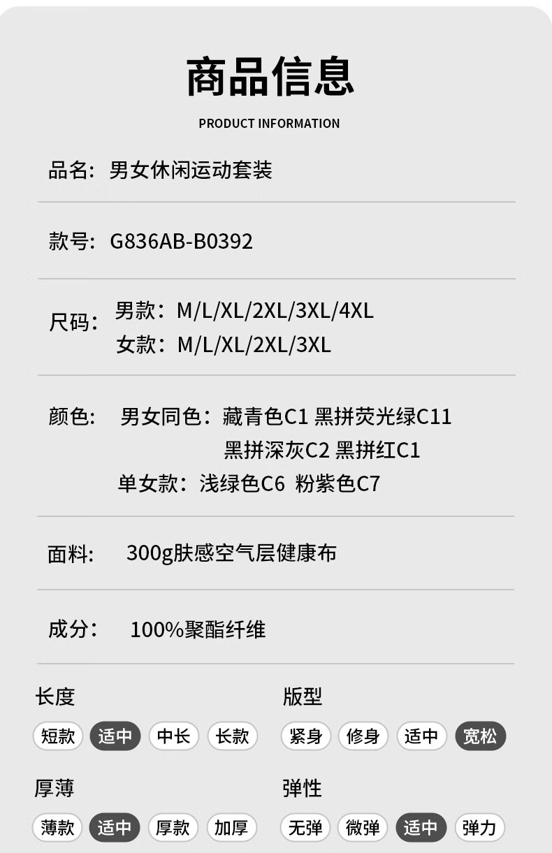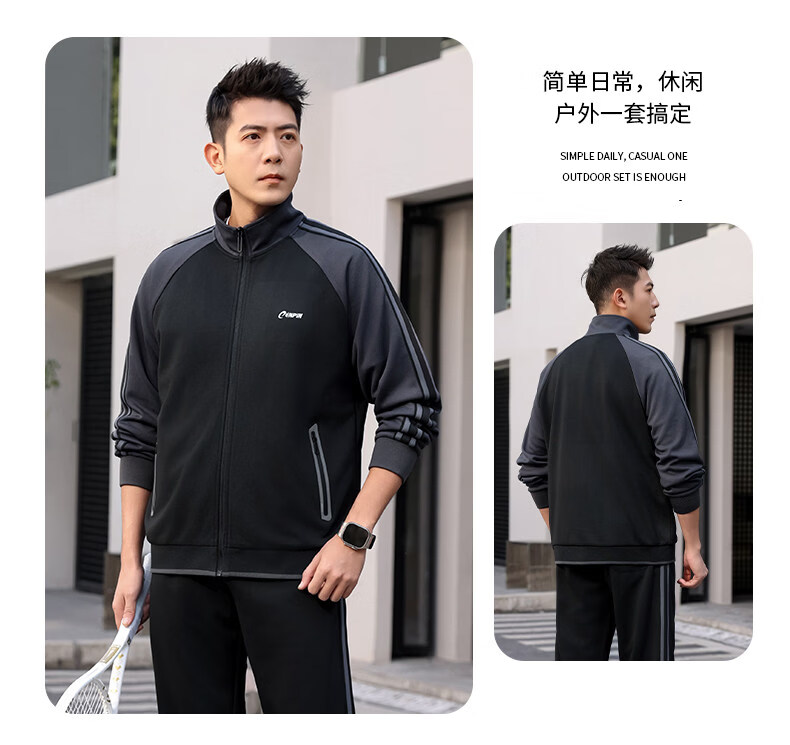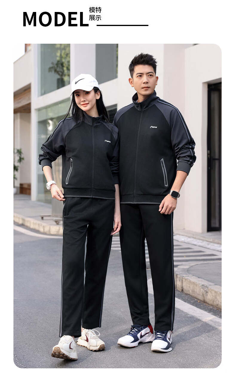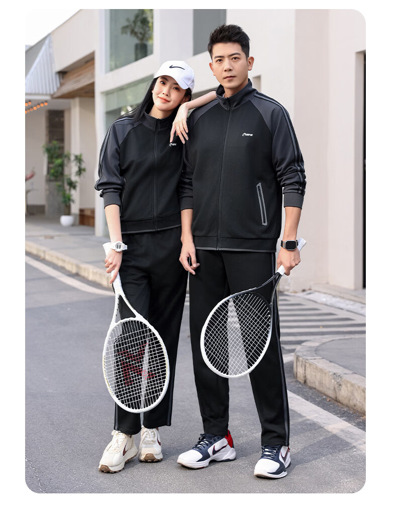 ROMON Sports Suit Men's Spring New Men's and Women's Casual Cardigan Sweater Two-piece Set Spring and Autumn Running Sportswear Suit Women Black and Fluorescent Green G836 Model M Women's Model 85-98Jin Jin is equal to 0.5 kg
