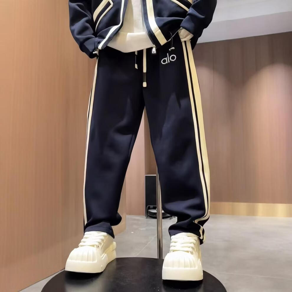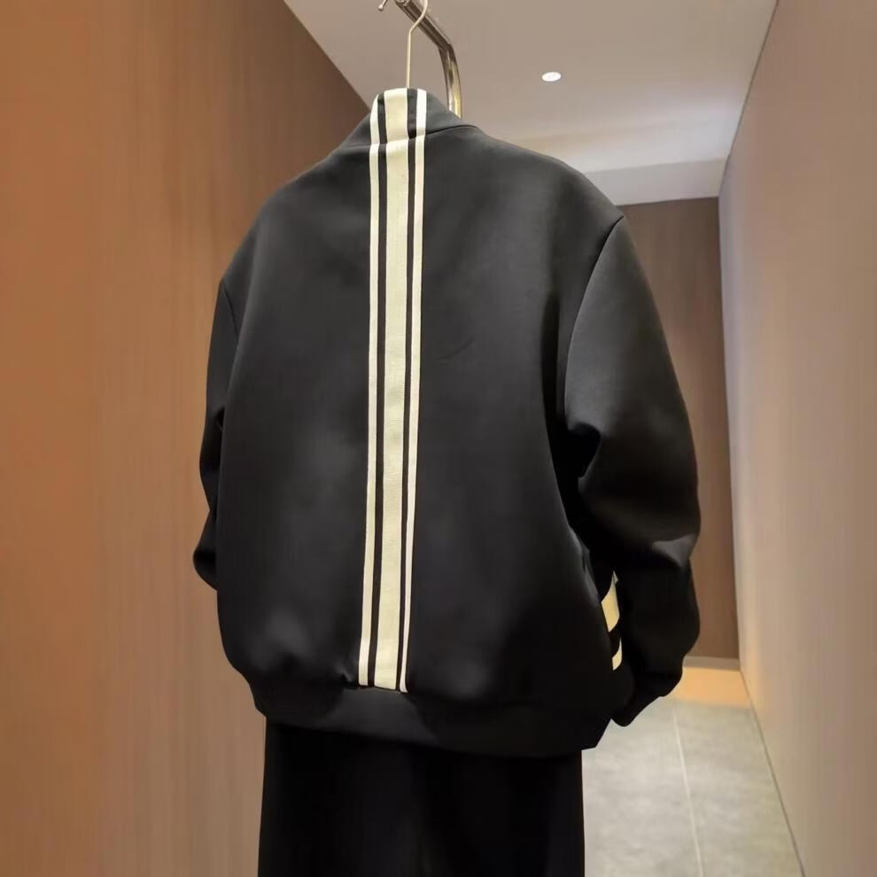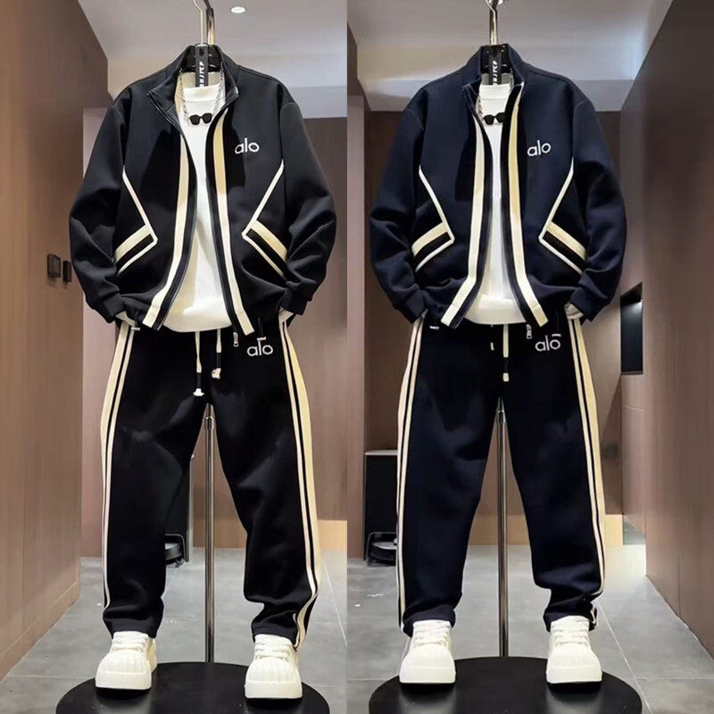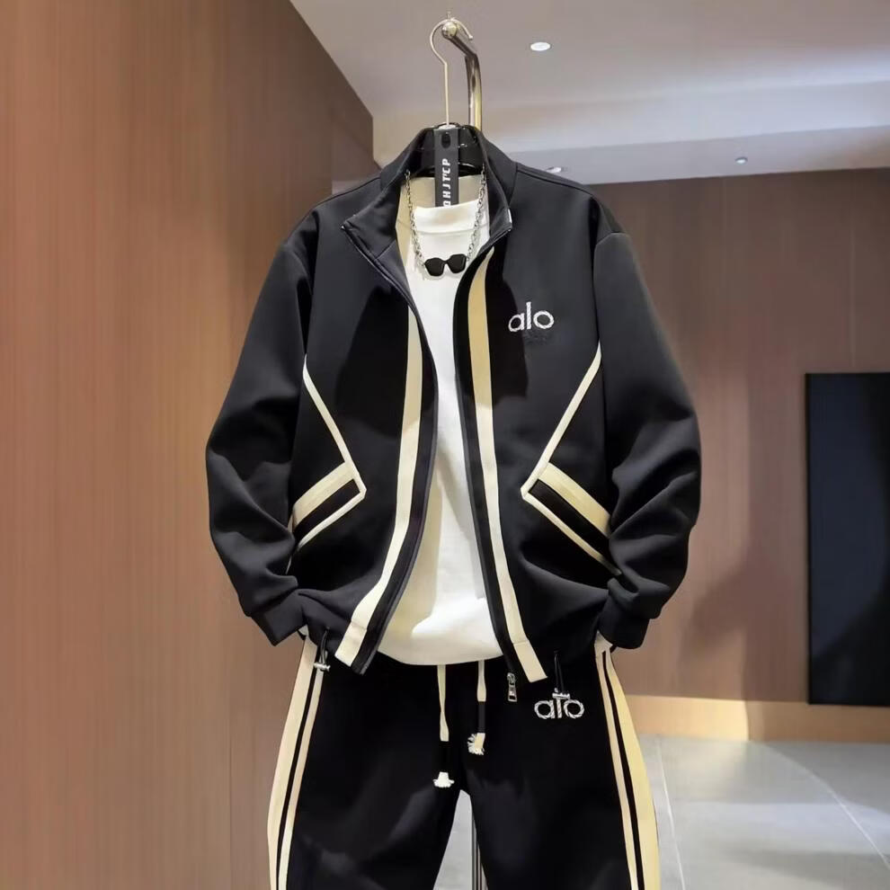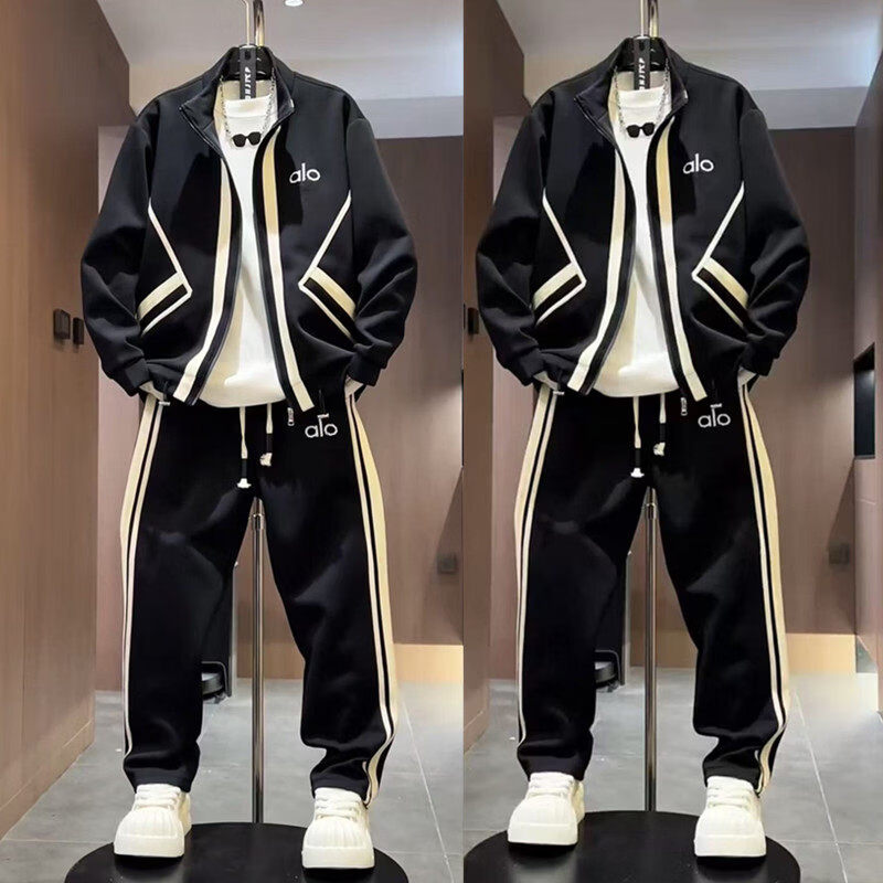 ROMON autumn men's trendy brand light luxury style striped air layer casual sports suit sweatshirt jacket casual pants two-piece set black (jacket + casual pants) suit M -130Jin Jin equals 0.5 kg