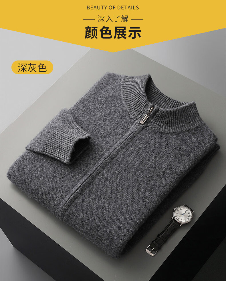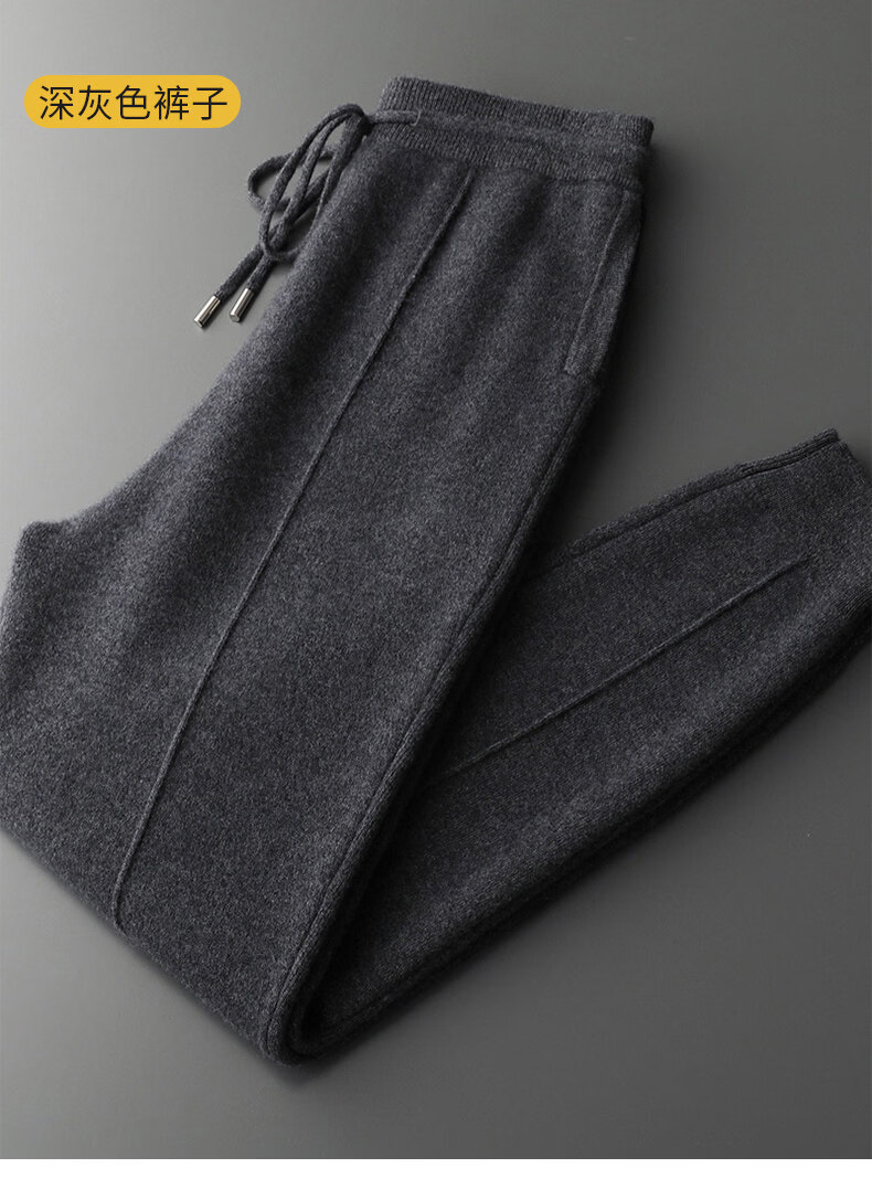 ROMON's new autumn and winter thickened casual sports suit men's knitted sweatshirt shrunken sweatpants pure wool cardigan jacket dark gray top S (90-110Jin Jin equals 0.5 kg)