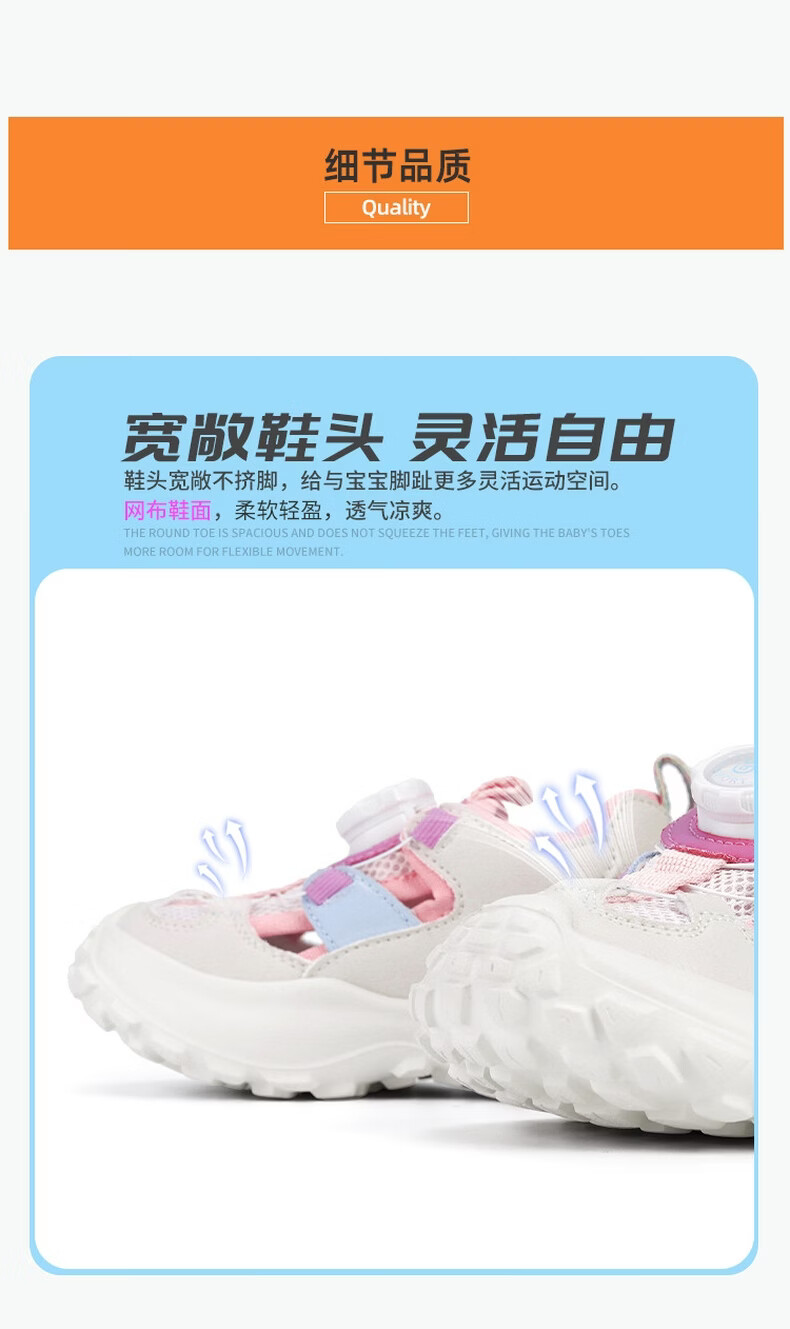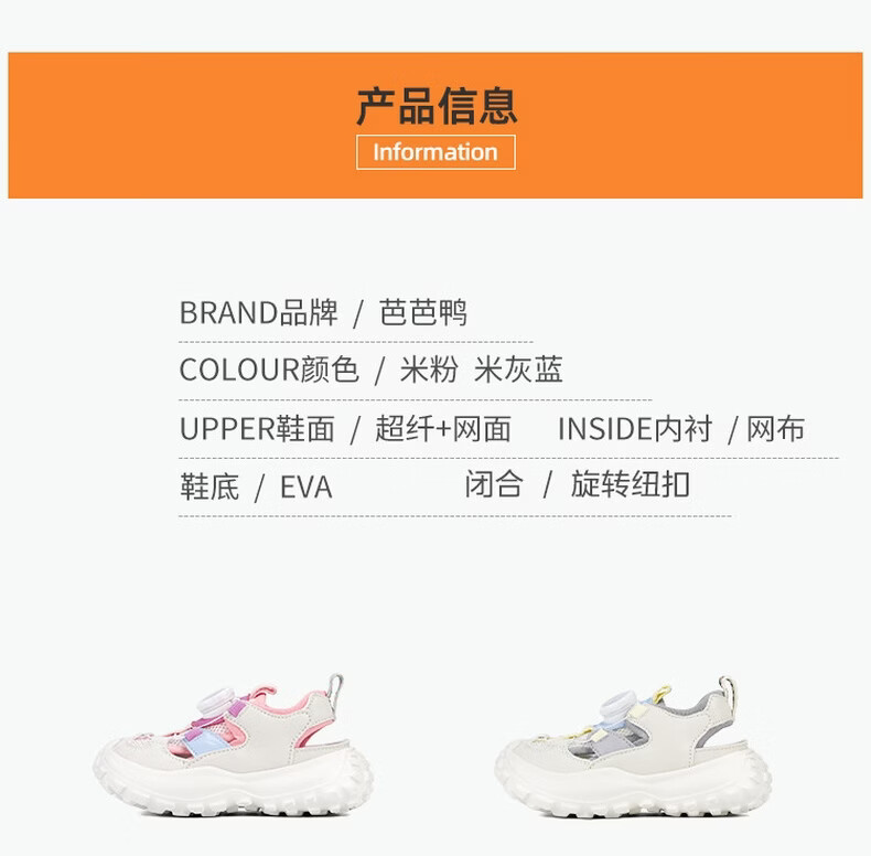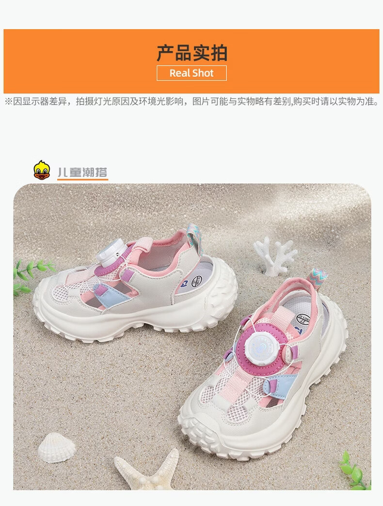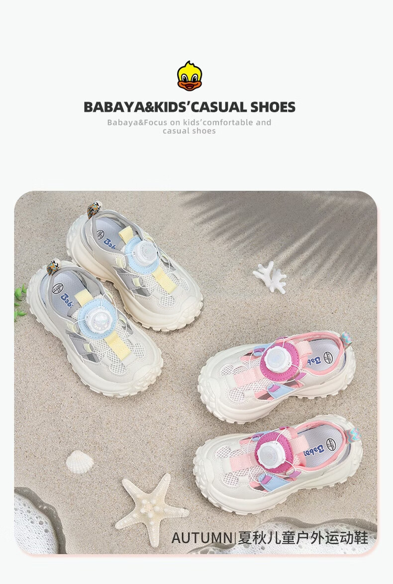 Baba Duck Children's Sandals 2026 Spring and Summer Versatile Casual Girls' Sports Shoes New Boys' Breathable Mesh Shoes Rice Noodles 28 Inner Length 18cm Suitable for Feet Length 17.5cm