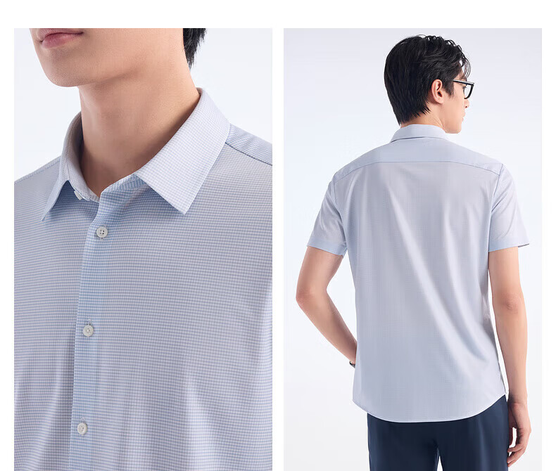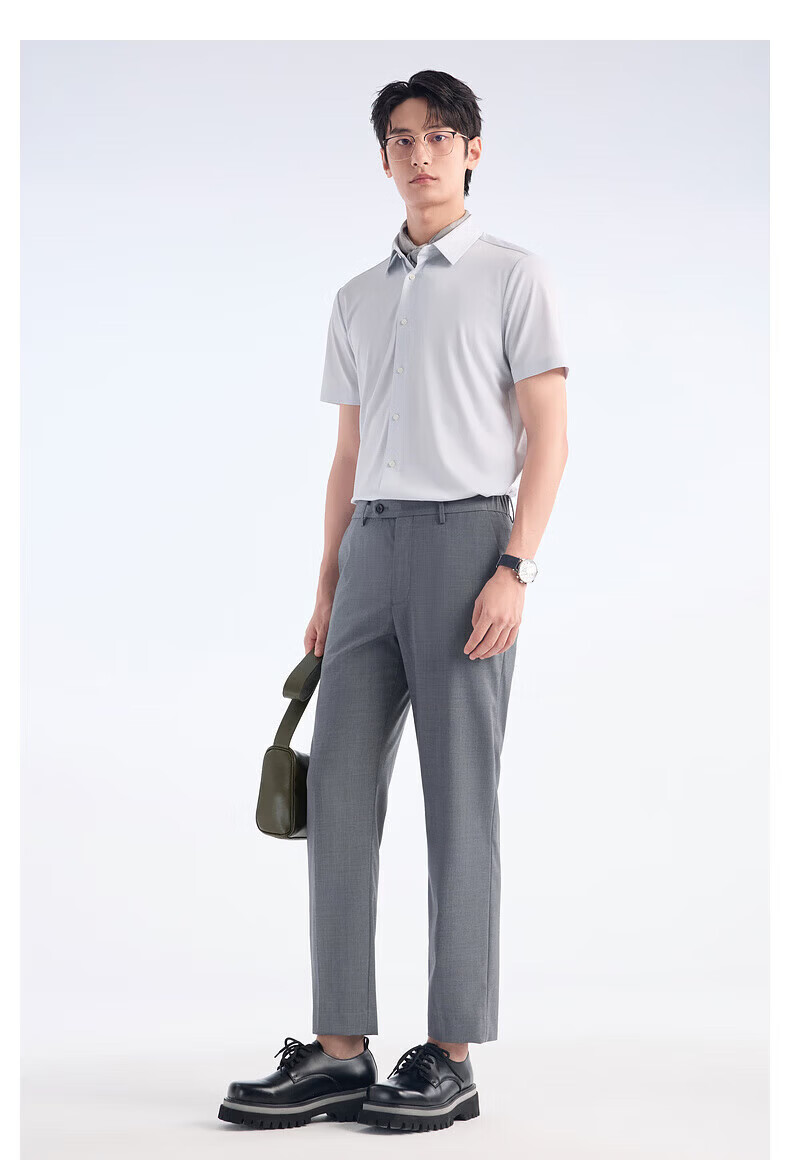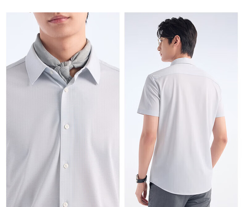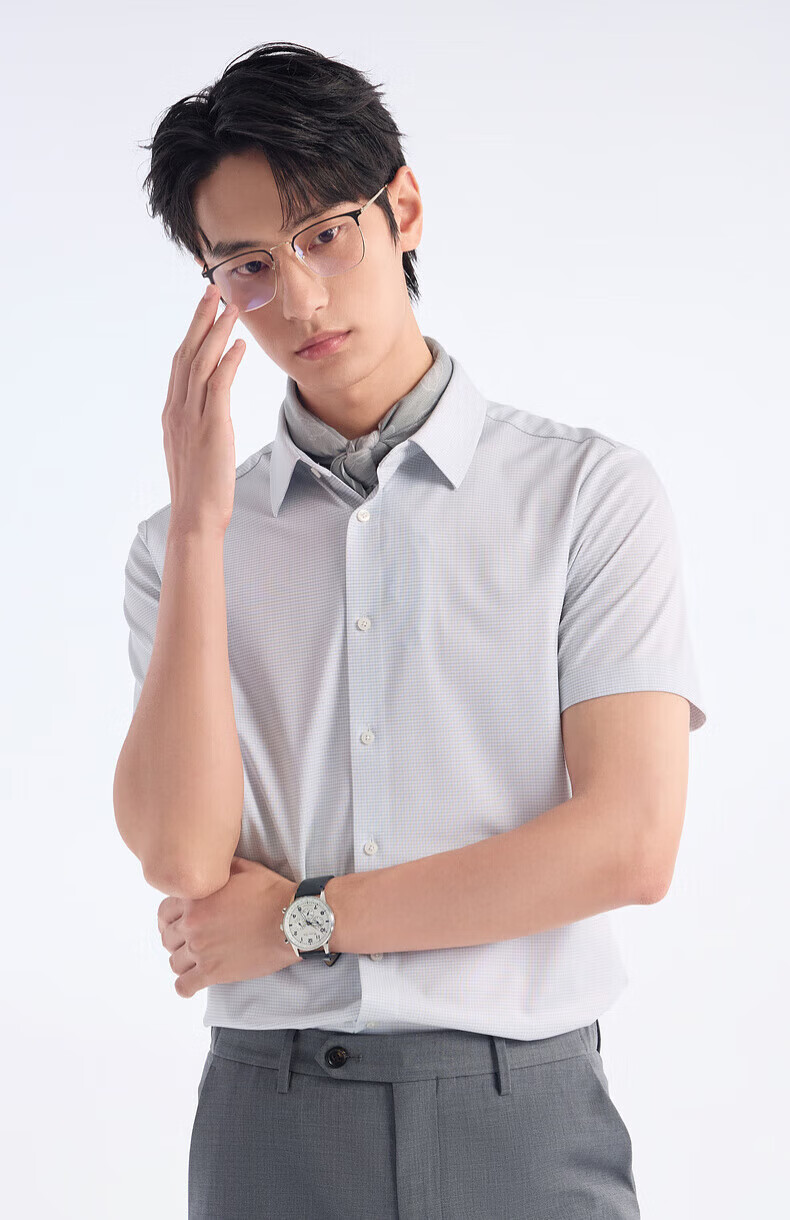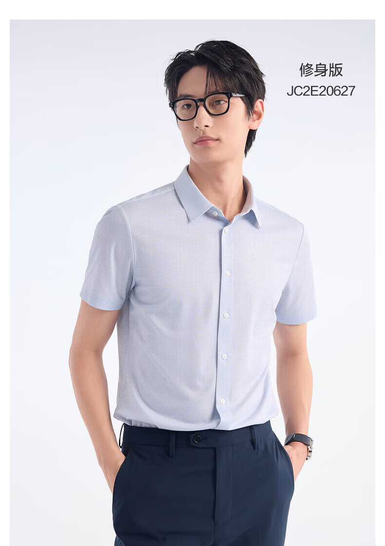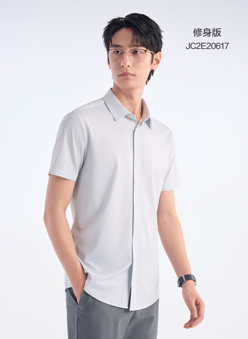 Jiumuwang shopping mall same style + mulberry silk men's short-sleeved shirt men's 2026 spring and summer new comfortable short-sleeved shirt men's slim version + gray green + JC2EV20617 45 (185/112B)