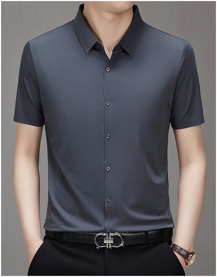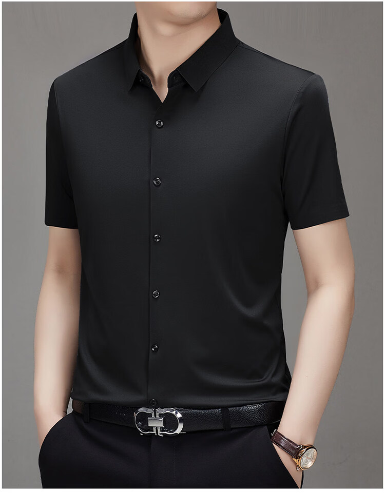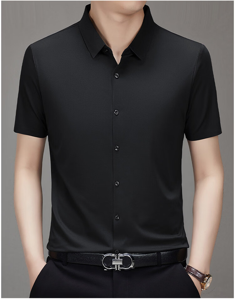 MONTAGUT short-sleeved shirt men's summer new high-end business men's casual iron-free shirt black BY562 XL 180/96A recommended 150-165 Jin Jin equals 0.5 kg